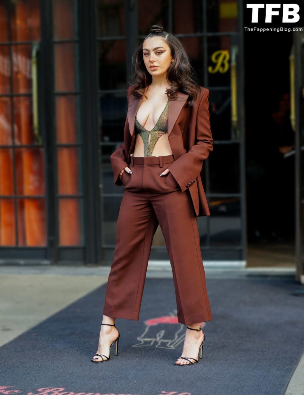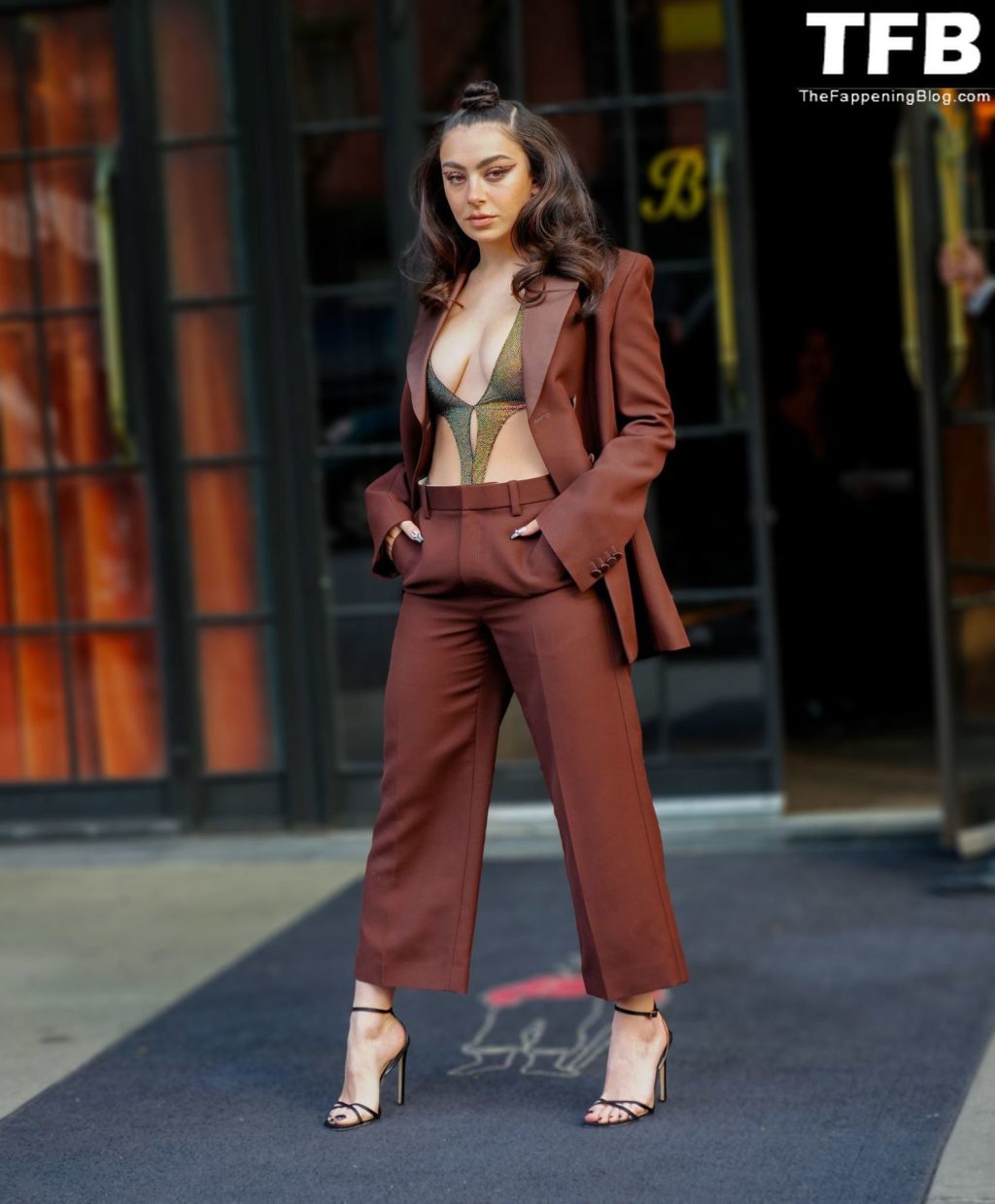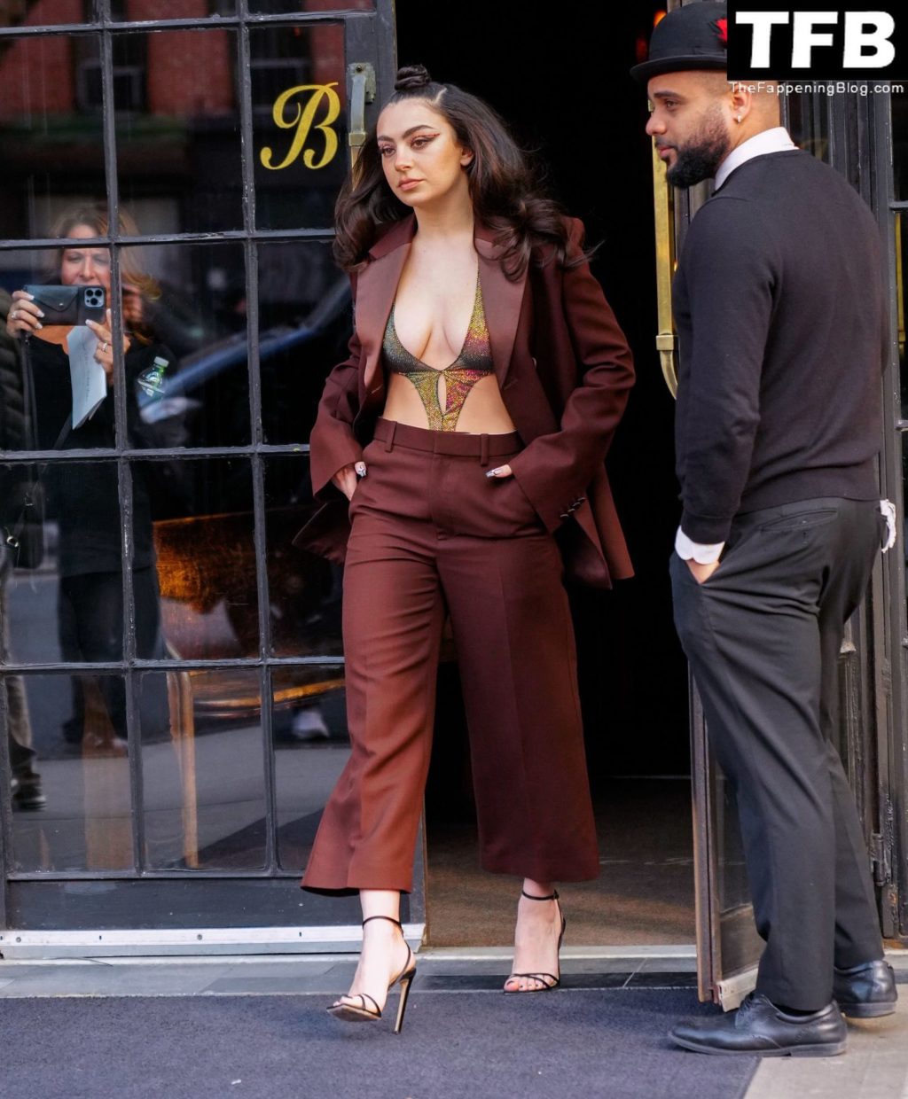 Певица Charli XCX показывает свои большие натуральные груди, выходя из отеля The Bowery в Нью-Йорке, 03/05/2022.