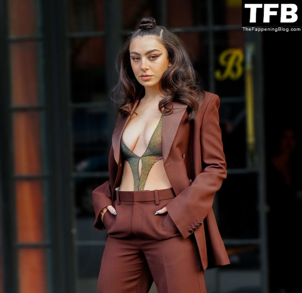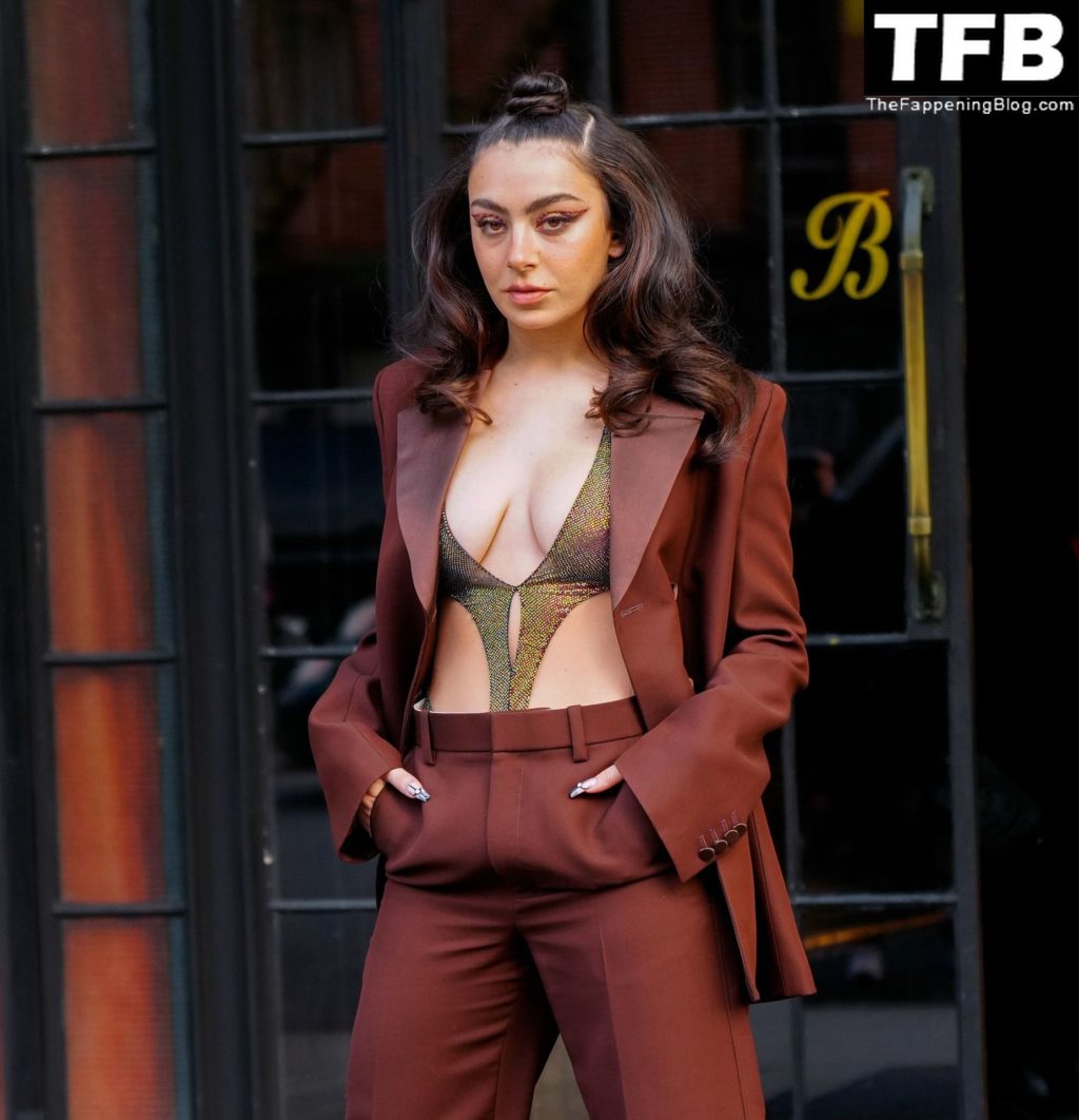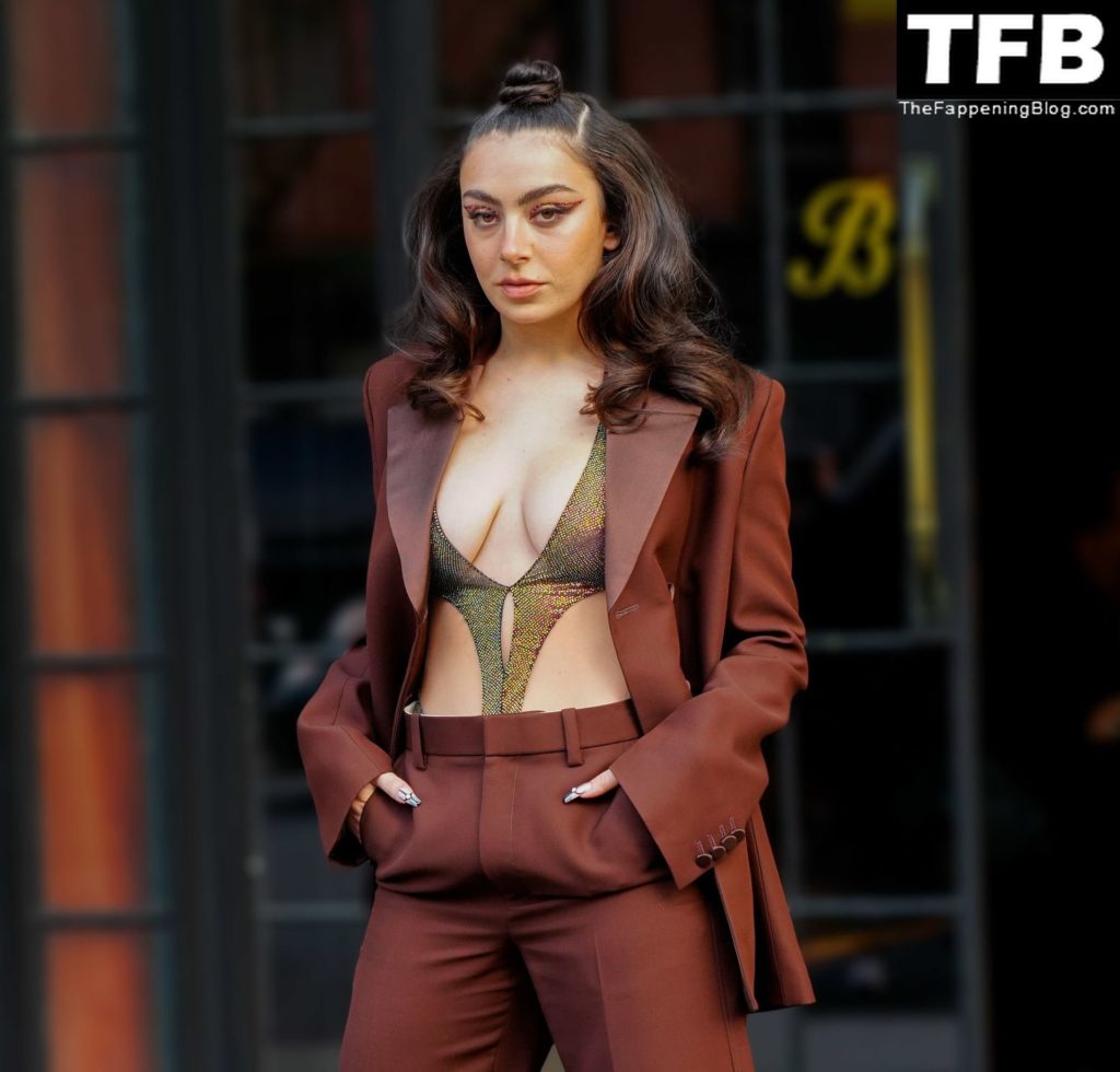 Певица Charli XCX показывает свои большие натуральные груди, выходя из отеля The Bowery в Нью-Йорке, 03/05/2022.