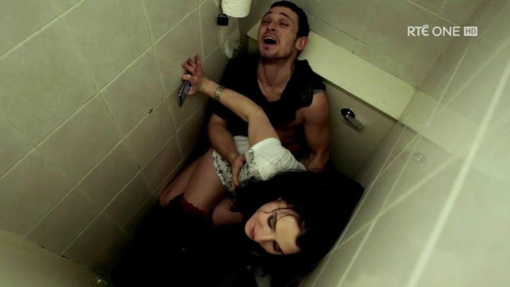 Затем Чарли Мерфи снова видна сверху, занимающаяся сексом с мужчиной в кабинке туалета. Она едет на нём в обратном направлении, пока он сидит на унитазе. Её брюки и трусики были полностью спущены, а они снимали себя на камеру мобильного телефона. И несколько женщин стучат в дверь снаружи, пытаясь войти.