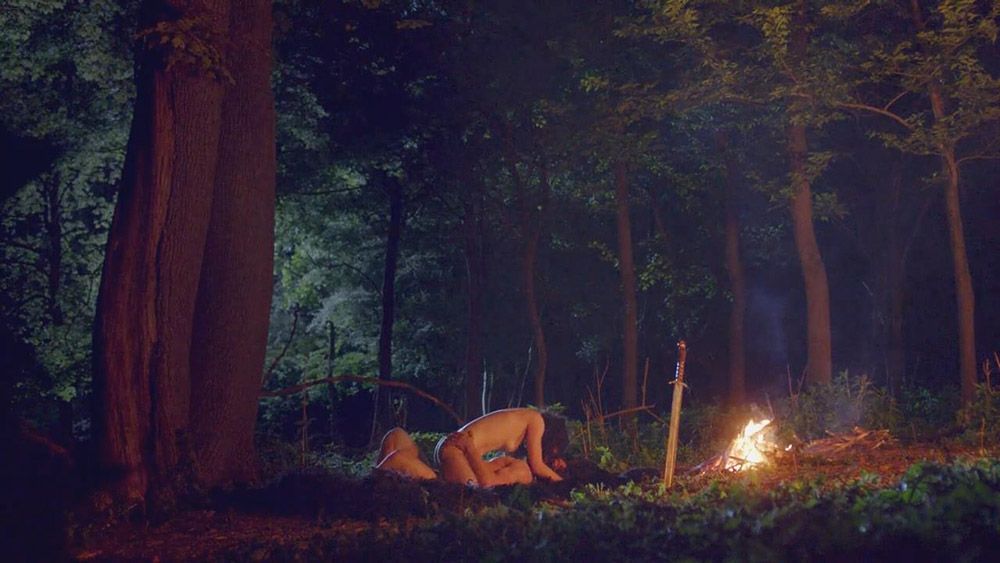 Sexy Charlie Murphy nude is standing in the woods with a guy. Charlie is dropping her dress to the ground to show her bare butt and some side boob. We then see her having sex with the guy, first on her back and then rolling over on top of him. She is showing her butt, followed by her right breast from the side.