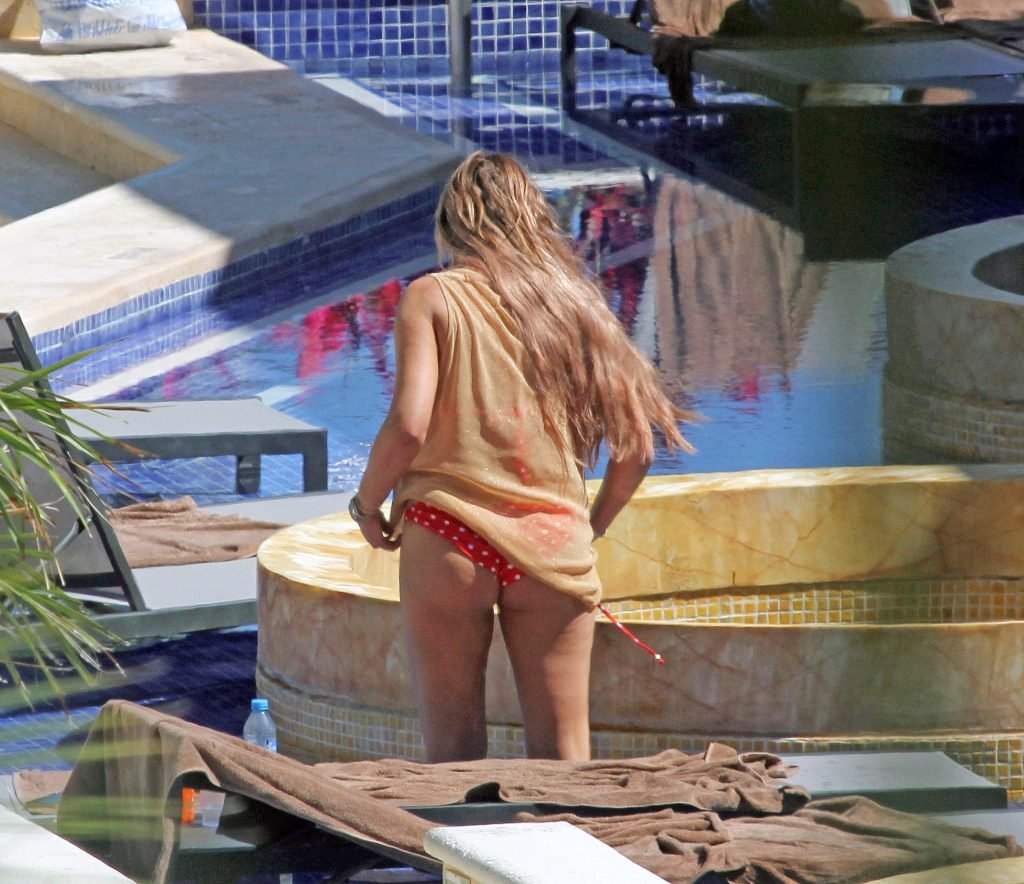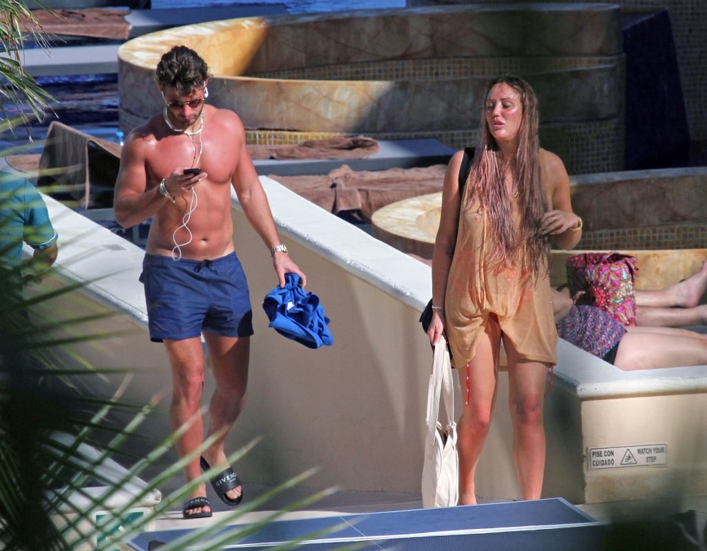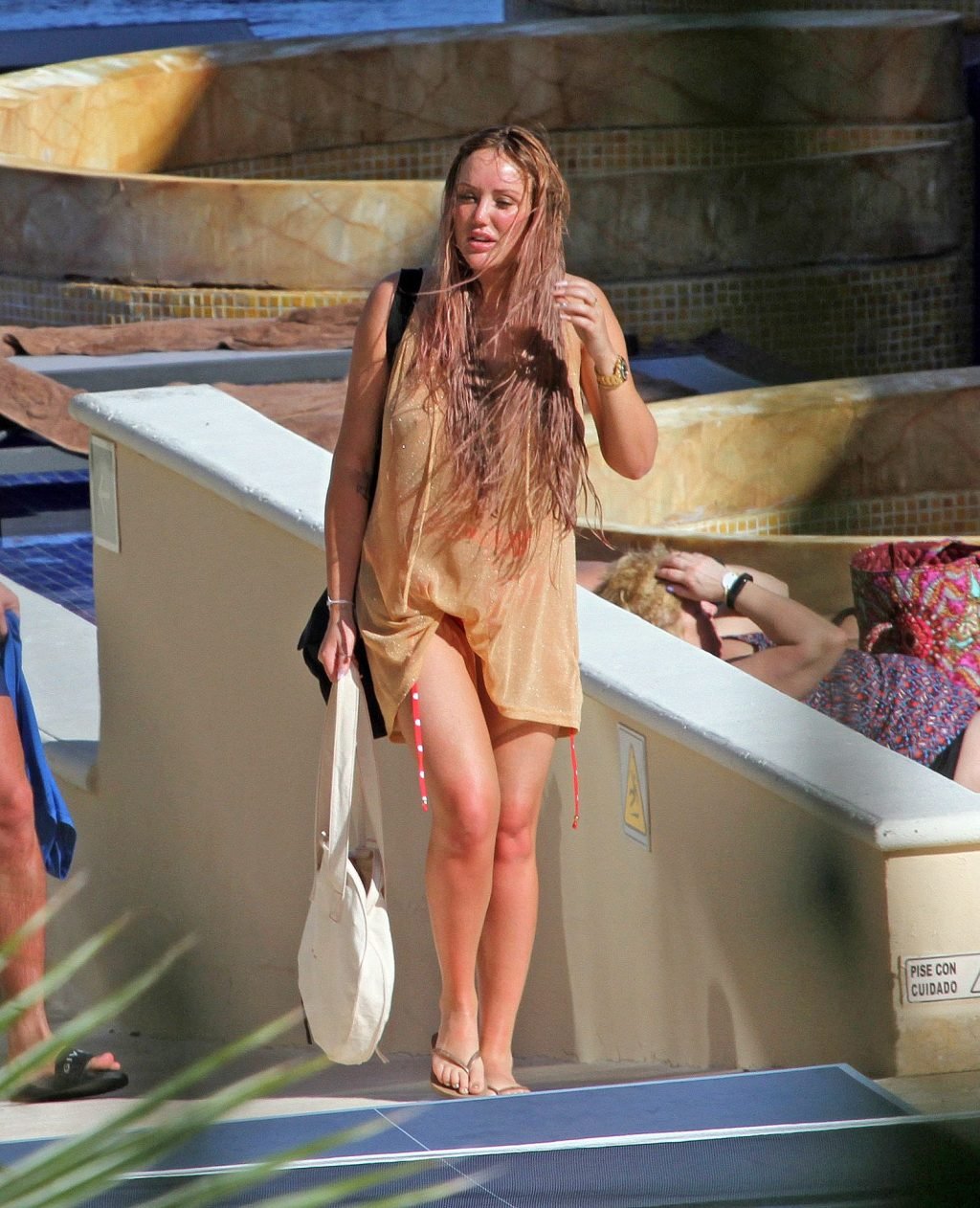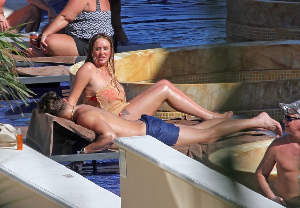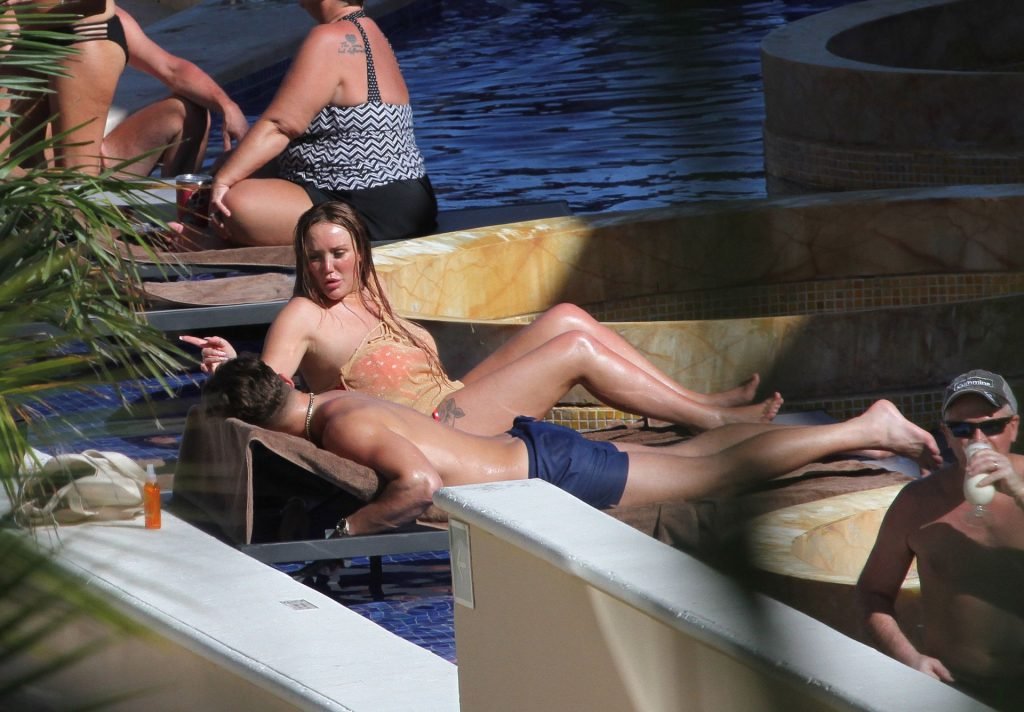 Звезда реалити-шоу Шарлотта Летисия Кросби наслаждается загаром в двухцветном красно-белом купальнике в горошек, в компании Джоша Ритчи во время пребывания в Мексике, 15.02.2019.