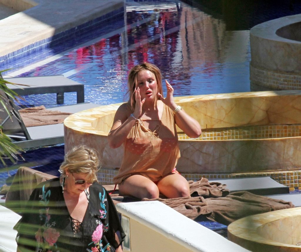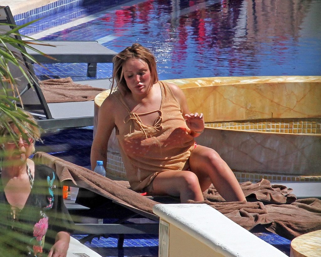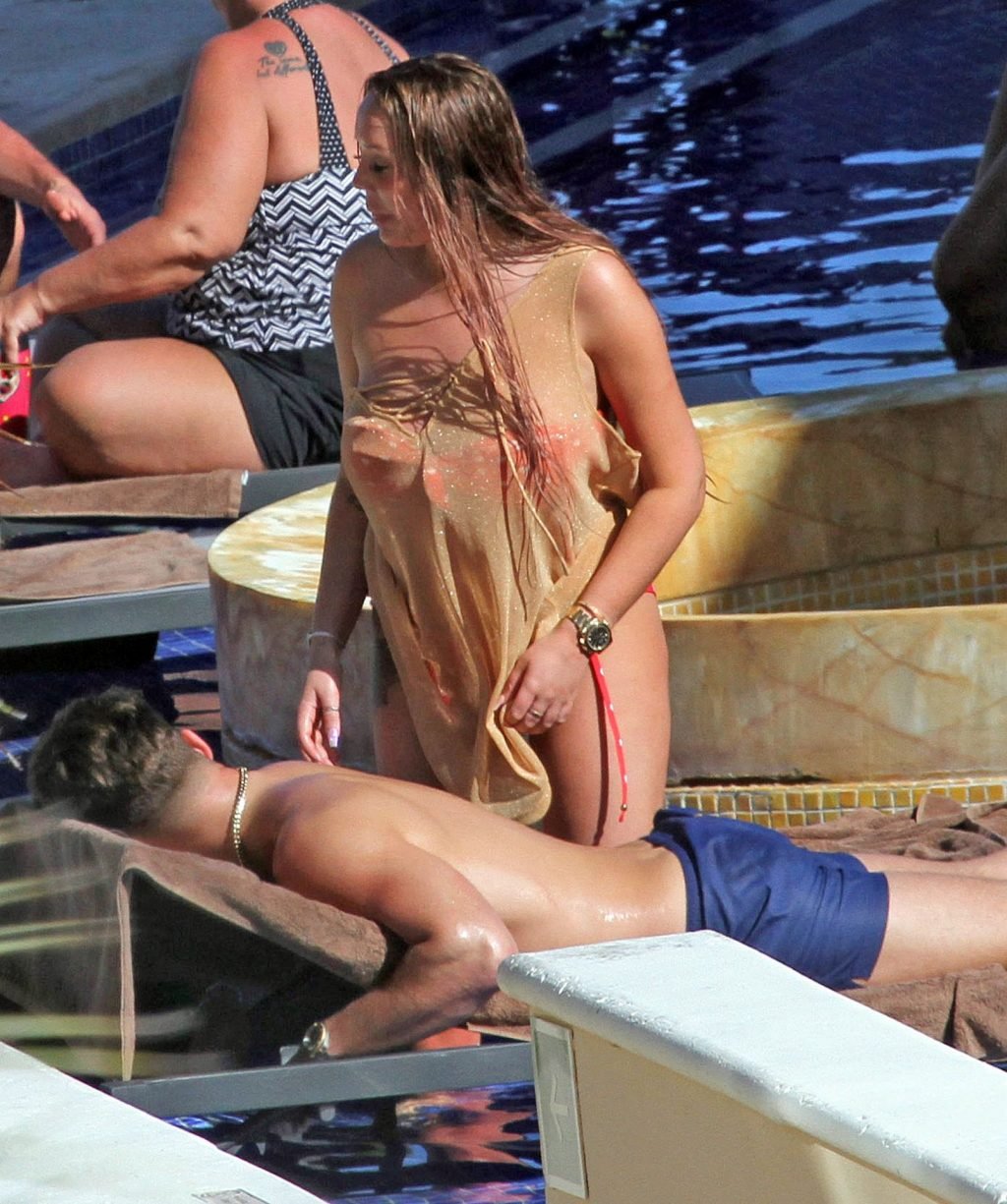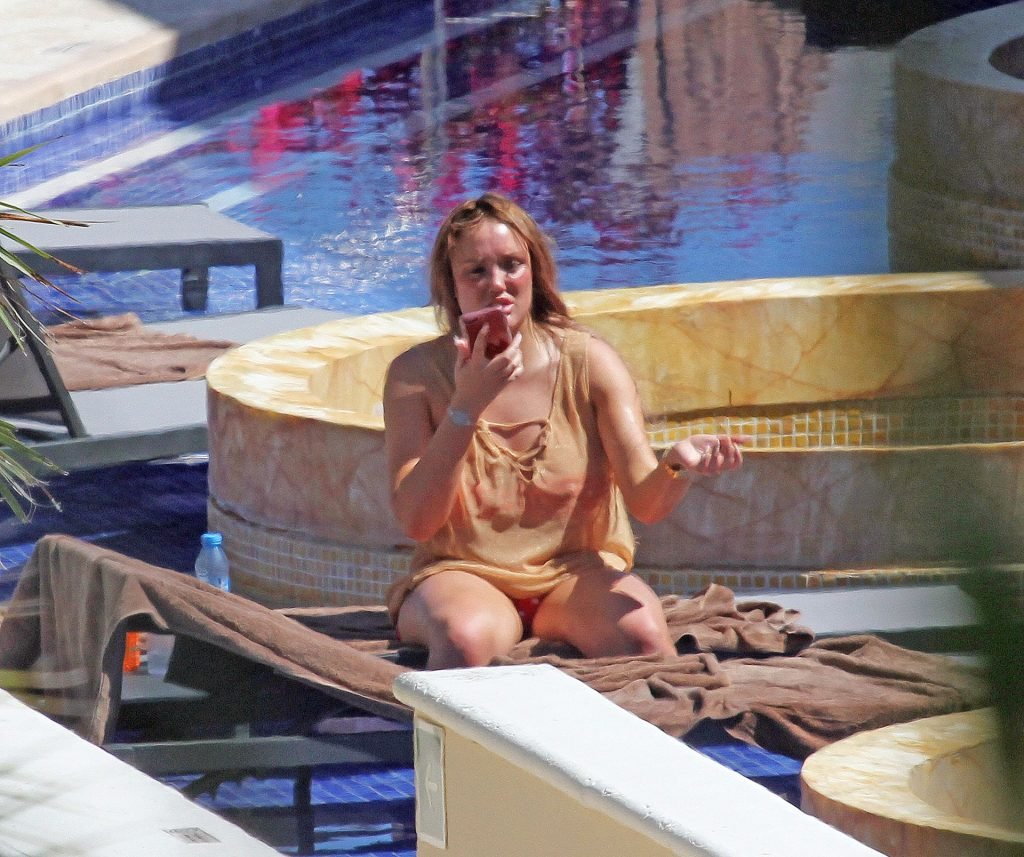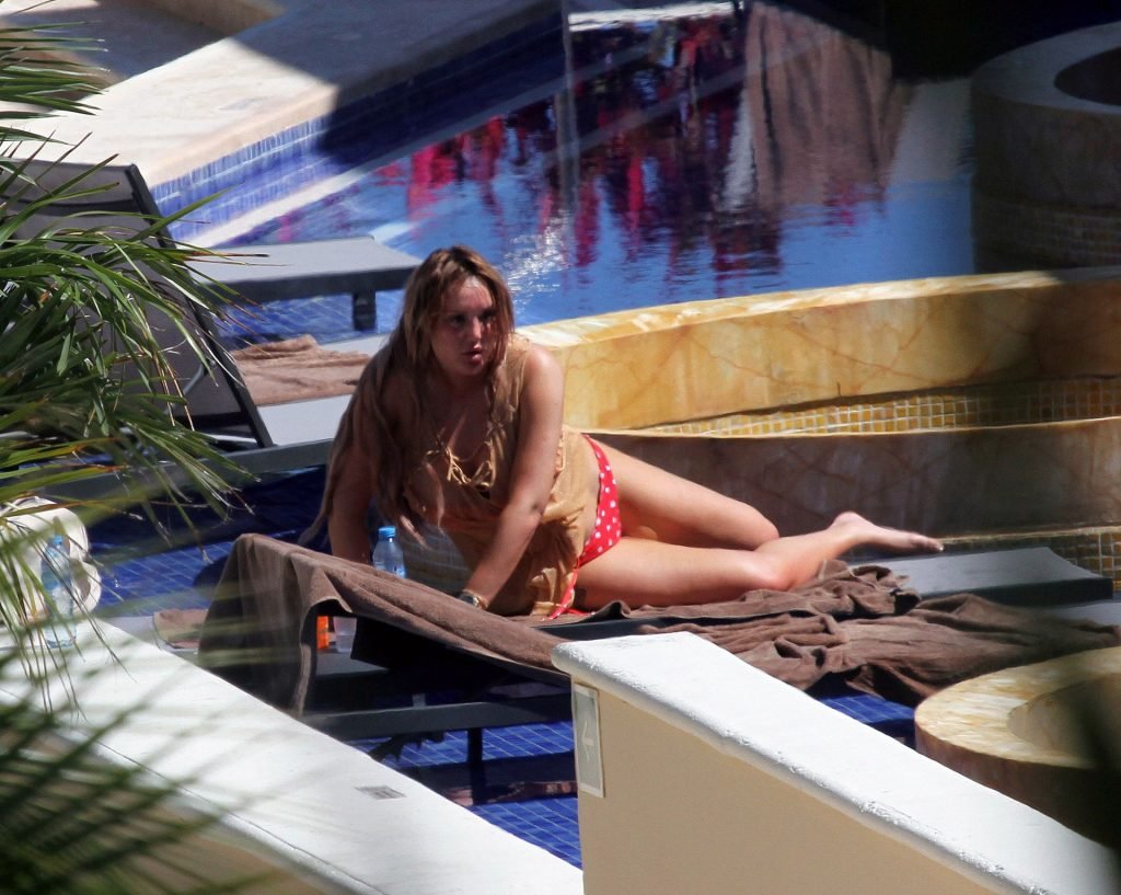 Звезда реалити-шоу Шарлотта Летисия Кросби наслаждается загаром в двухцветном красно-белом купальнике в горошек, в компании Джоша Ритчи во время пребывания в Мексике, 15.02.2019.