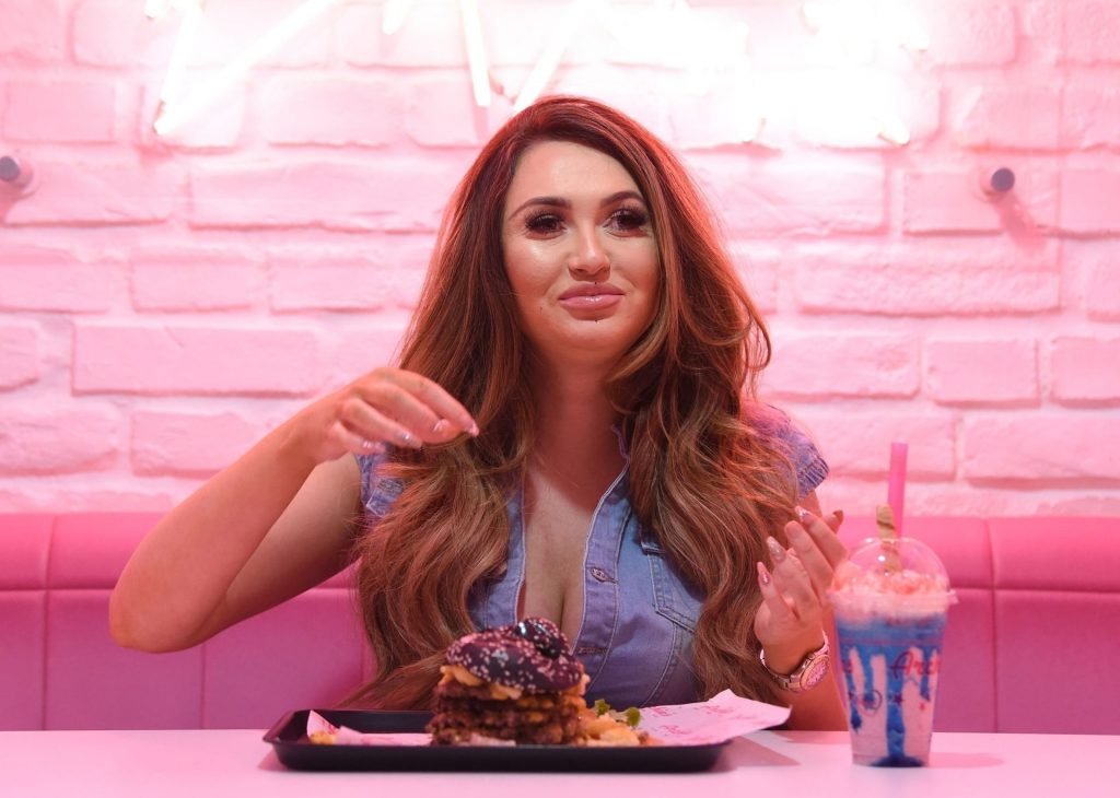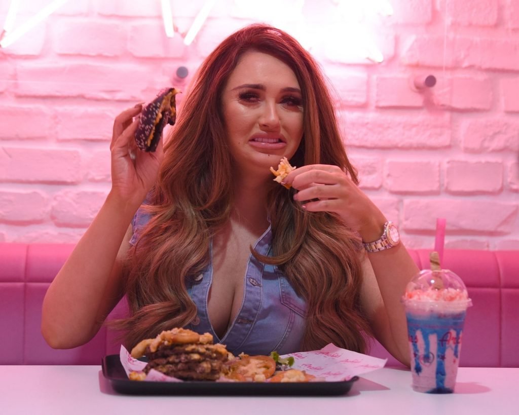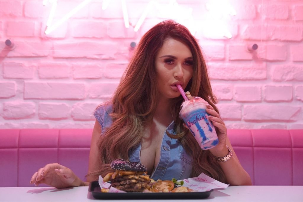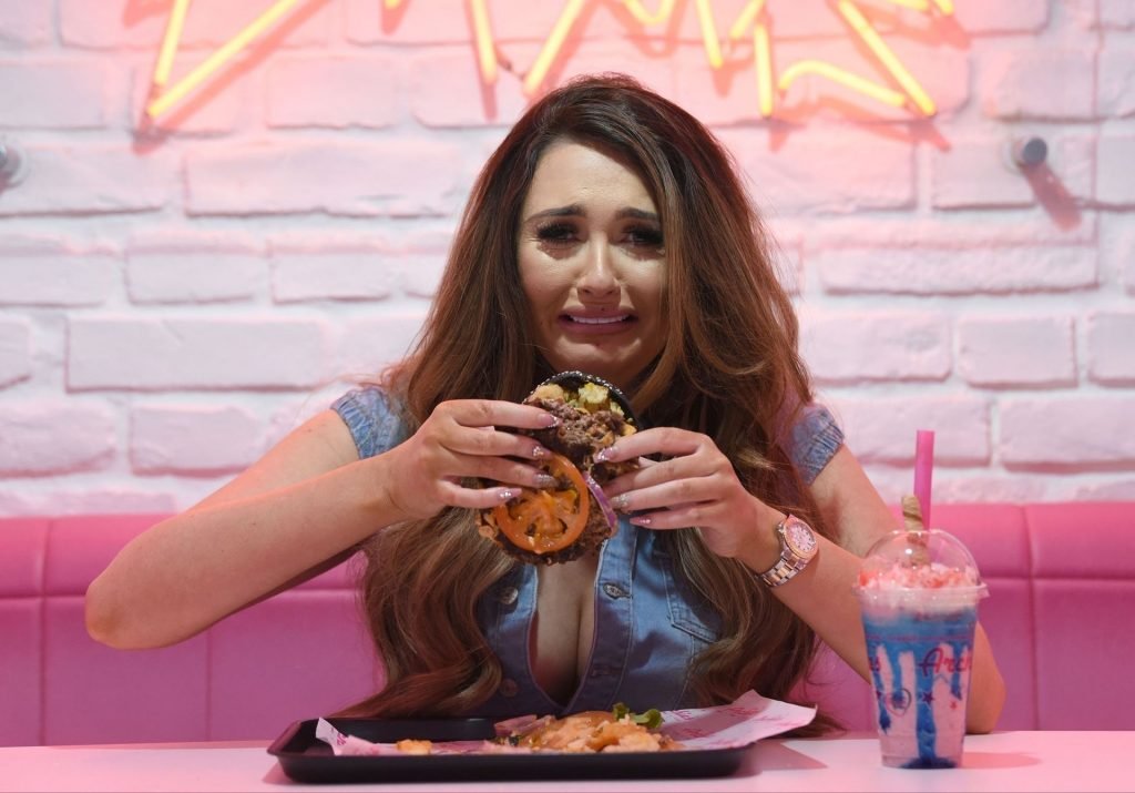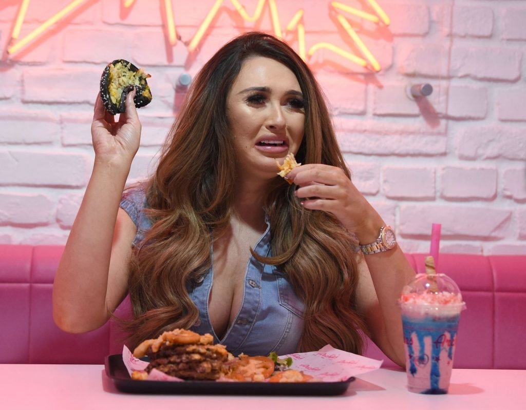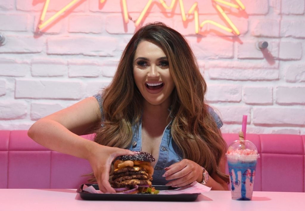 Звезда реалити Шарлотта Доусон наслаждается огромным бургером в баре Archie’s Burger and Milkshake после долгого дня на фотосессии fredafunk в Манчестере, 21.03.2019. Приятного аппетита!