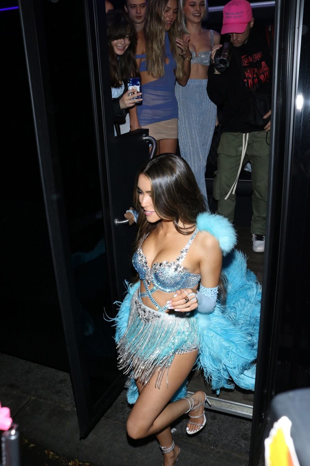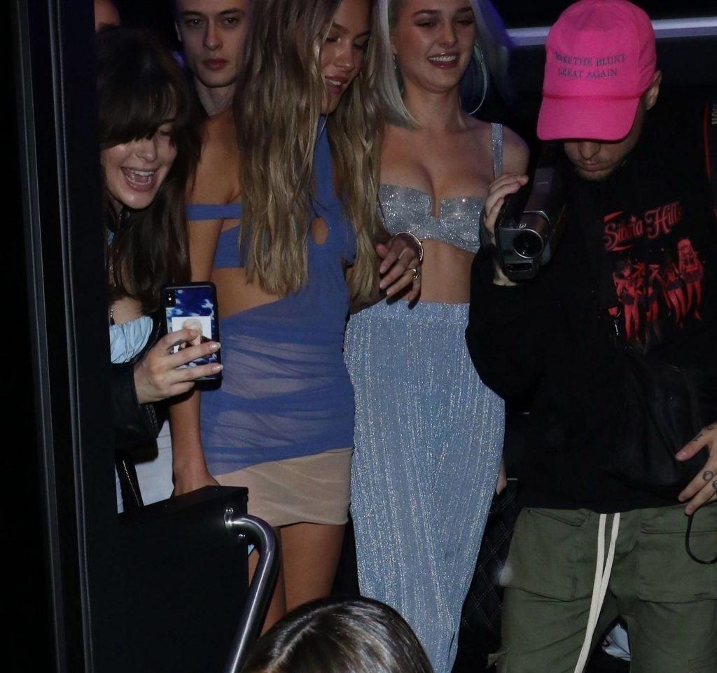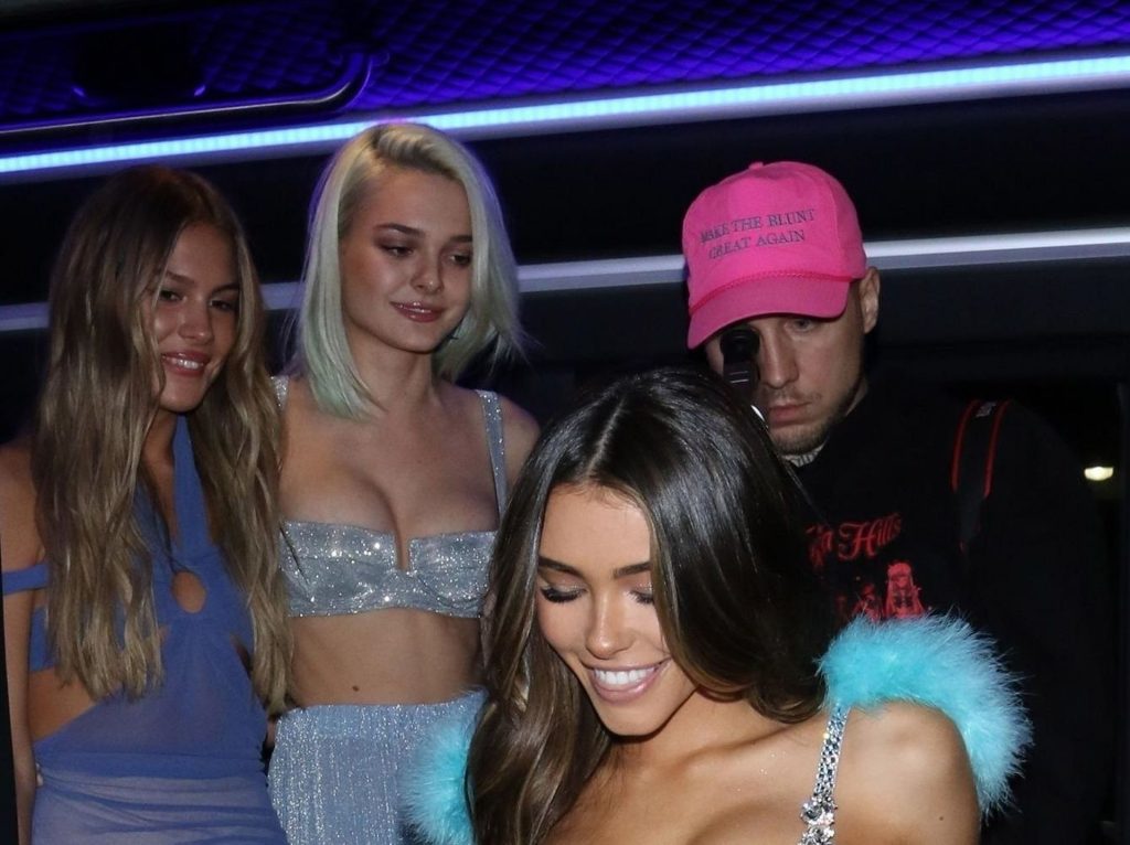 Американская певица Шарлотта Лоренс (19) прибывает на вечеринку в автобусе с Мэдисон Бир и друзьями, чтобы отпраздновать свой 21-й день рождения в Delilah в Уэст-Голливуде, 03/05/2020. Шарлотта была вся в улыбках, одетая в серебристый комплект из двух частей с укороченным топом и расклешёнными брюками.