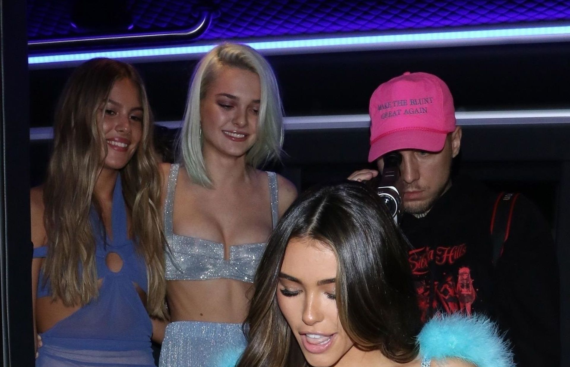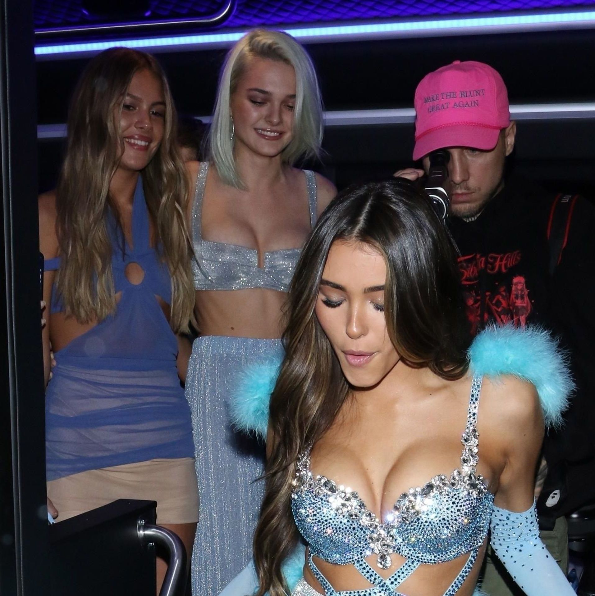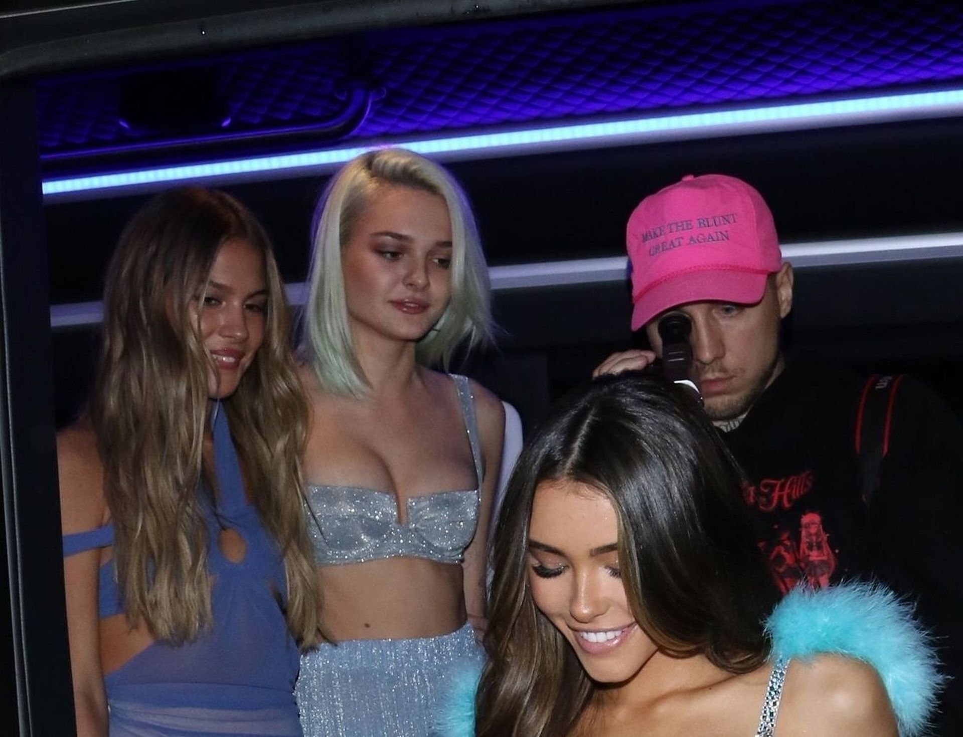 Американская певица Шарлотта Лоренс (19) прибывает на вечеринку в автобусе с Мэдисон Бир и друзьями, чтобы отпраздновать свой 21-й день рождения в Delilah в Уэст-Голливуде, 03/05/2020. Шарлотта была вся в улыбках, одетая в серебристый комплект из двух частей с укороченным топом и расклешёнными брюками.