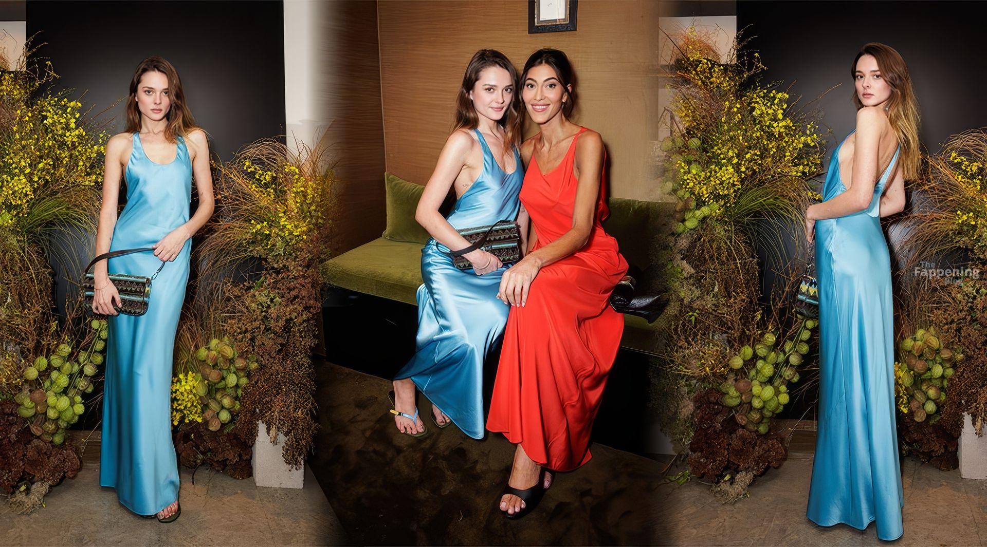 Шарлотта Лоренс пришла без бюстгальтера на мероприятие STAUD в Лос-Анджелесе, её боковые части груди и соски просвечивали через облегающее сатиновое платье.