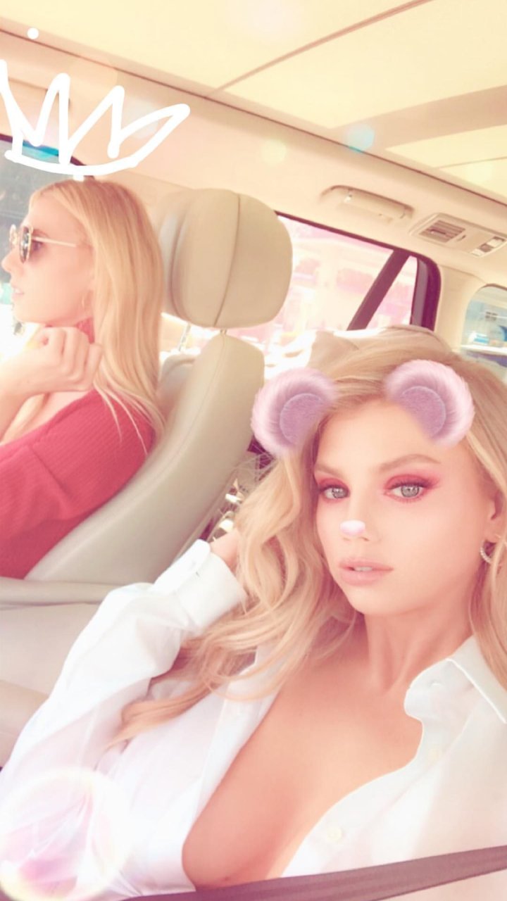 Модель и актриса Шарлотта МакКинни, 24 года, демонстрирует декольте, покидая отель Chateau Marmont в Беверли-Хиллз, 02.02.2018.