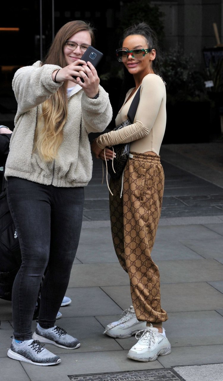 Челси Хили (30) была замечена на прогулке в центре Манчестера, забыв надеть бюстгальтер и продемонстрировав всё в прозрачной блузке, 06/03/2019.