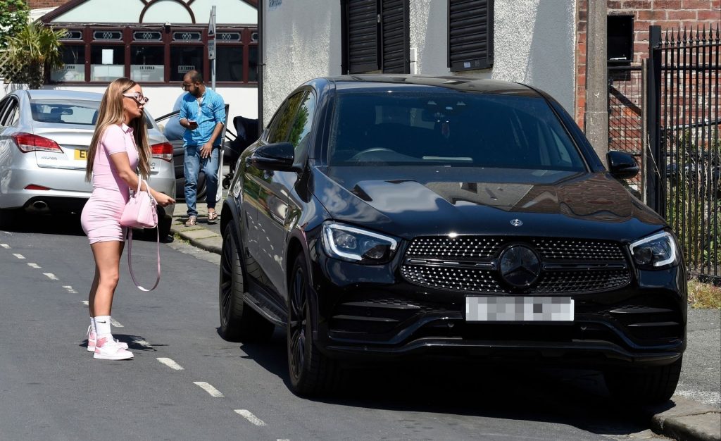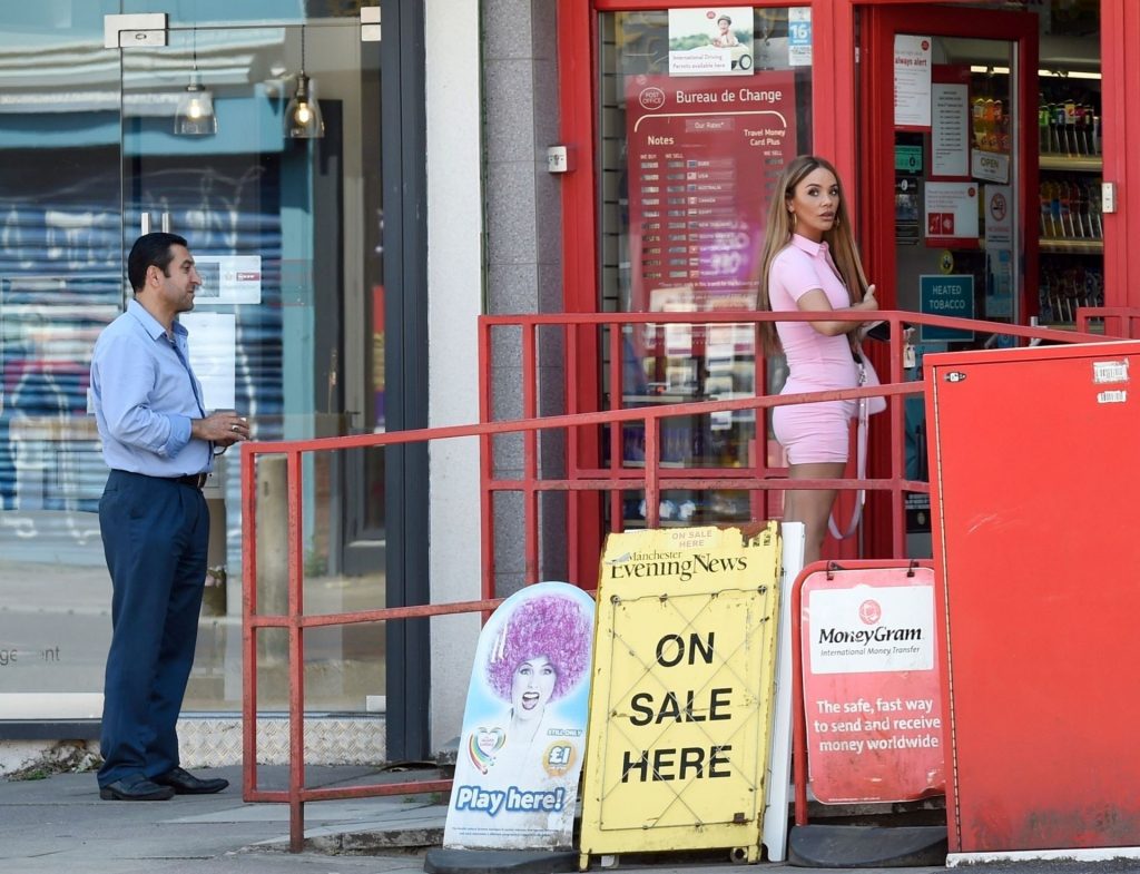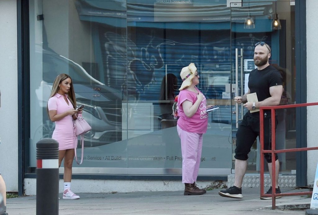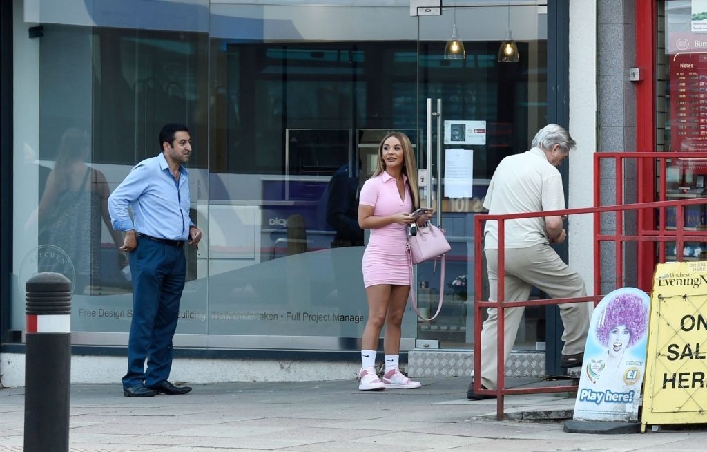 Бывшая актриса Hollyoaks Челси Хили соблюдает правила социальной дистанции на этот раз, когда ее видят стоящей в очереди на почту в Манчестере, выглядя очень летне в полностью розовом наряде, 06/01/2020.