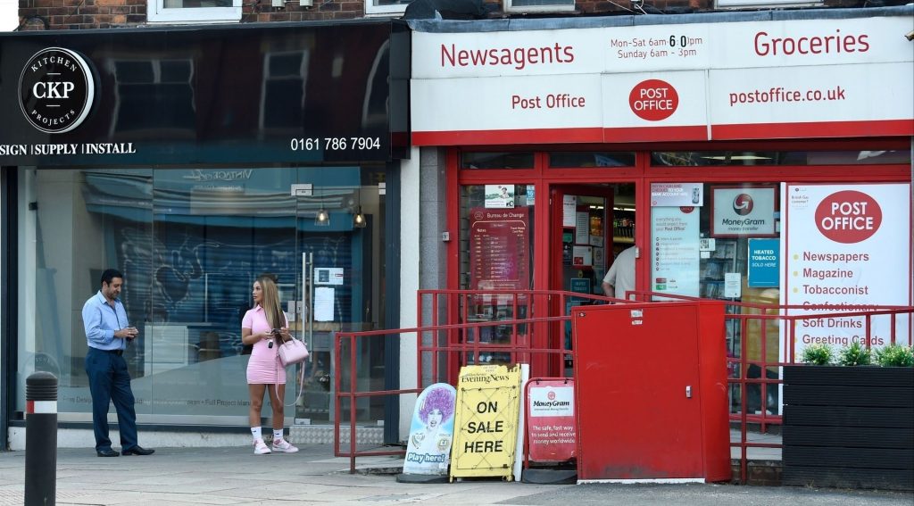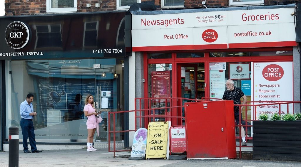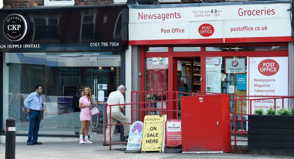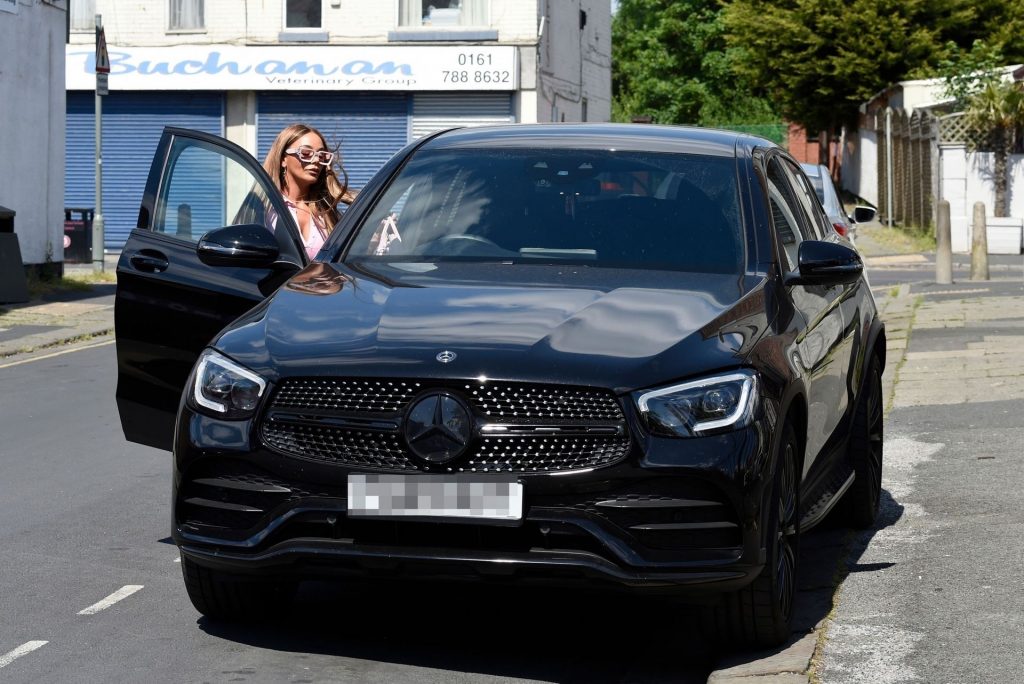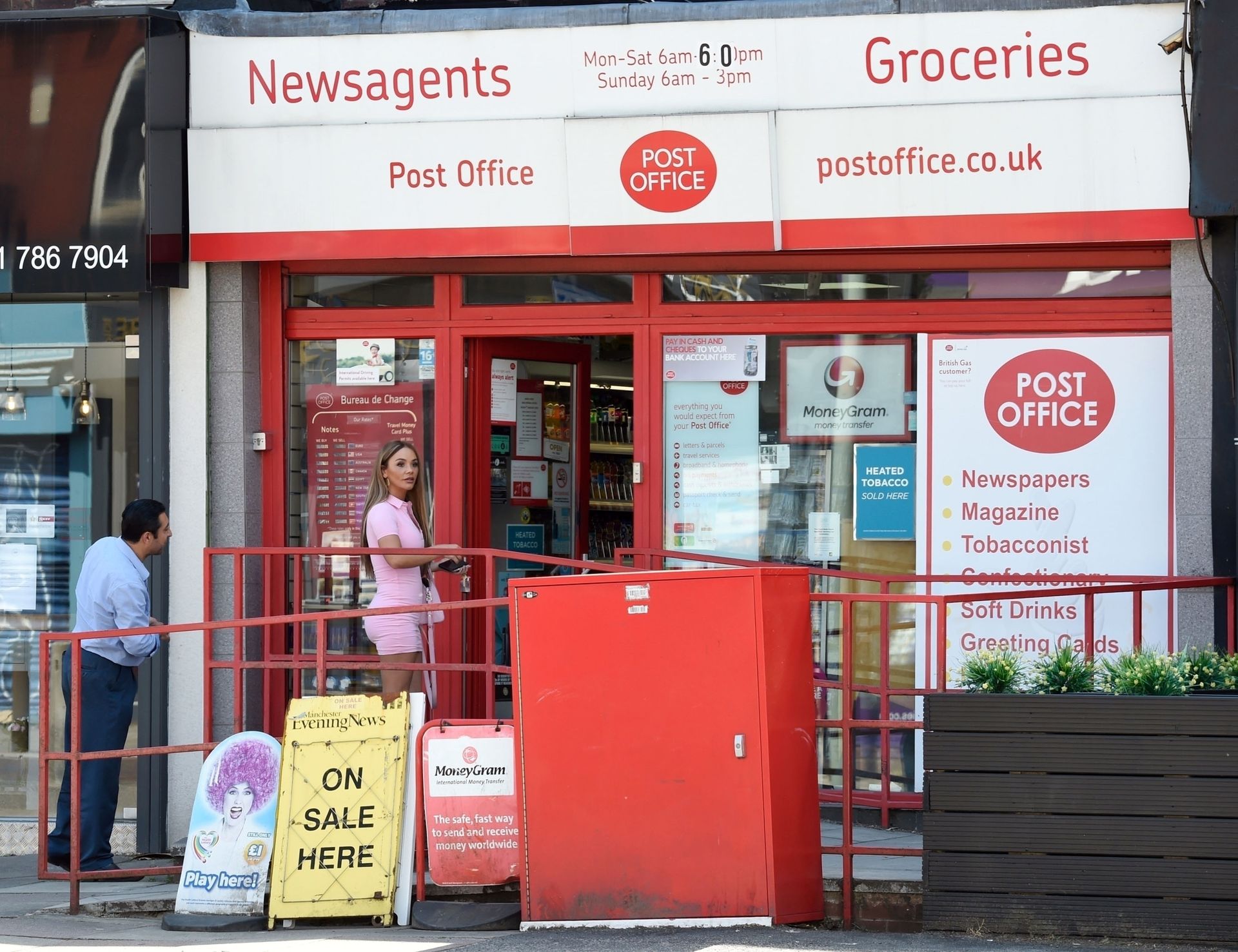 Бывшая актриса Hollyoaks Челси Хили соблюдает правила социальной дистанции на этот раз, когда ее видят стоящей в очереди на почту в Манчестере, выглядя очень летне в полностью розовом наряде, 06/01/2020.