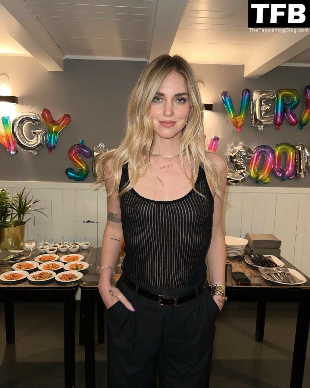 Кьяра Ферраньи позирует в прозрачном топе без бюстгальтера на вечеринке – Instagram, 23.04.2022.