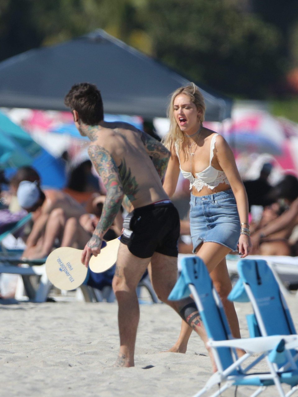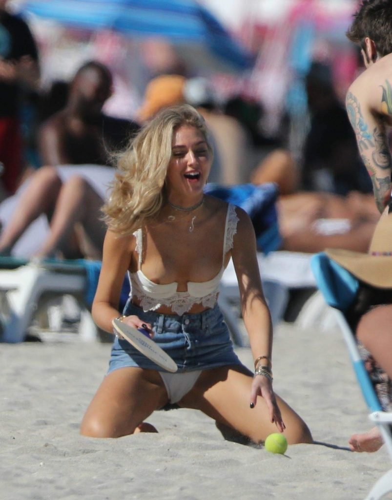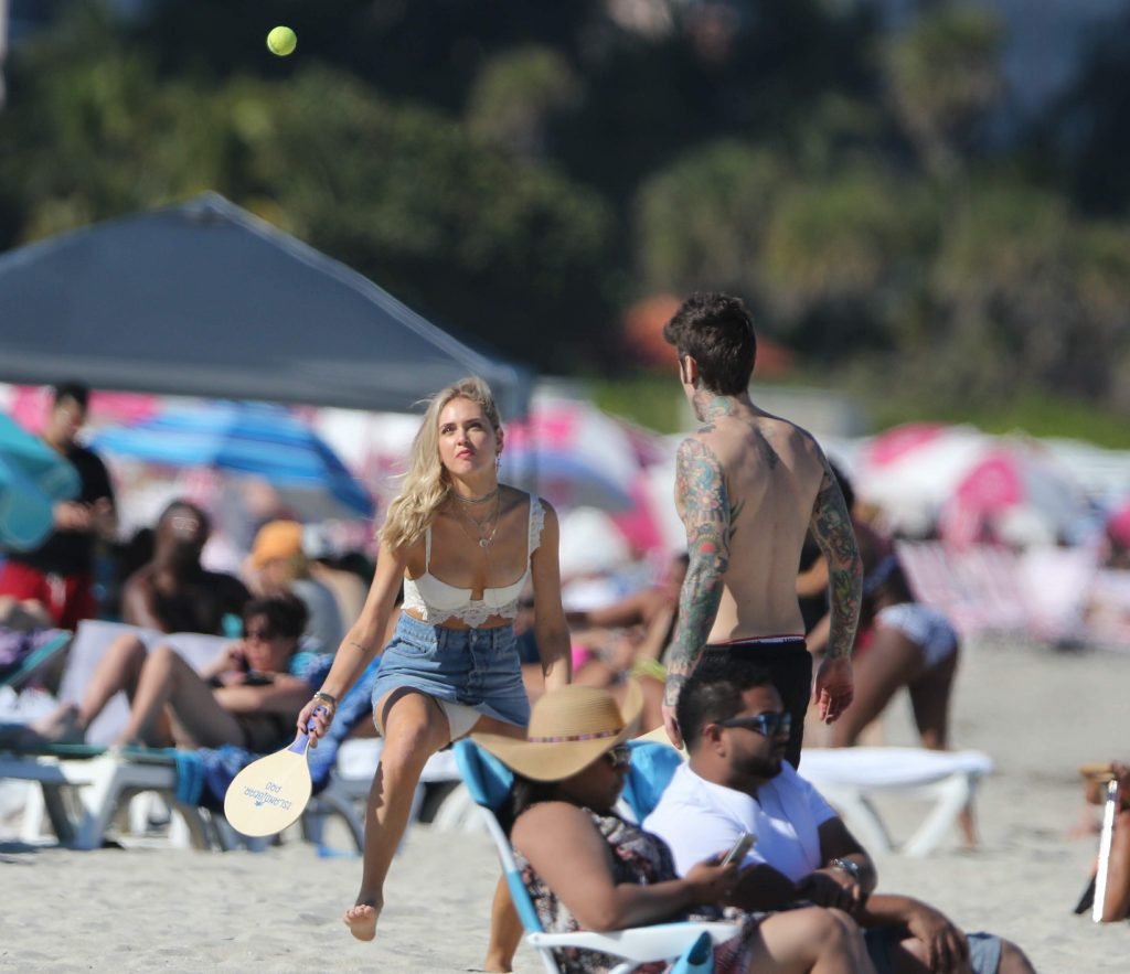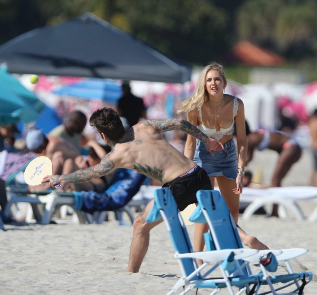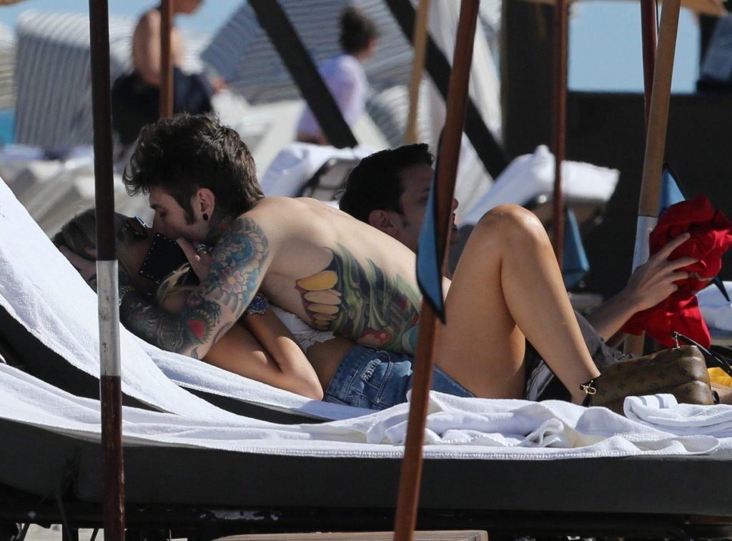 Chiara Ferragni демонстрирует сосок, наслаждаясь днем на пляже в Майами, 21.03.2017. Chiara Ferragni — итальянская блогер и дизайнер моды. Возраст — 29 лет (родилась 7 мая 1987 года).