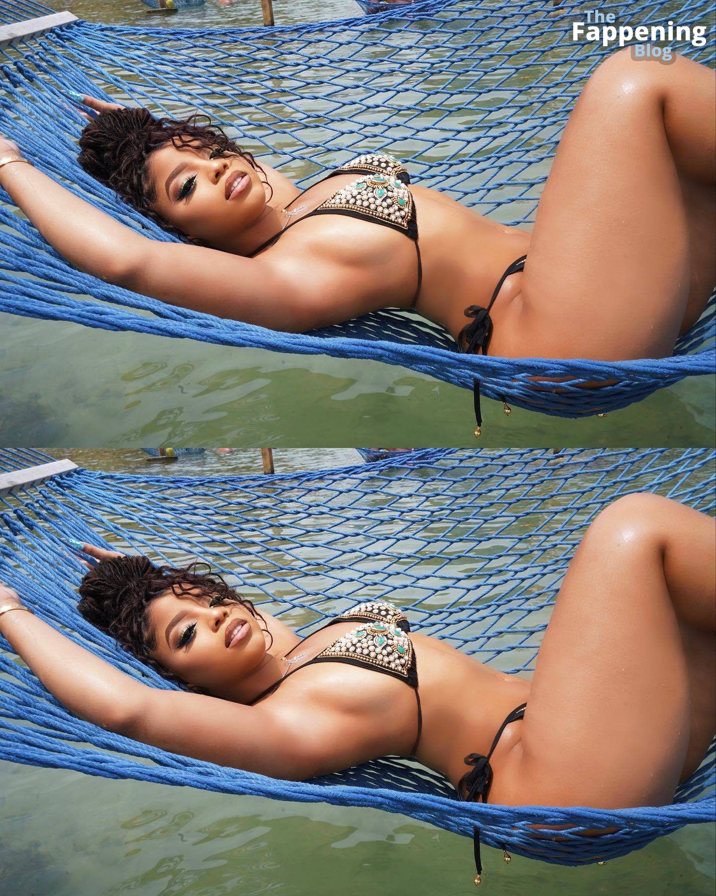 Актриса Хлоя Бэйли запечатлена в сексуальном комплекте из бикини и стрингов, который идеально подчеркивает её потрясающую грудь и безупречную попу.
