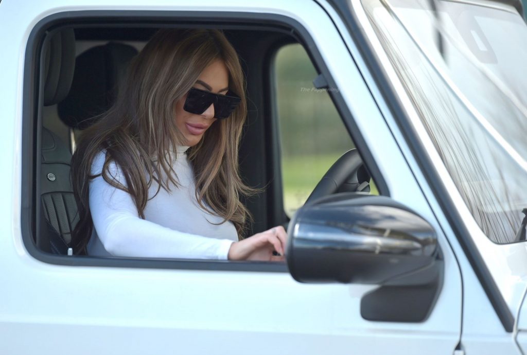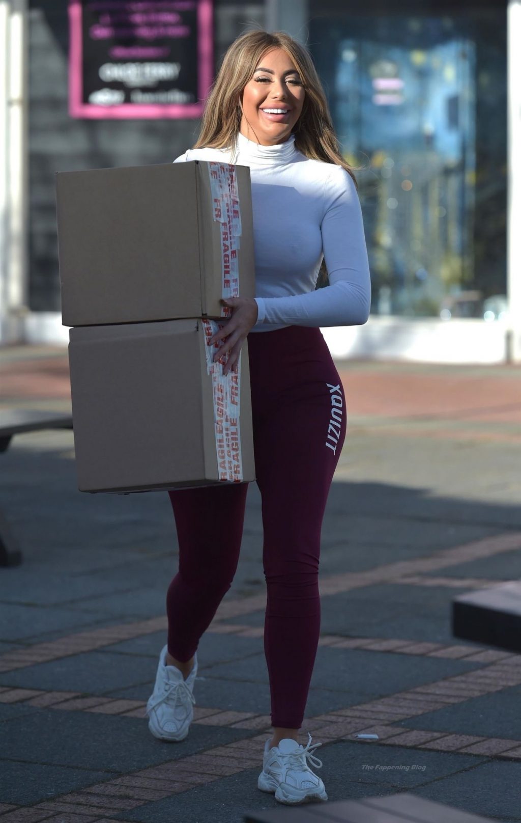 Хлоя без бюстгальтера сфотографирована в своем магазине в Ньюкасле, помогая маме с заказами и вынося почту, 25.02.2021.