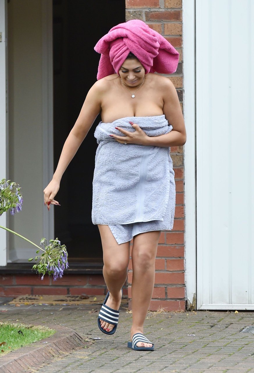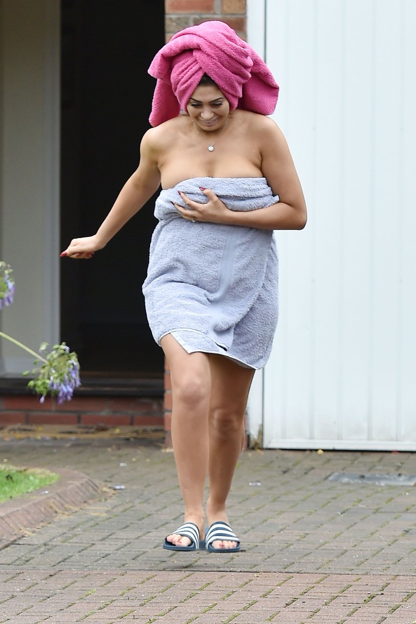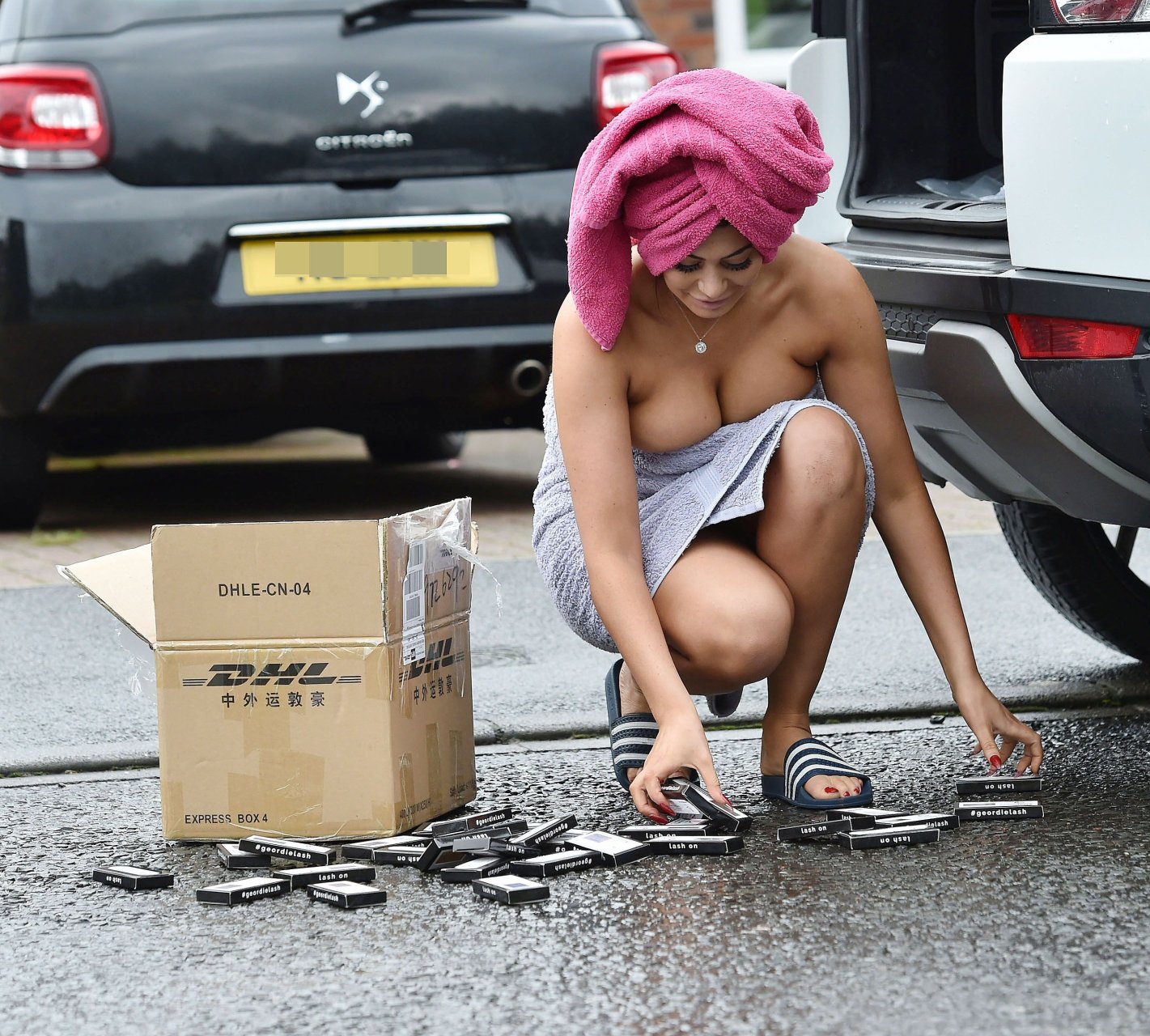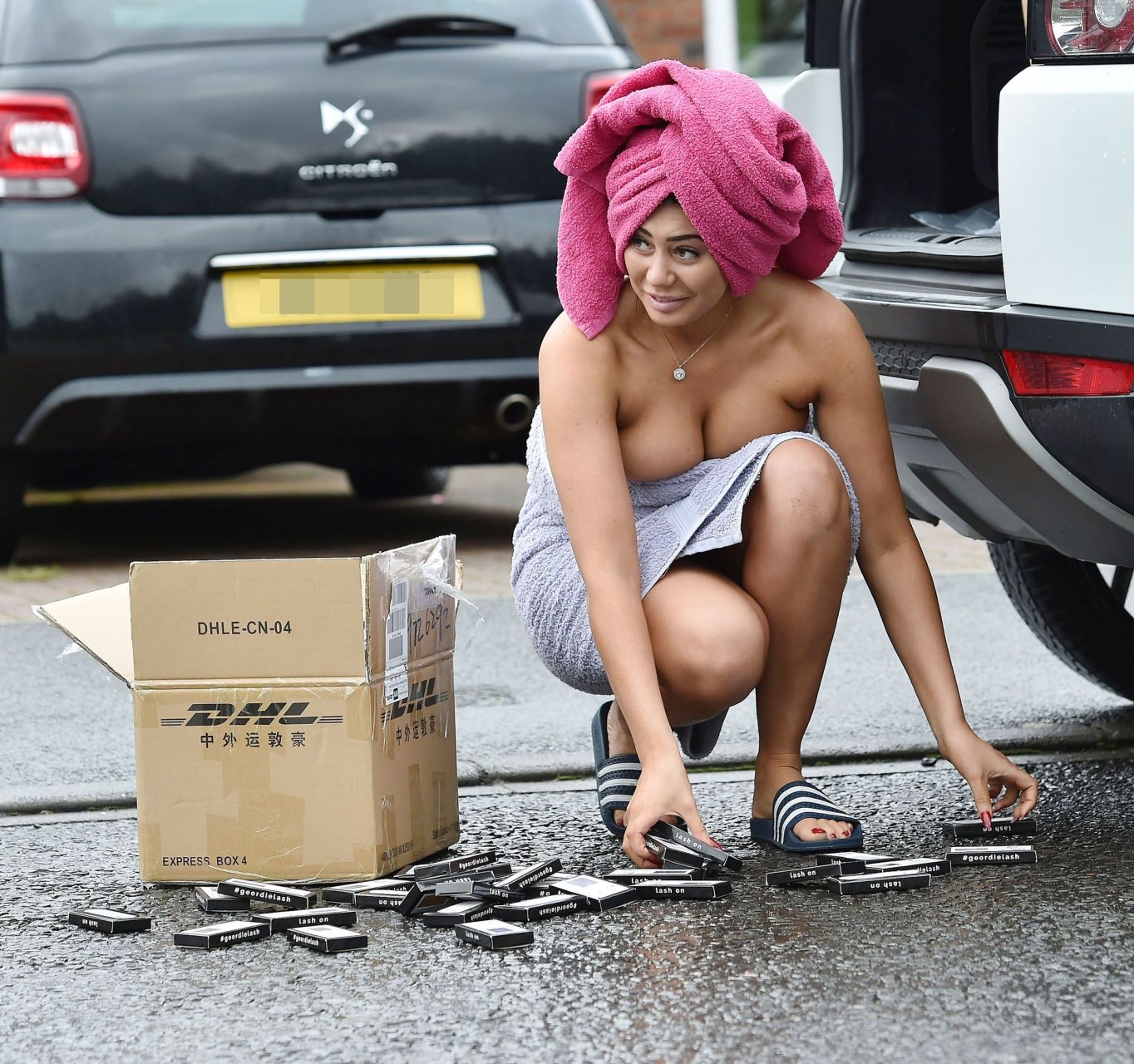 Голая, прикрытая полотенцем, Хлоя Ферри выходит из своего дома в Ньюкасле, 16.10.2016. Хлоя Ферри — британская звезда реалити-шоу (Geordie Shore). Возраст: 21.