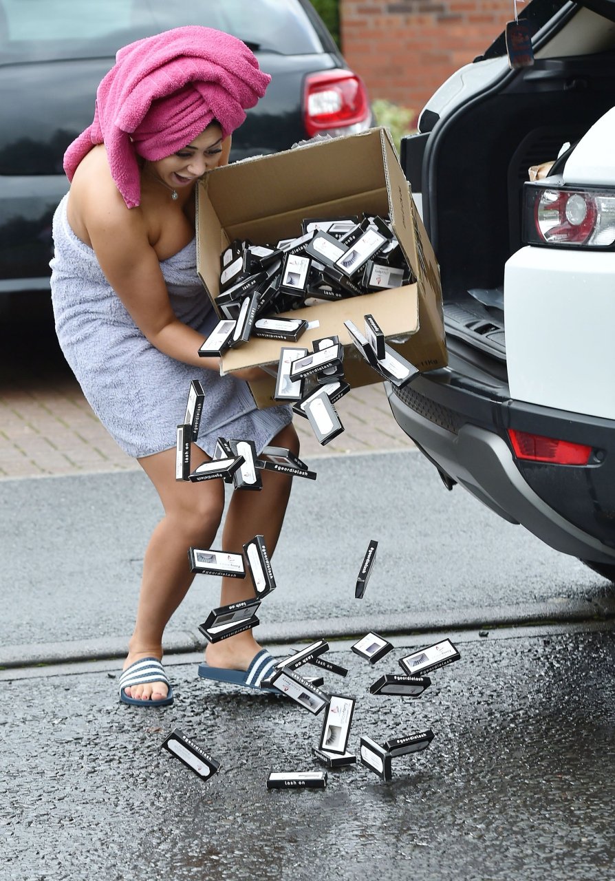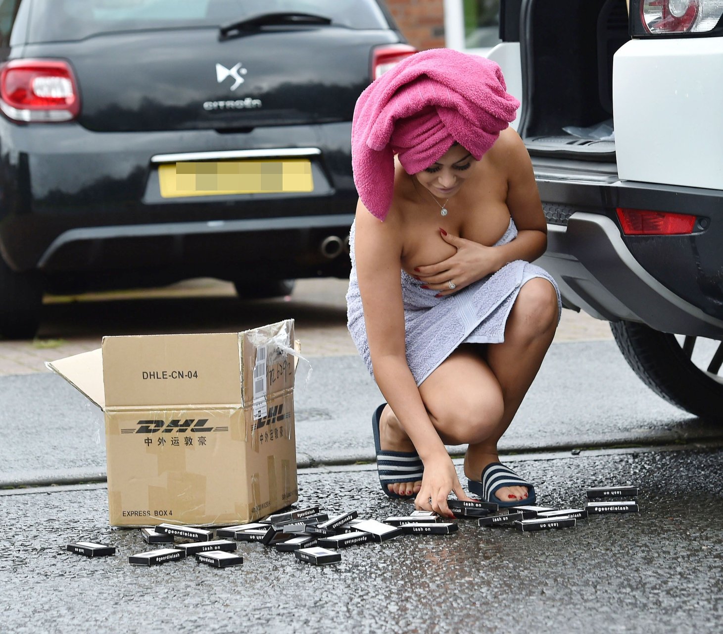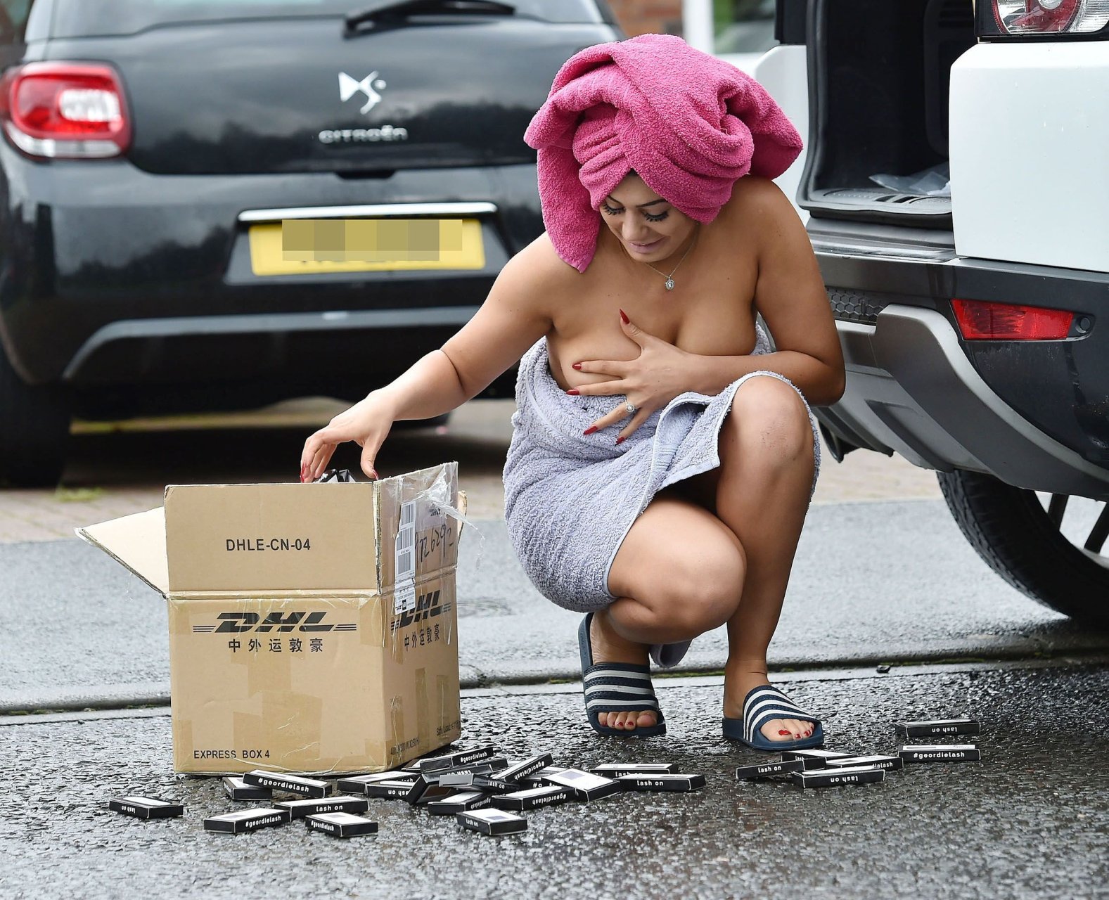 Голая, прикрытая полотенцем, Хлоя Ферри выходит из своего дома в Ньюкасле, 16.10.2016. Хлоя Ферри — британская звезда реалити-шоу (Geordie Shore). Возраст: 21.