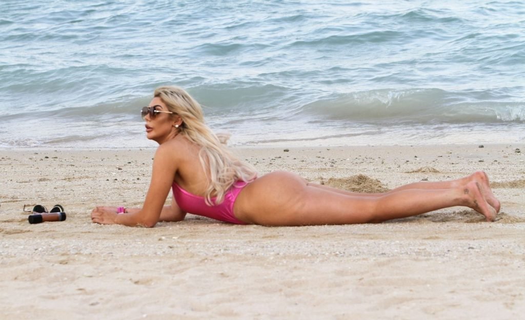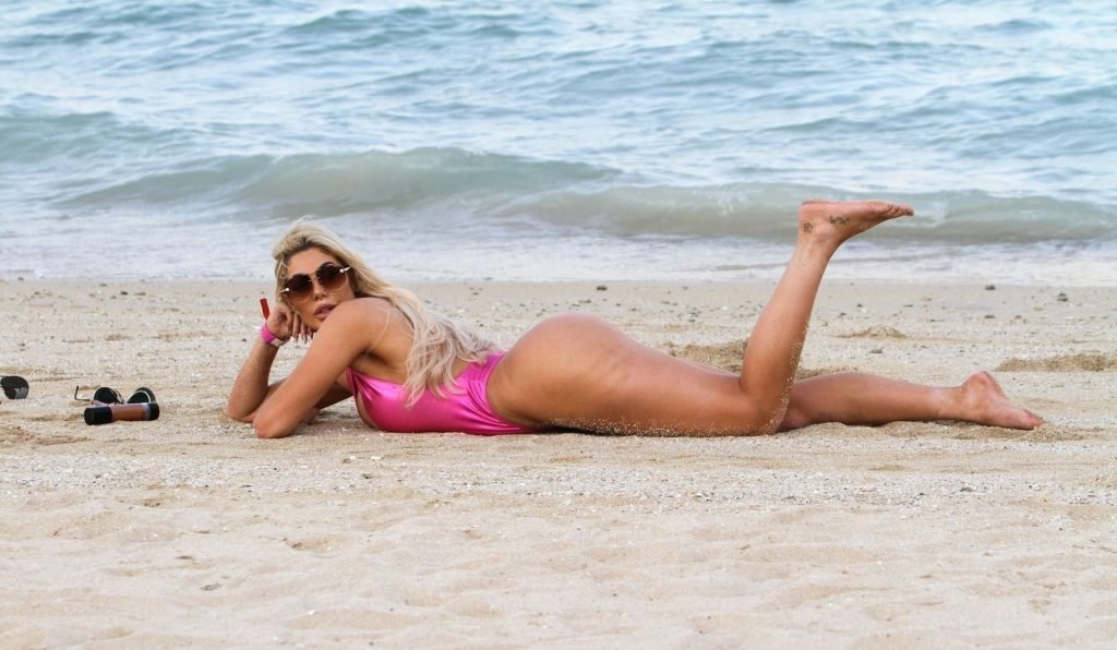 Хлоя надела свой красивый розовый купальник и выглядела потрясающе, показывая все свои соблазнительные изгибы и демонстрируя навыки владения мячом во время жаркой фотосессии.