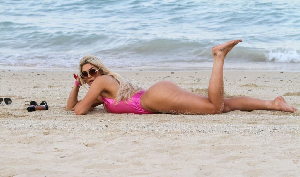 Пришло время сексуальной звезде Geordie Shore Хлое Ферри выйти на пляж и продемонстрировать свою пышную фигуру во время отпуска в Дубае, 15.10.2019.