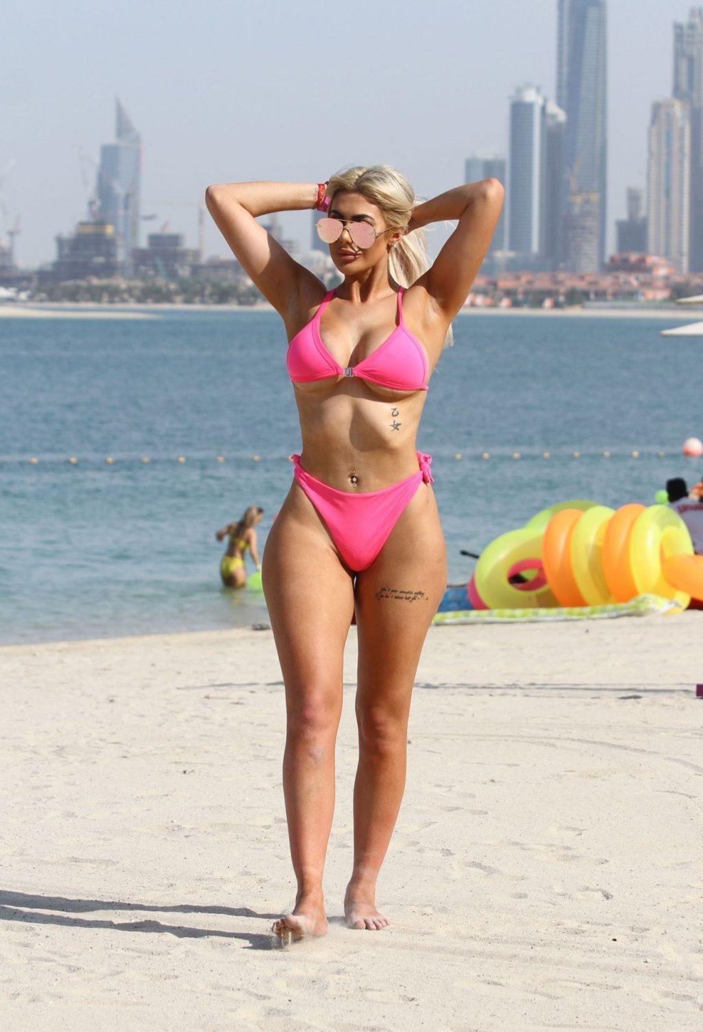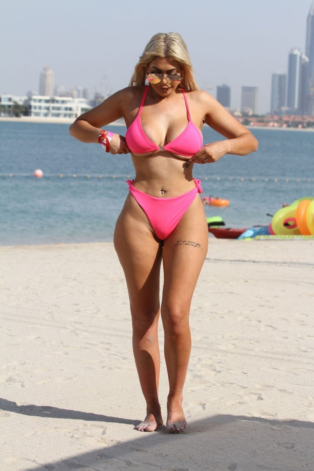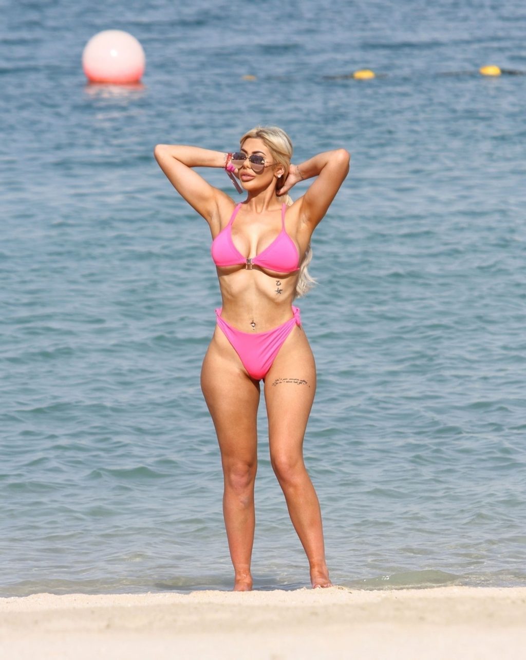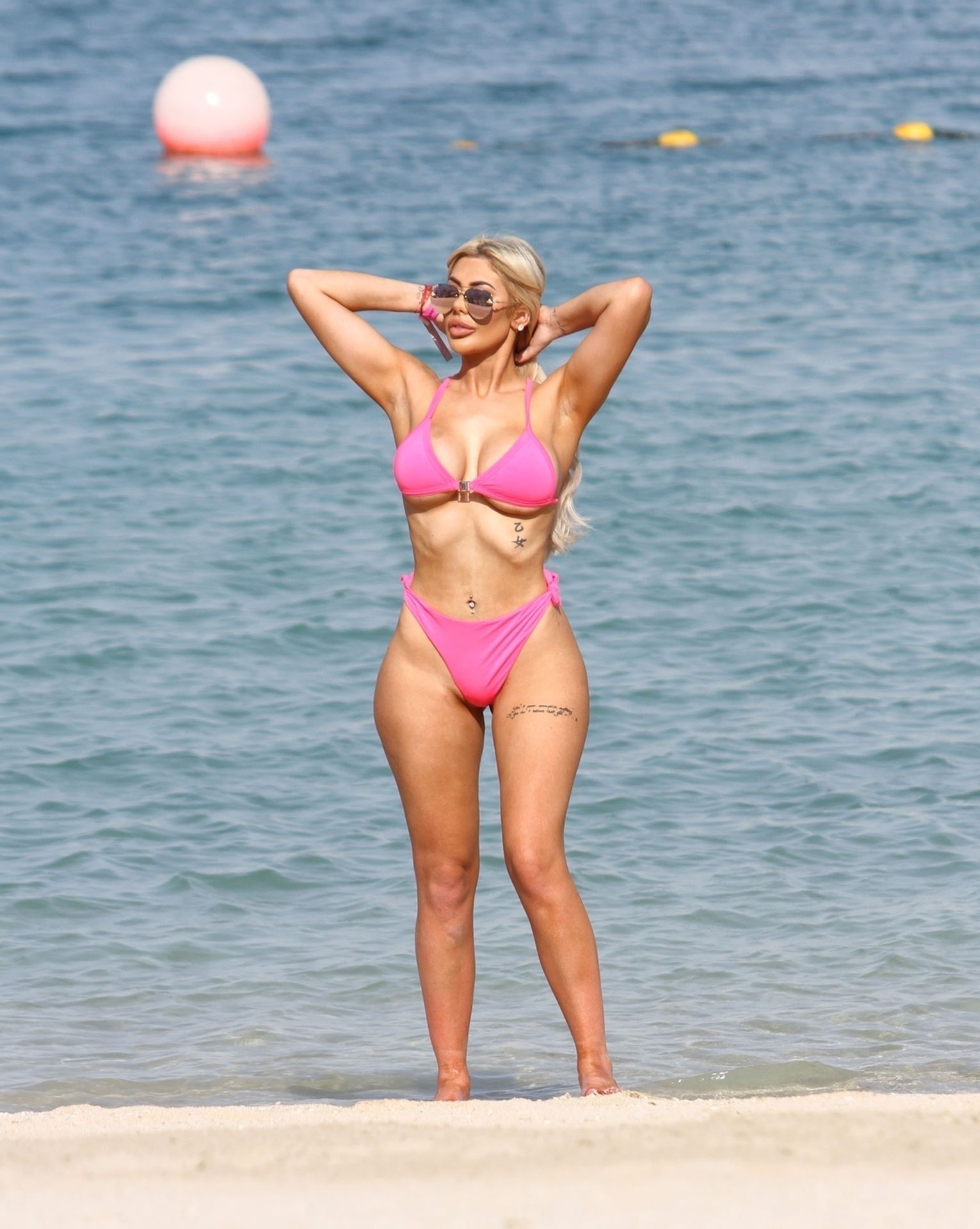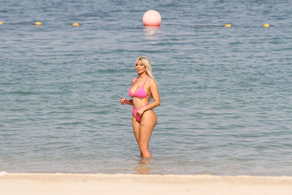 Жгучая на пляже и демонстрирующая горячие формы под солнцем Эмиратов — красавица из Geordie Shore Хлоя Ферри выглядит потрясающе в своем откровенном розовом бикини, 17.10.2019.
