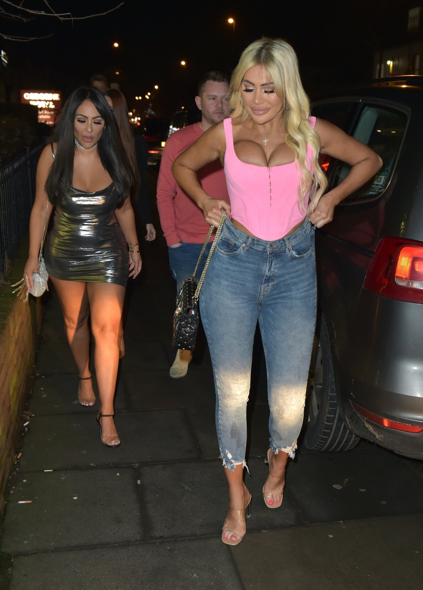 Chloe Ferry вырывается из корсетного топа во время ночного выхода с Charlotte Crosby и Sophie Kasaei, 22.12.2019. Трио из Джорди были в Ньюкасле.