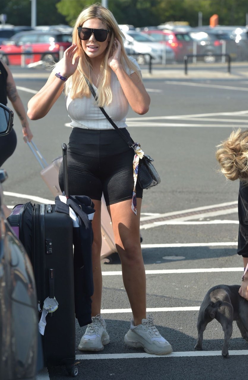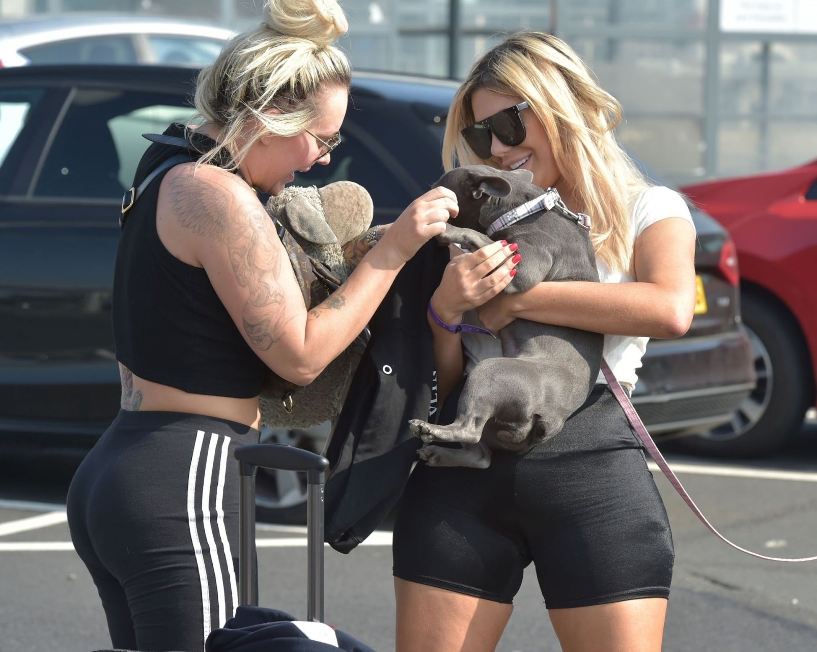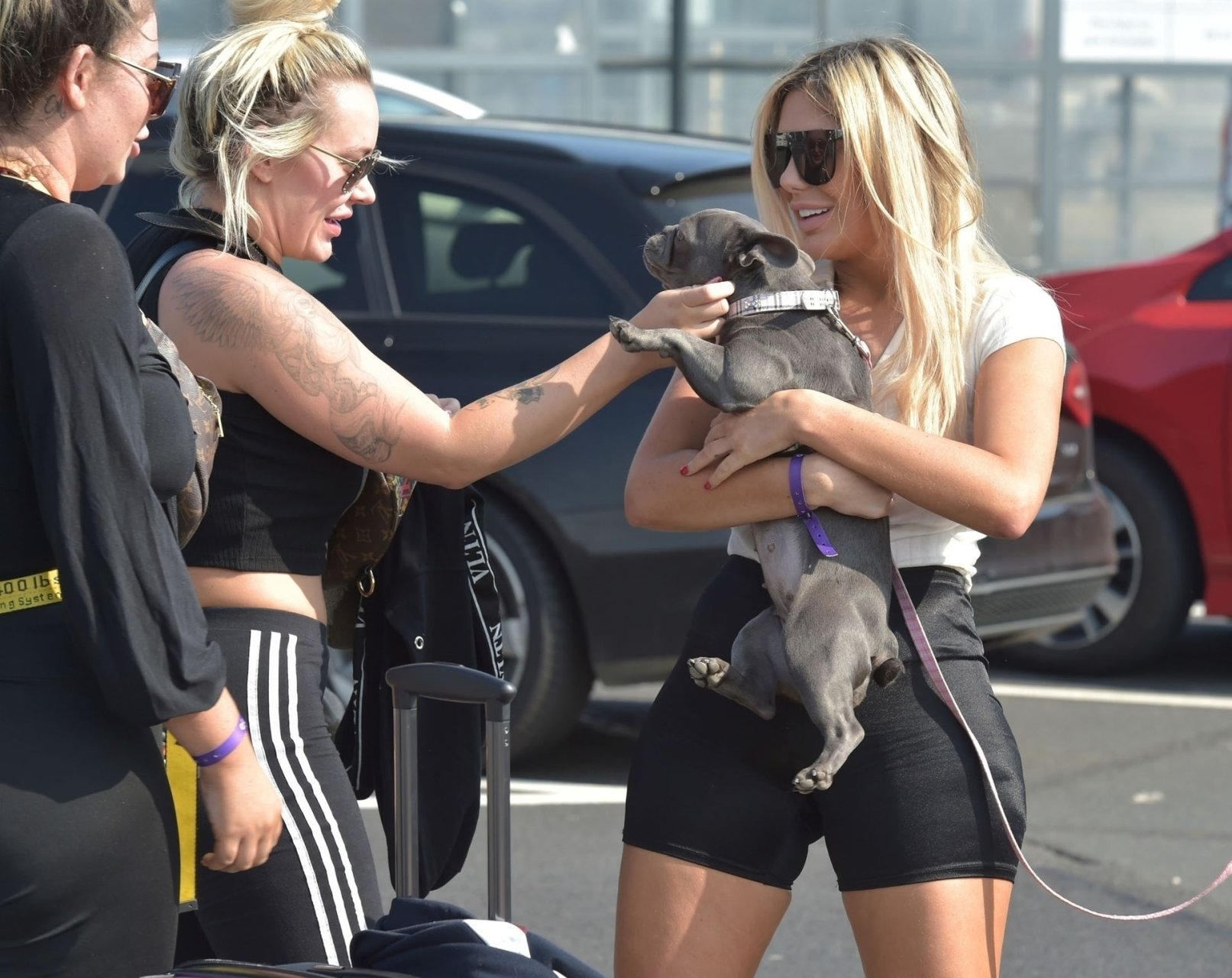 “Звезда “Geordie Shore” Хлоя Ферри была замечена, когда возвращалась домой из Ибицы с друзьями. Хлою в аэропорту Ньюкасла встретила её мама Лиз, которая ждала вместе с собакой Хлои Айви, 27.08.2019.
