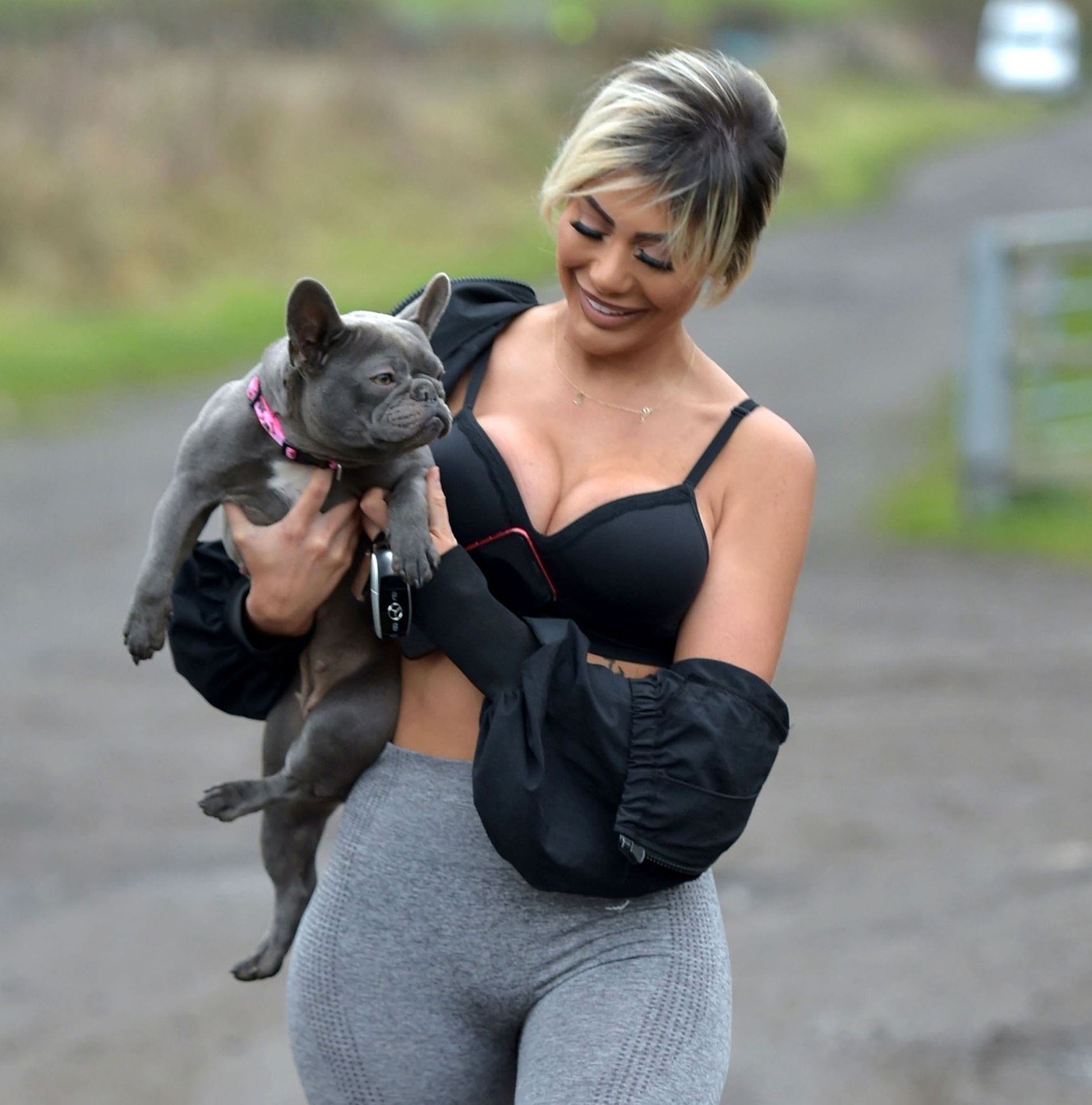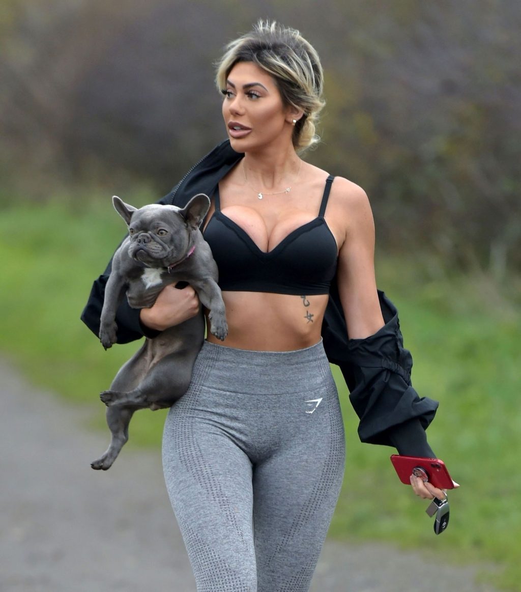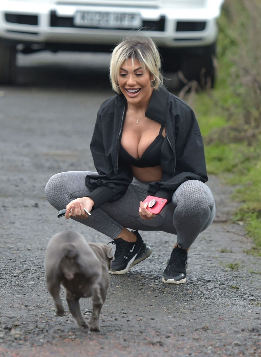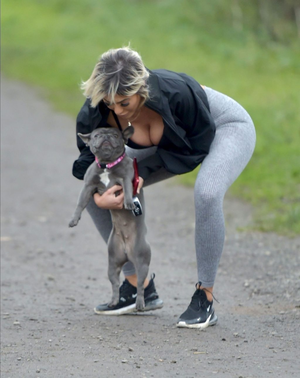 Пышногрудая Хлоя Ферри демонстрирует уменьшение груди во время прогулки с собакой в период локдауна.