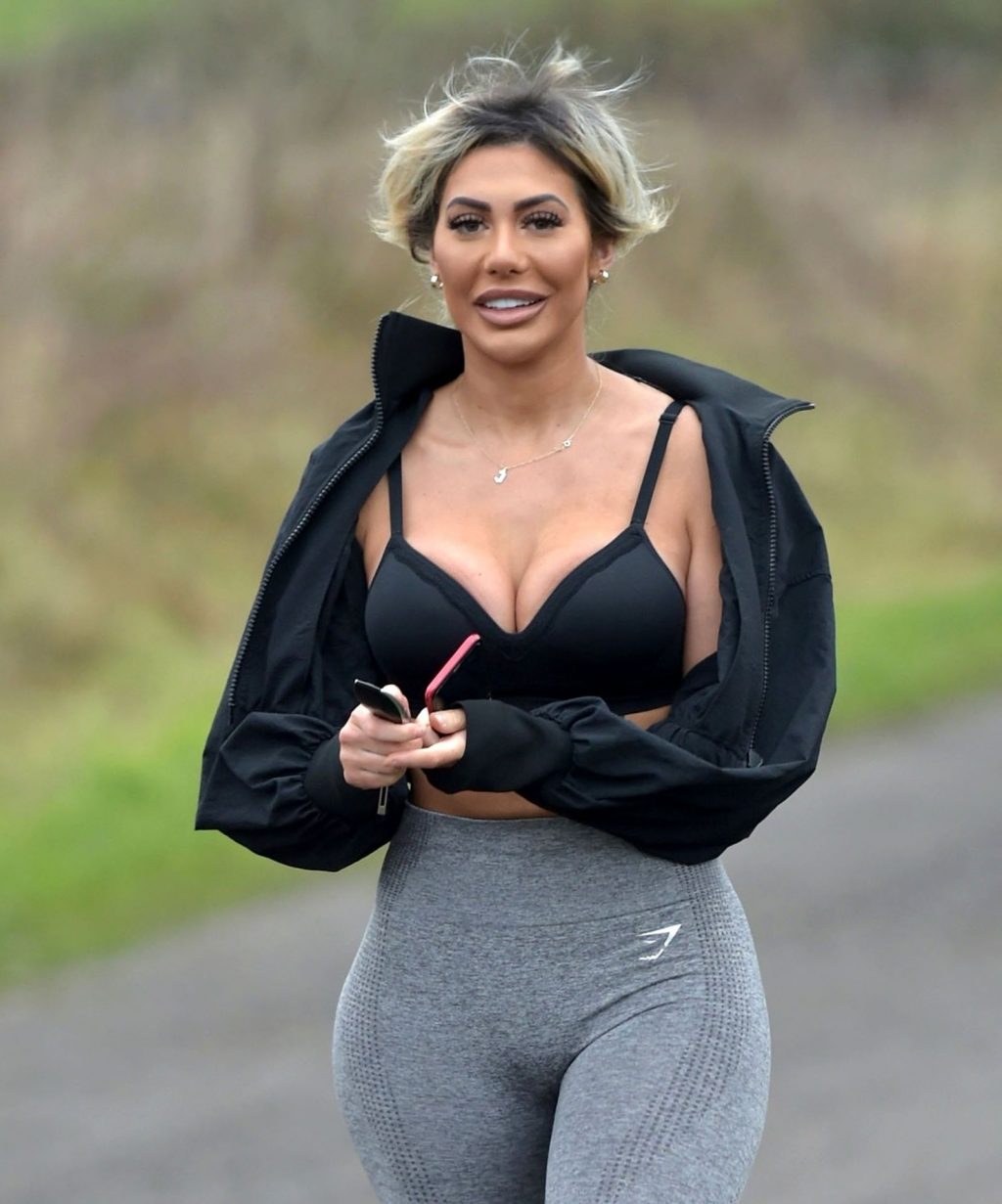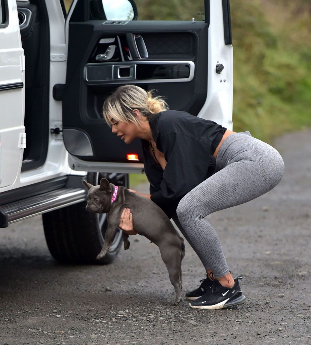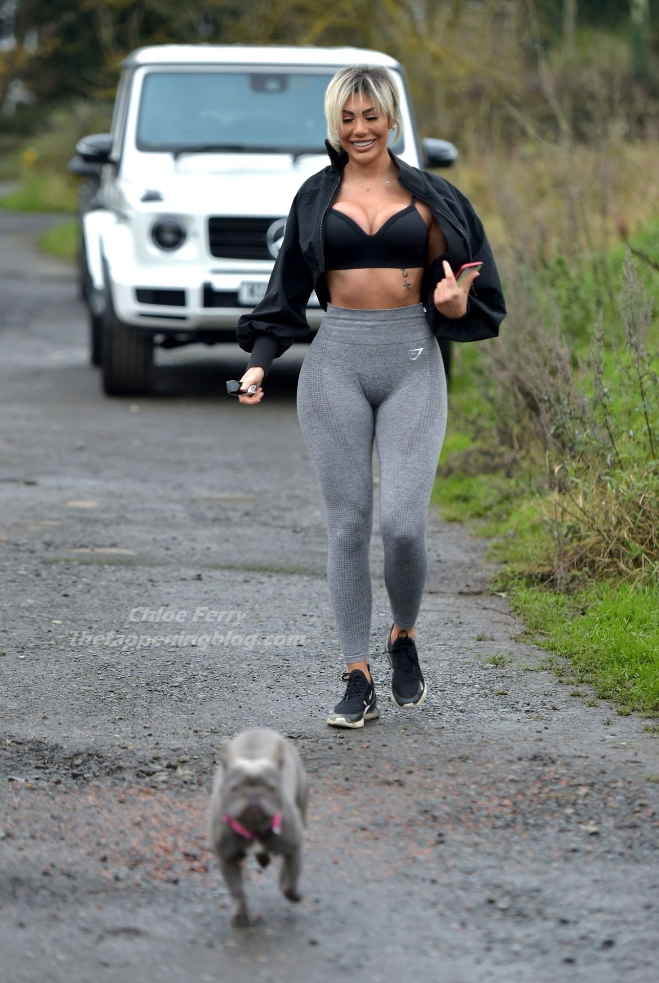 Пышногрудая Хлоя Ферри демонстрирует уменьшение груди во время прогулки с собакой в период локдауна.