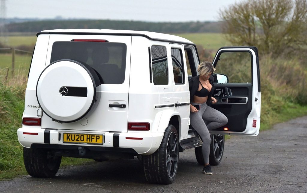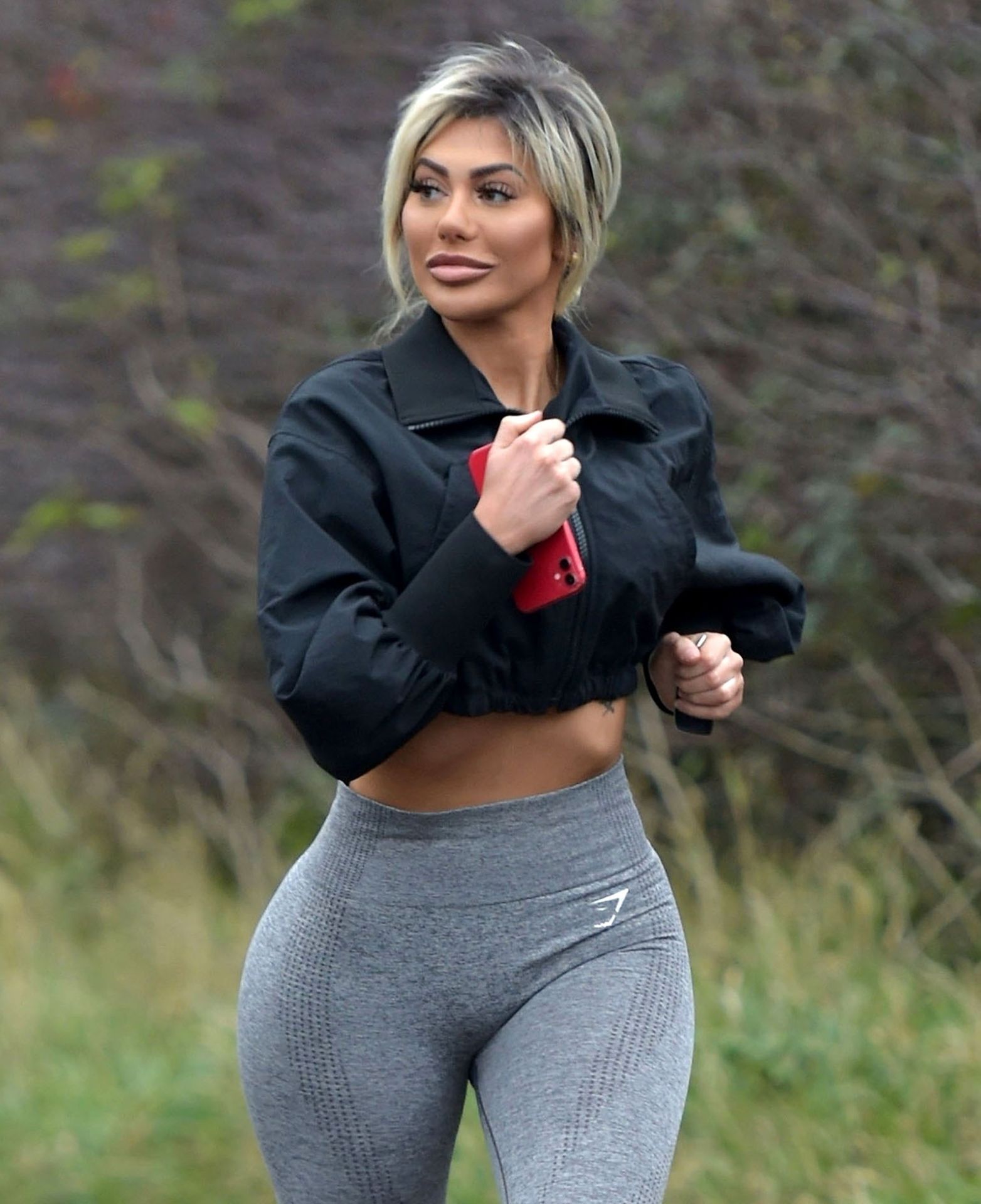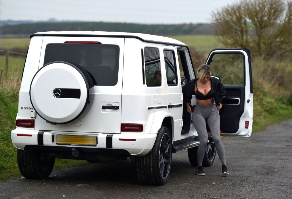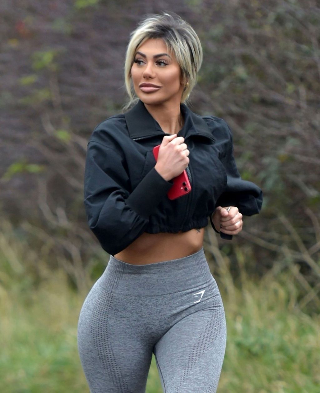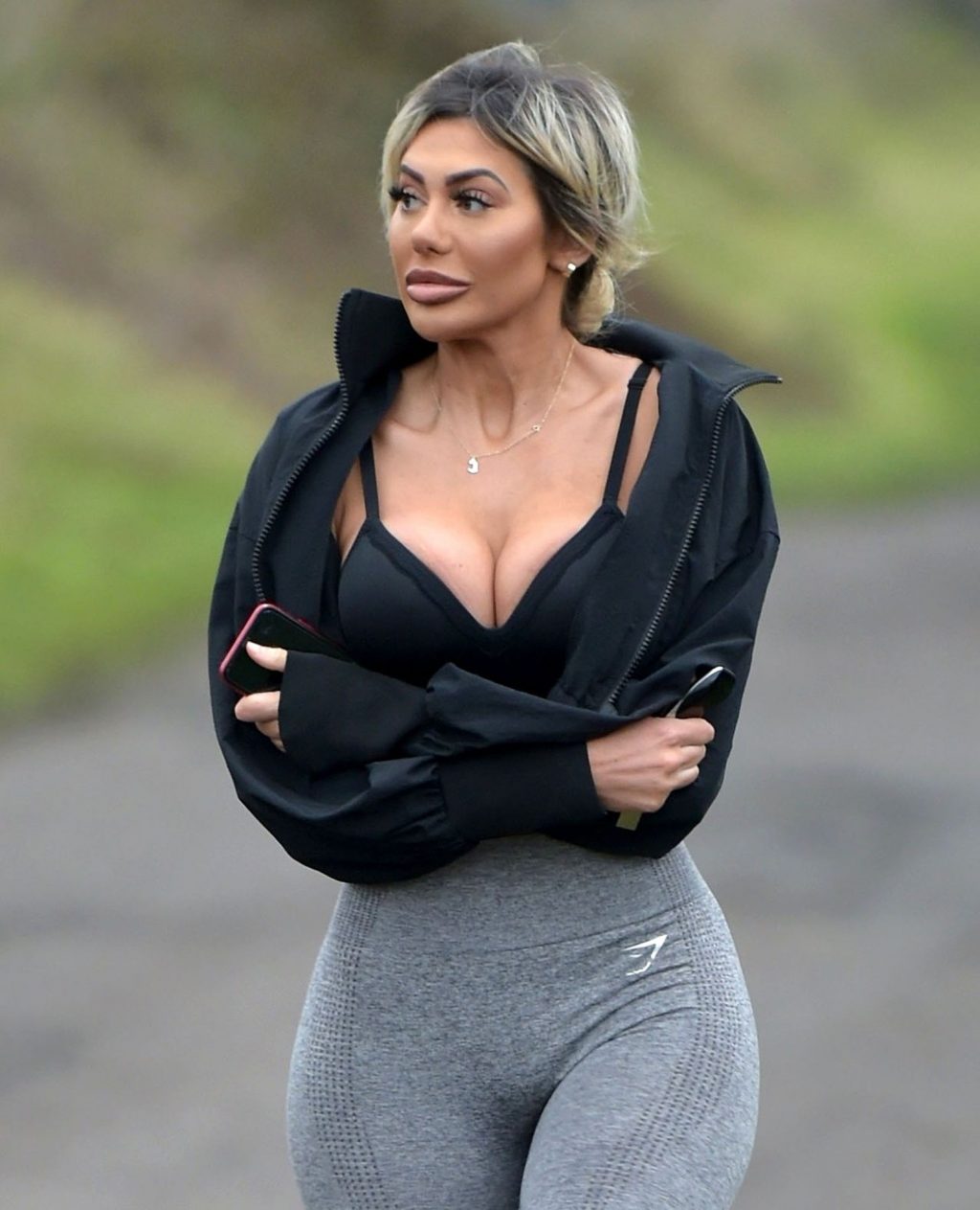 Пышногрудая Хлоя Ферри демонстрирует уменьшение груди во время прогулки с собакой в период локдауна.