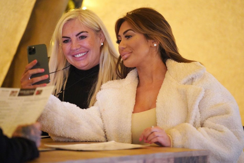 Звезда реалити-шоу была в компании своей матери Лиз и друзей, чтобы насладиться стейками в фешенебельном ресторане и сидела на улице под дождём под навесом рядом с дровяным камином, чтобы насладиться своей трапезой!