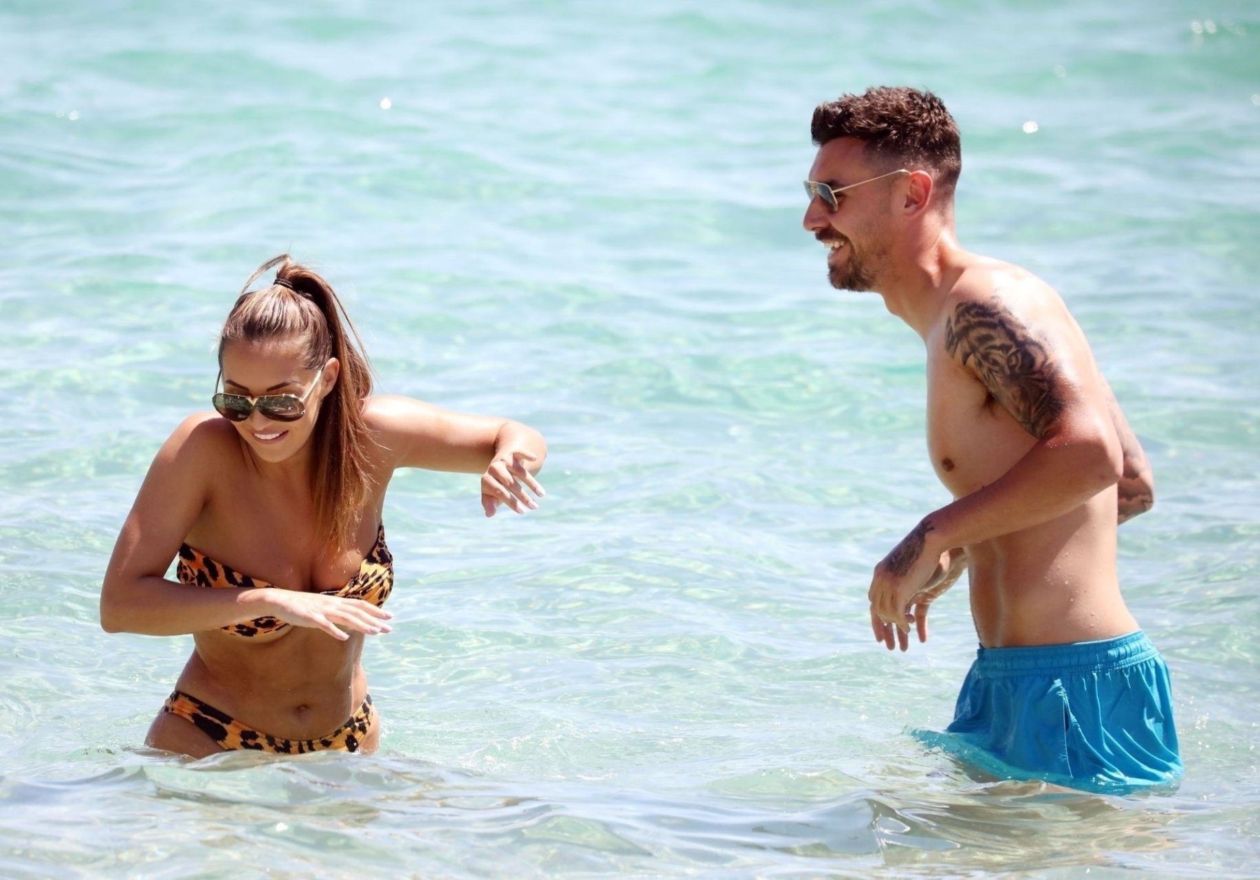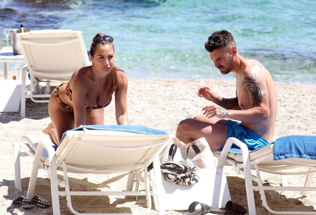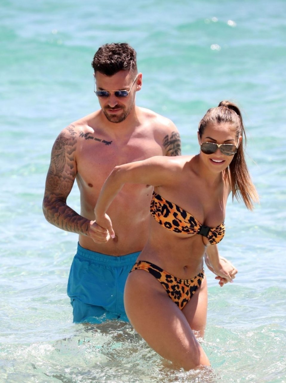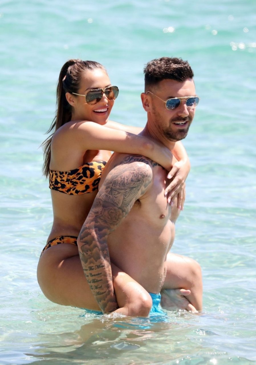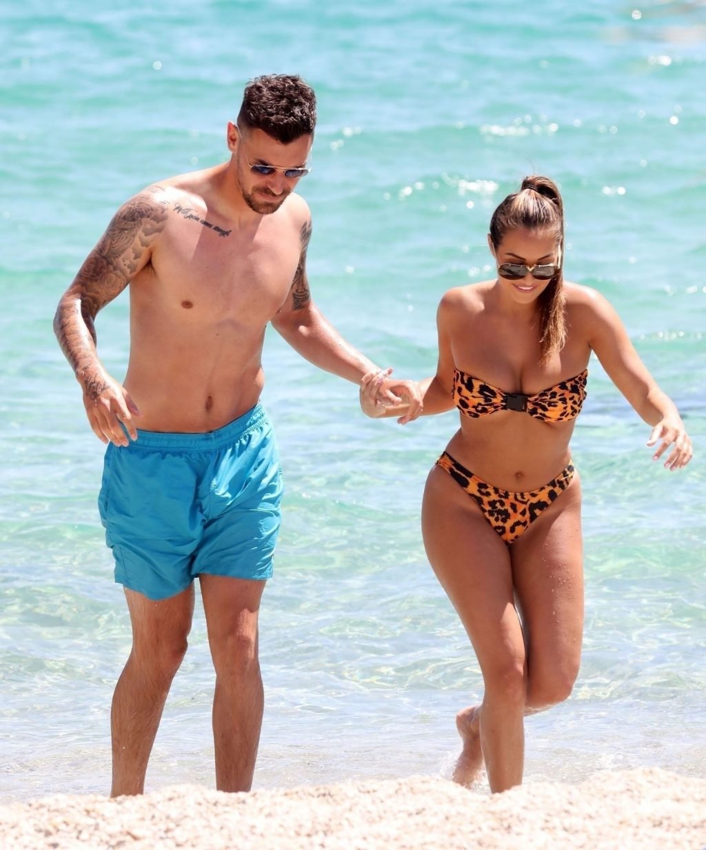 Бывшая звезда шоу “Celebrity Big Brother” Хлоя Гудман выглядит отлично в бикини с животным принтом во время отпуска с футболистом QPR Грантом Холлом на Миконосе, 19.05.2019.
