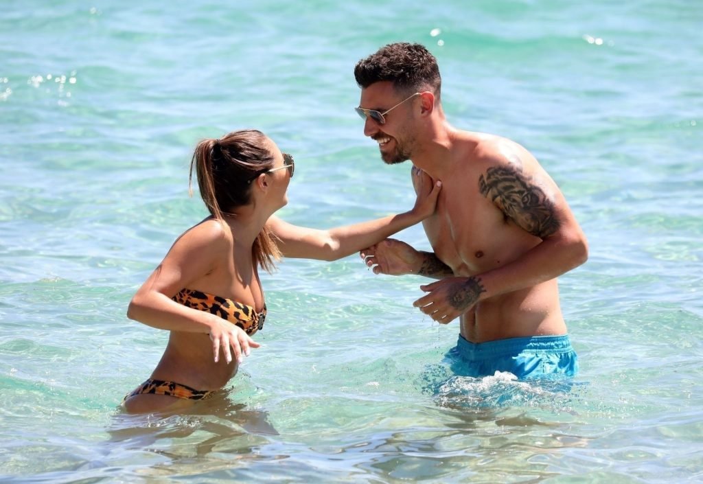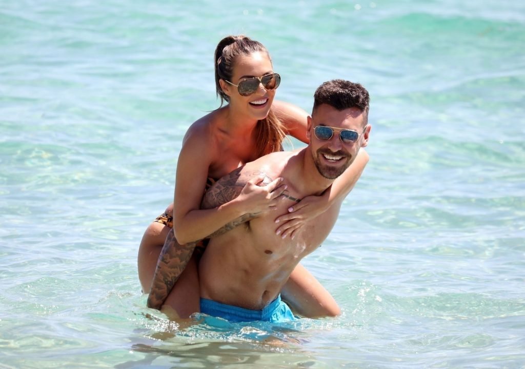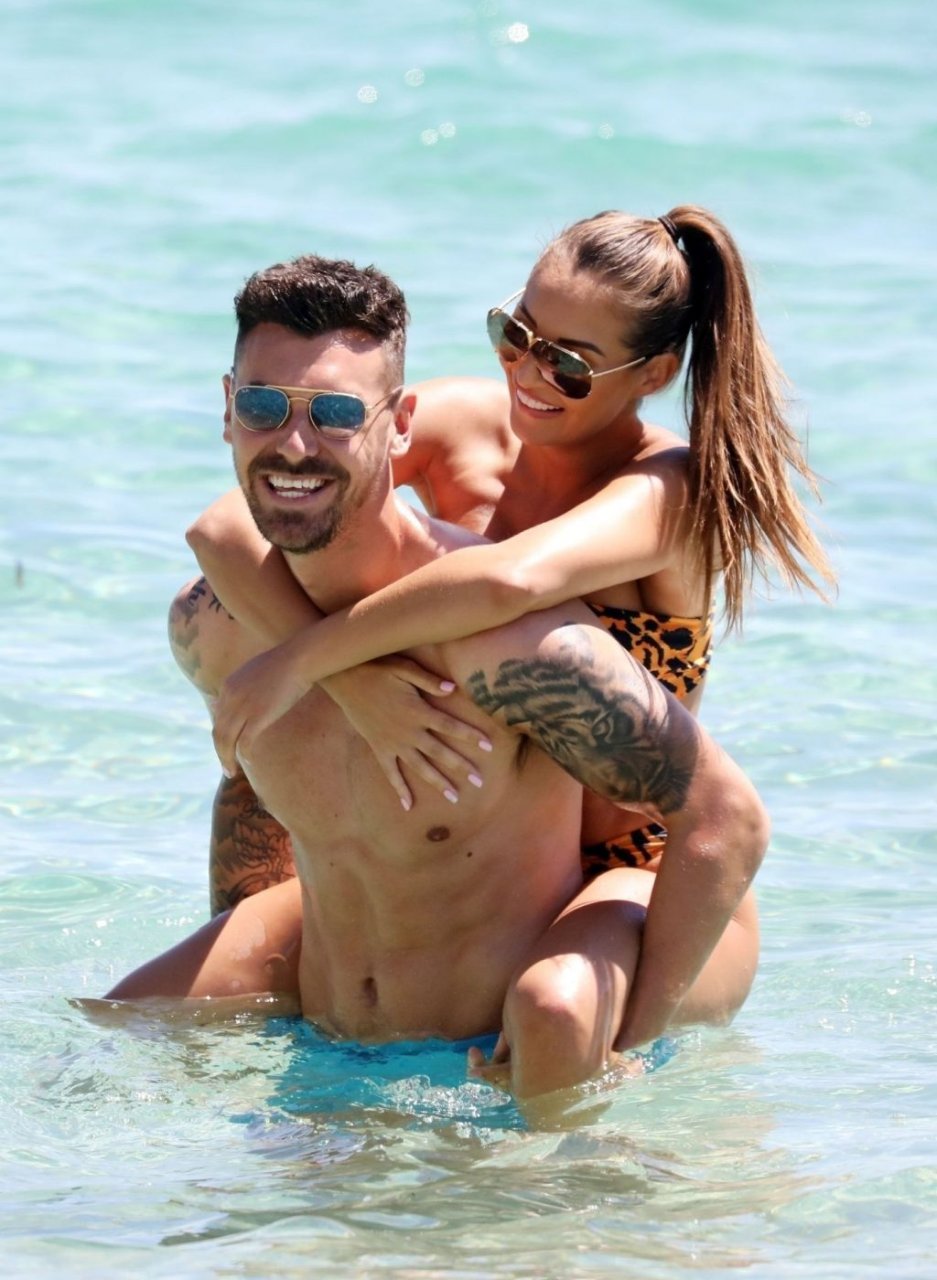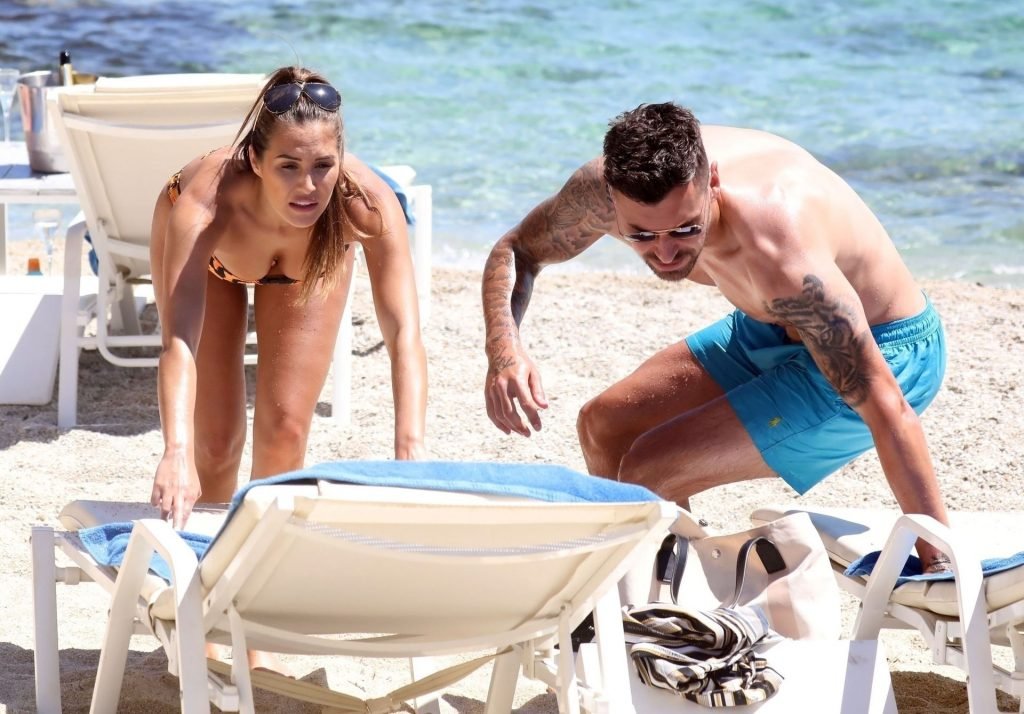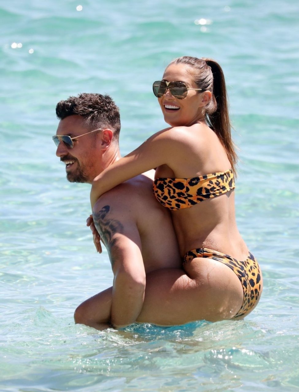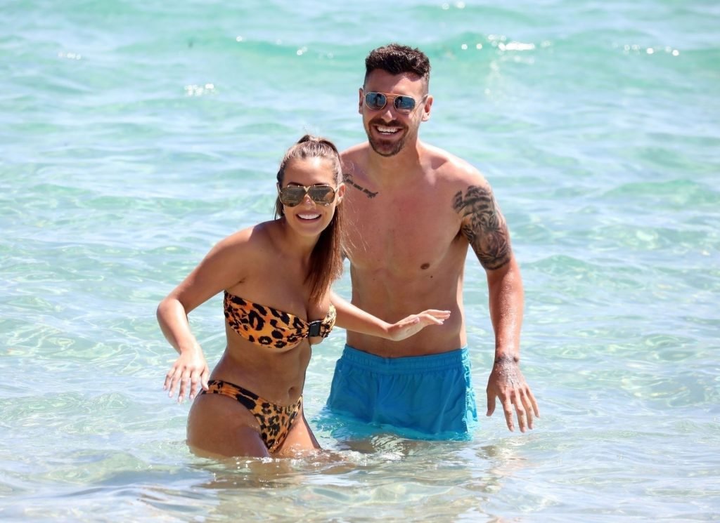 Бывшая звезда шоу “Celebrity Big Brother” Хлоя Гудман выглядит отлично в бикини с животным принтом во время отпуска с футболистом QPR Грантом Холлом на Миконосе, 19.05.2019.