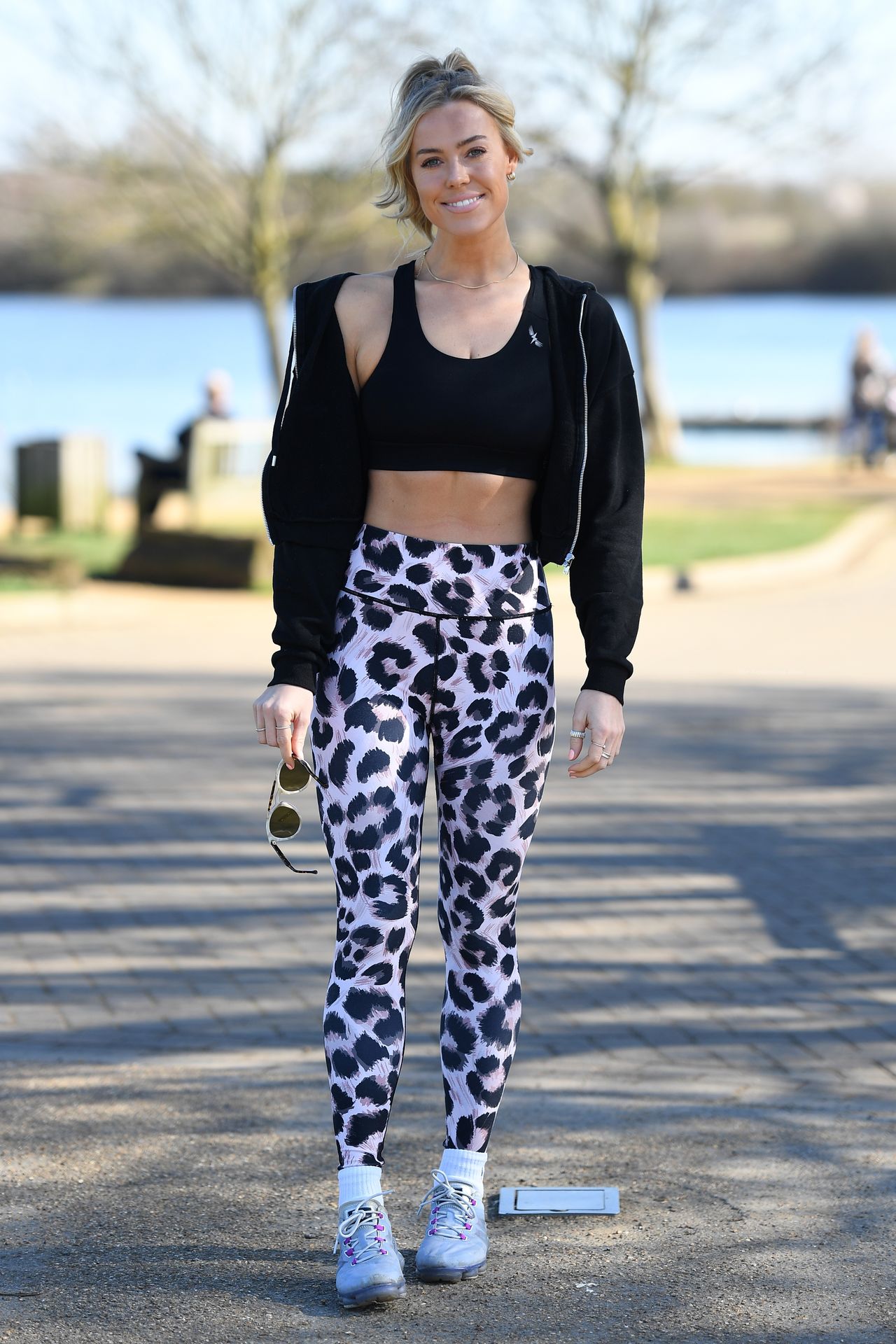Звезда реалити-шоу Хлоя Мидоуз замечена в спортивном топе и леггинсах во время съемок телешоу «The Only Way is Essex» в Эссексе, 03/09/2021.