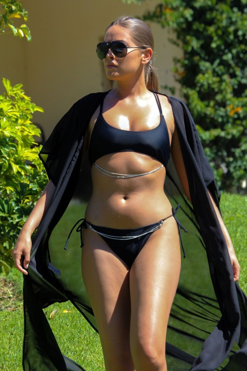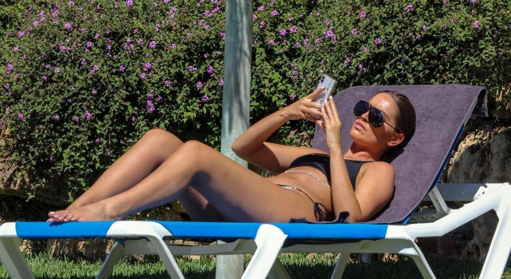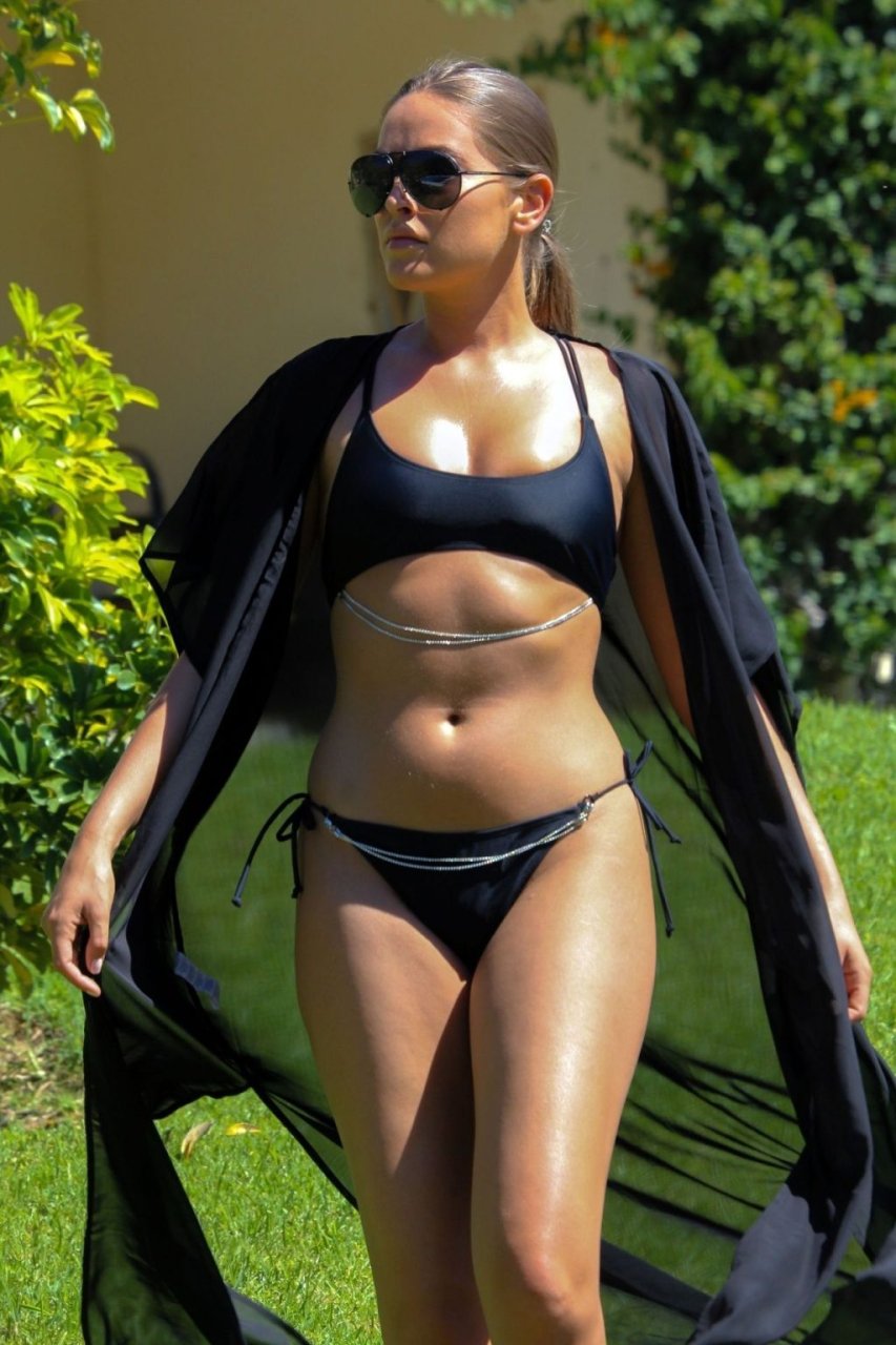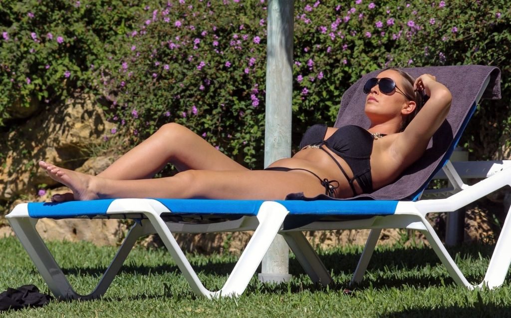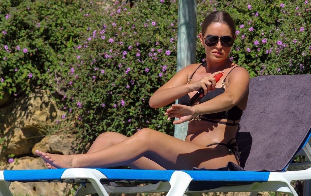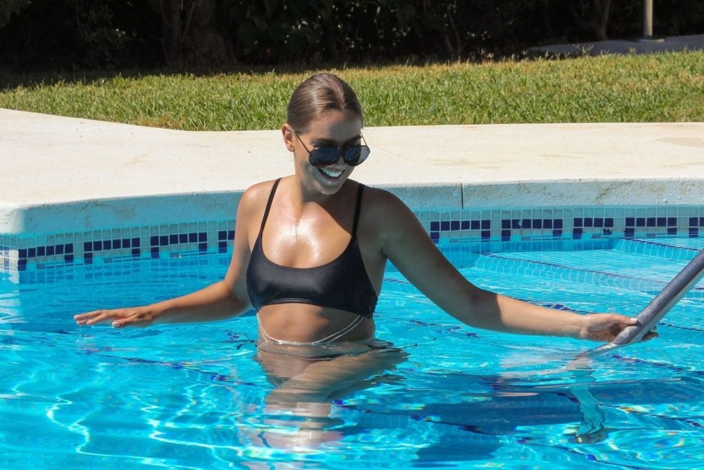 Хлоя была в сексуальном милом маленьком черном бикини, когда она блистала под жарким испанским солнцем, охлаждалась, окунувшись в бассейн, и наносила солнцезащитный спрей на уже загорелое тело.