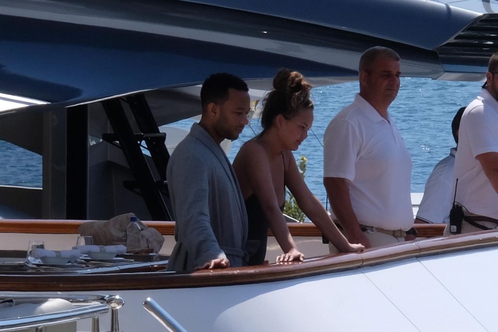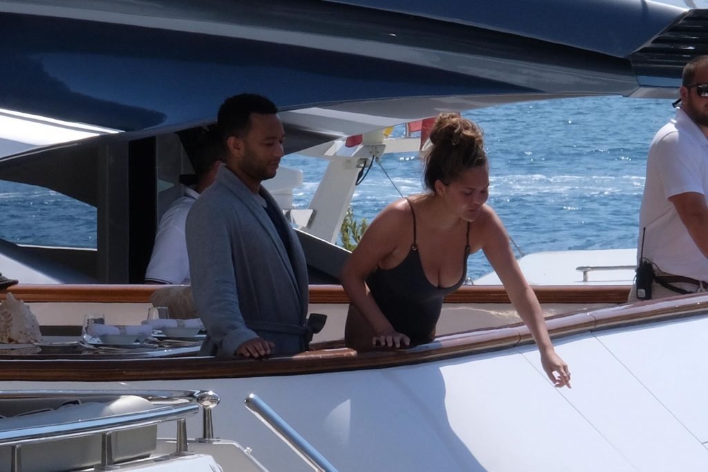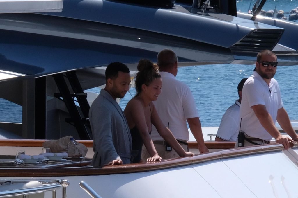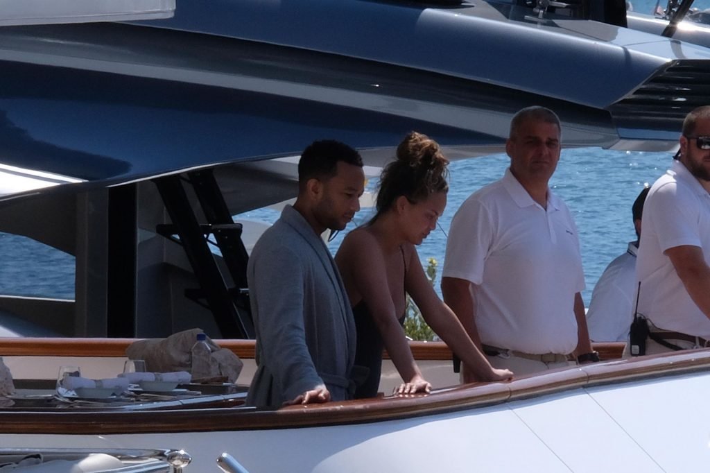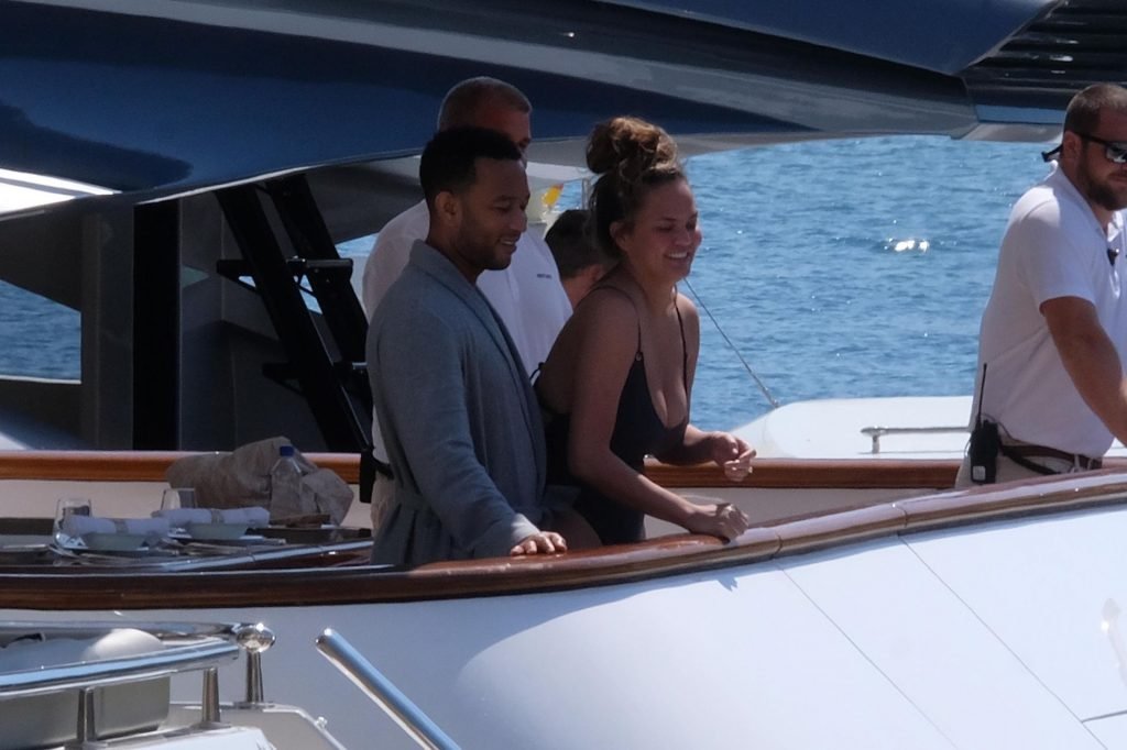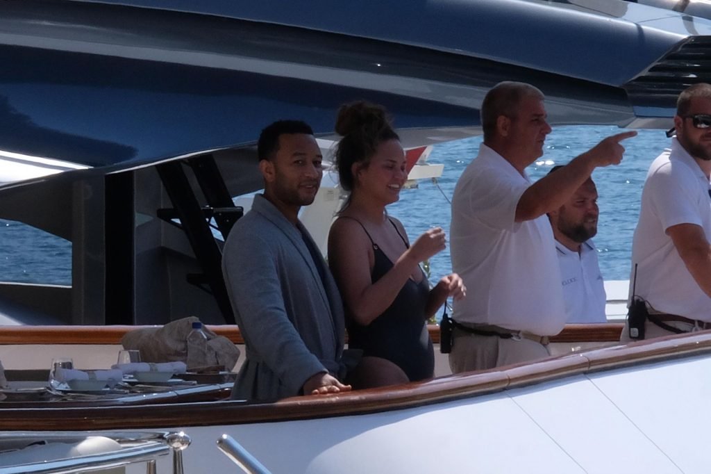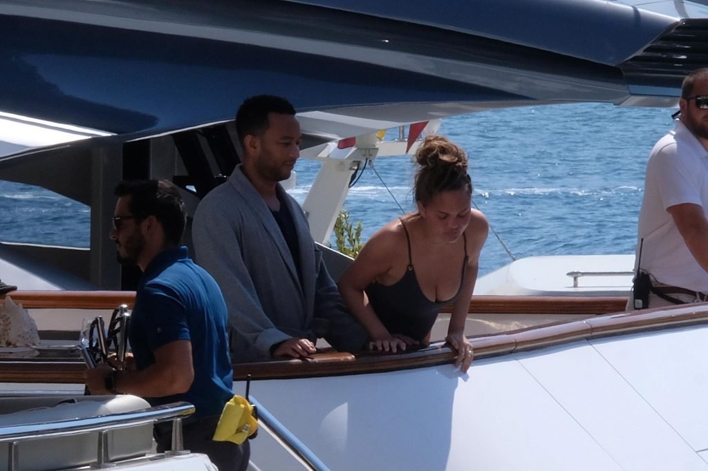 Американский соул-певец Джон Ледженд и его жена Крисси Тейген отдыхают на своей яхте во время солнечного отпуска в Портовенере, Италия, 07/04/2019.