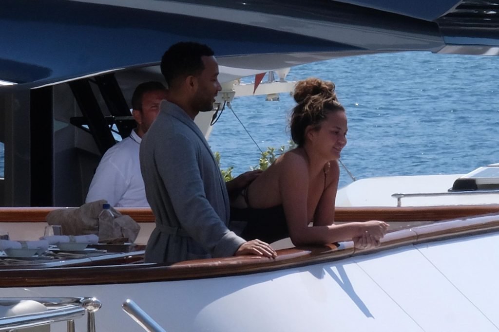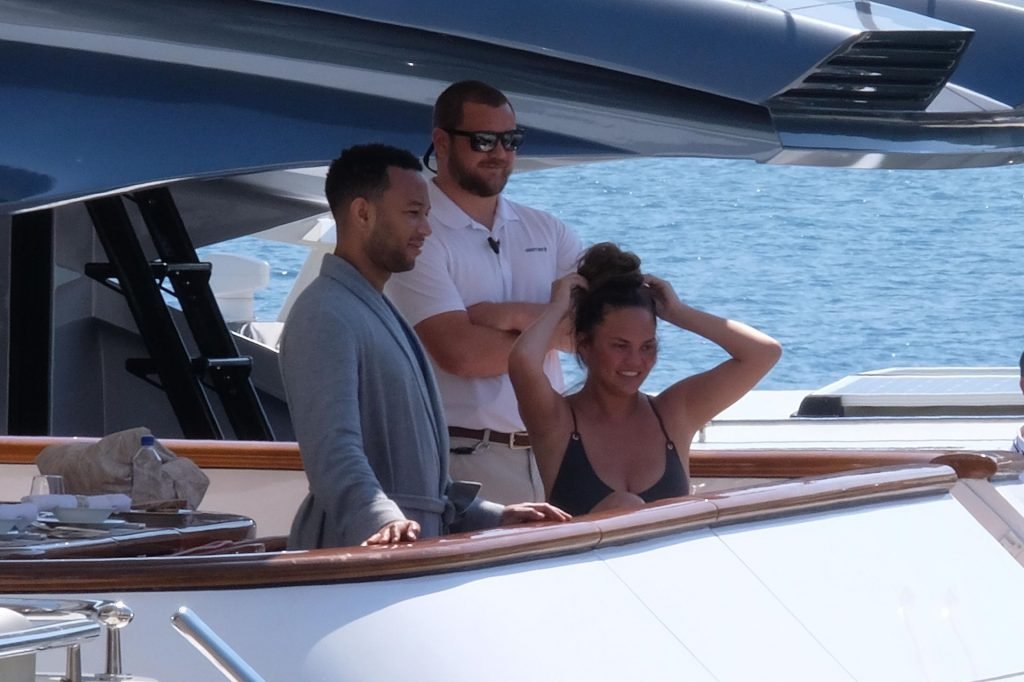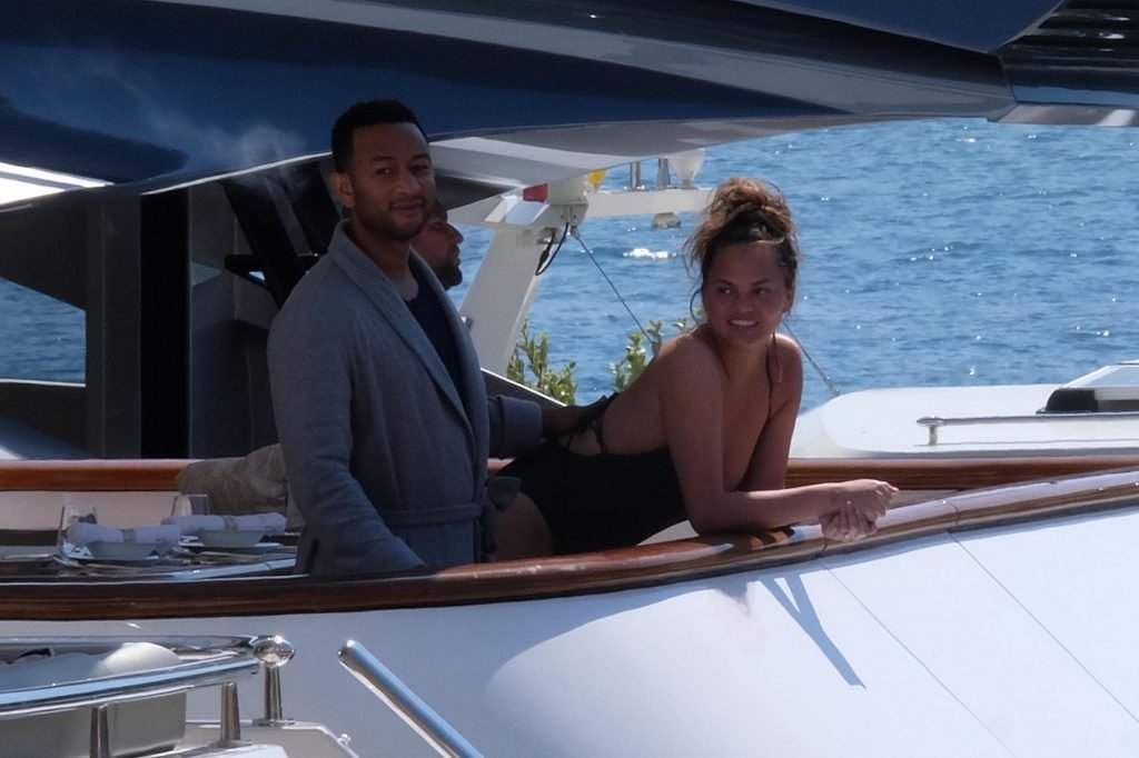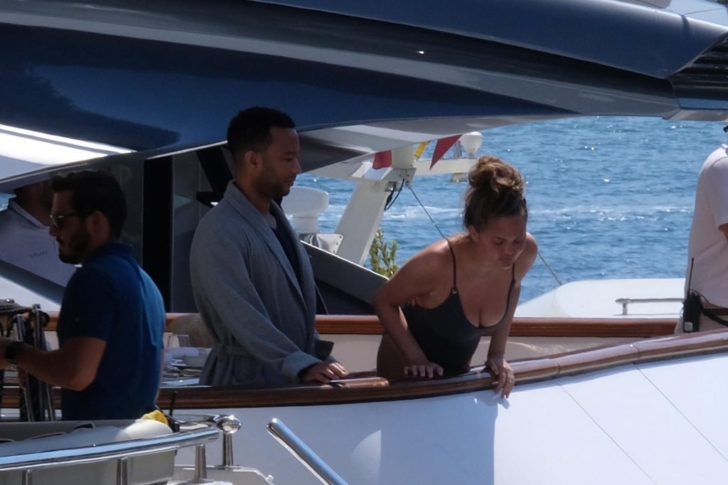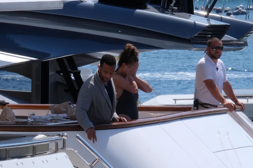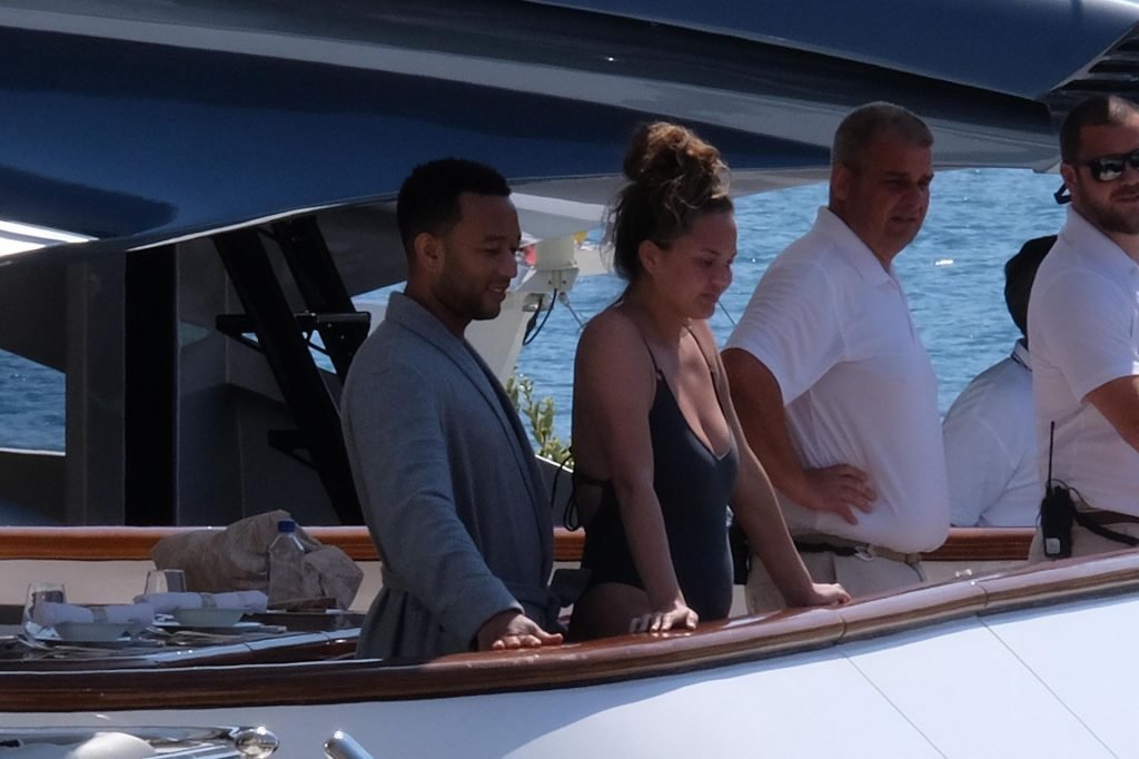 Американский соул-певец Джон Ледженд и его жена Крисси Тейген отдыхают на своей яхте во время солнечного отпуска в Портовенере, Италия, 07/04/2019.