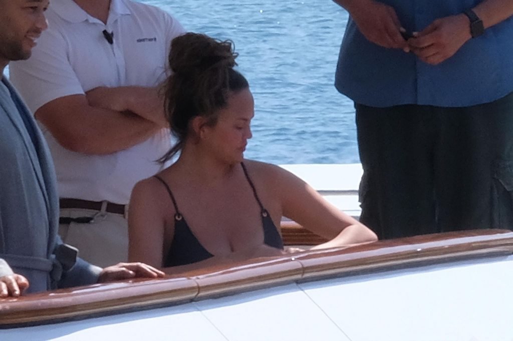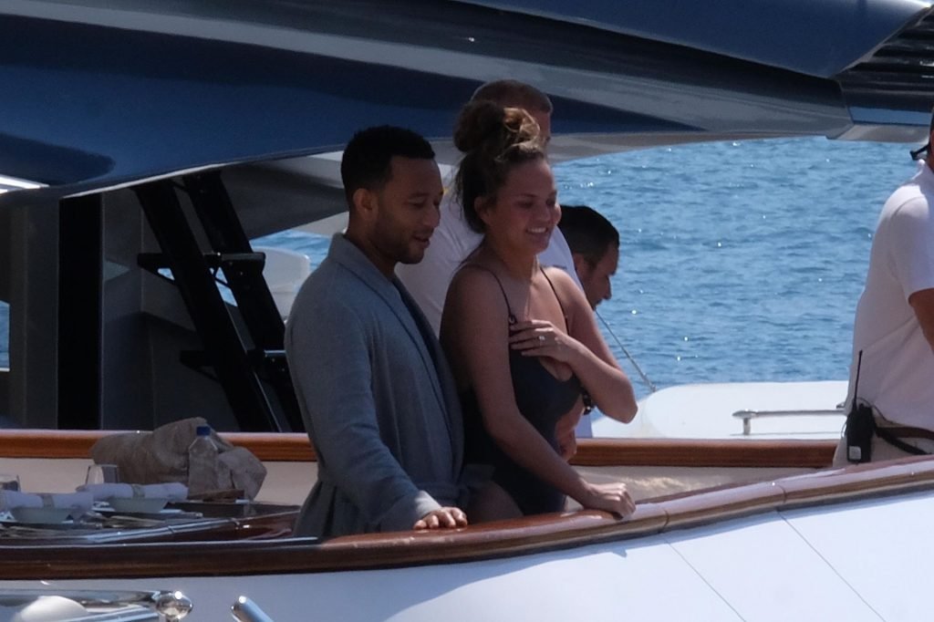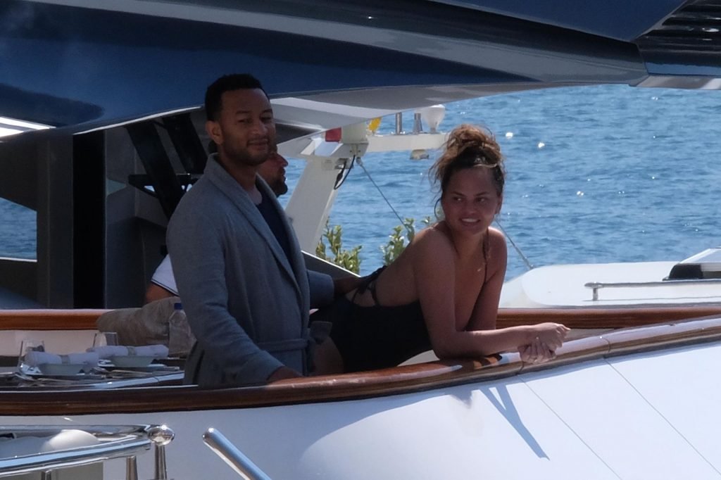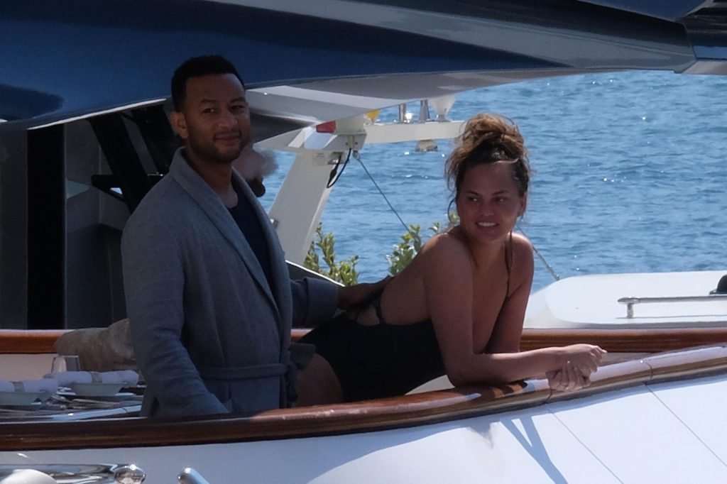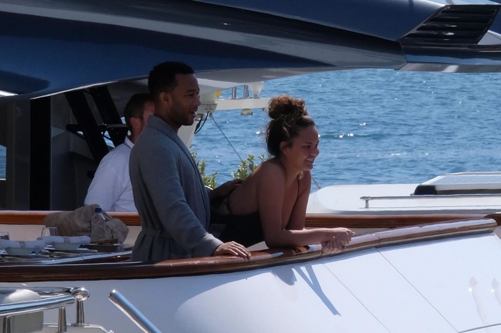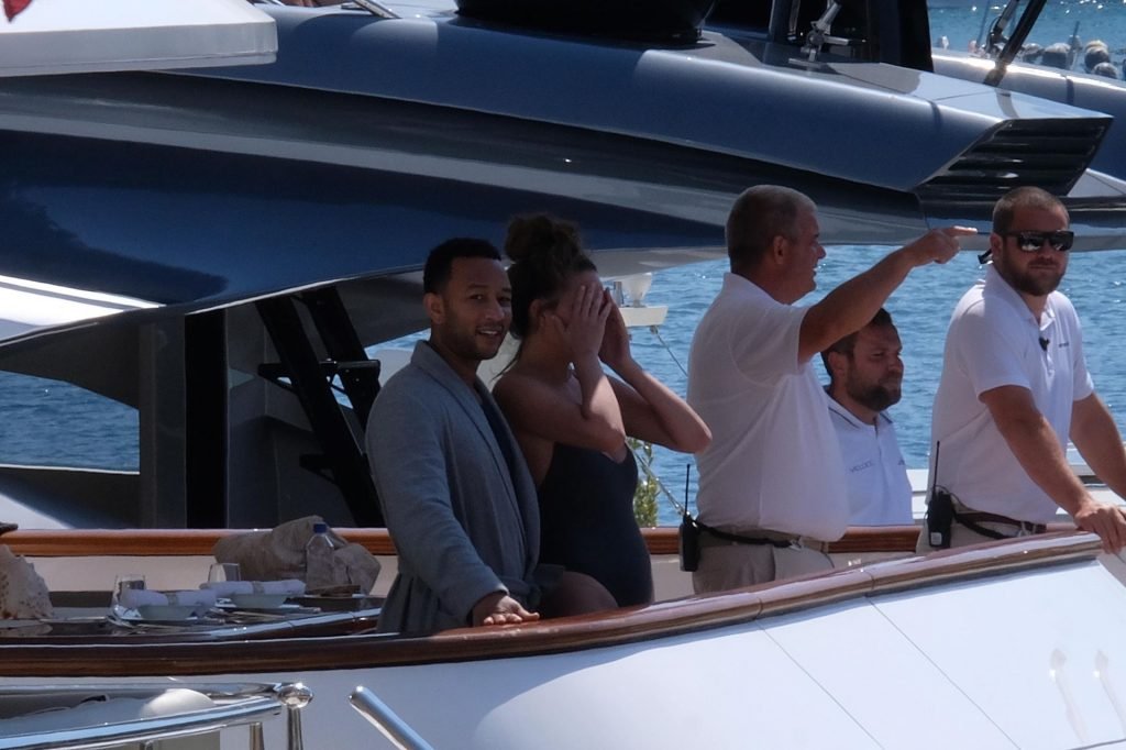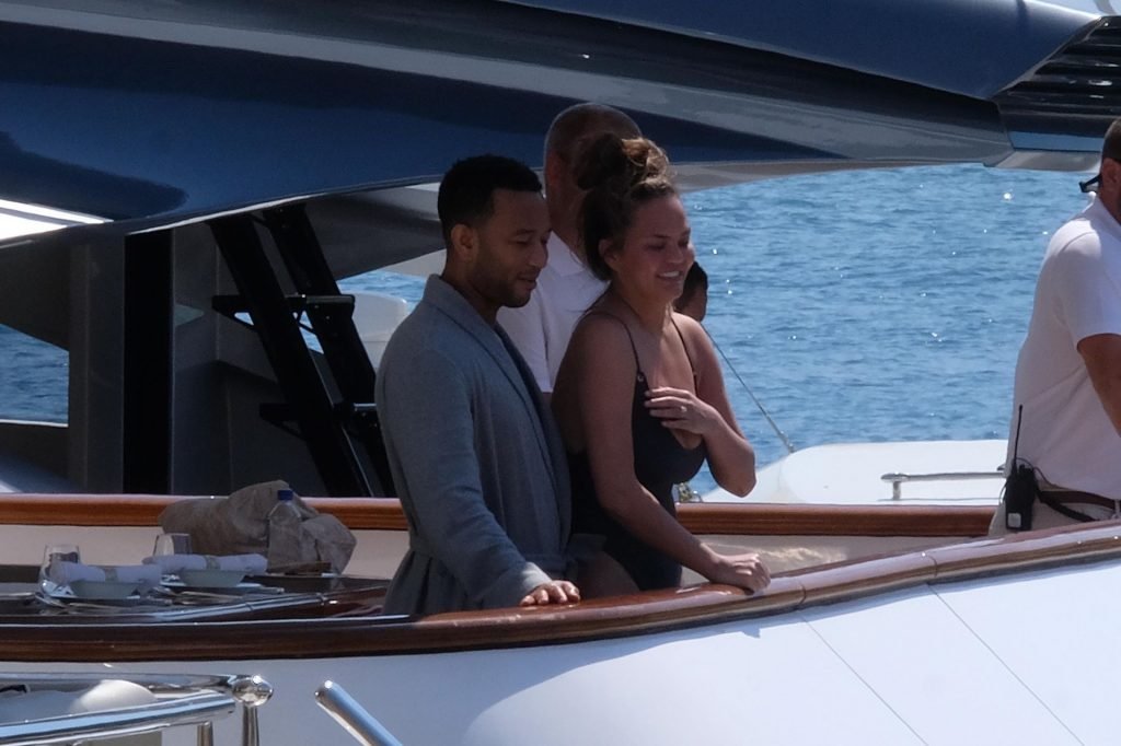 Американский соул-певец Джон Ледженд и его жена Крисси Тейген отдыхают на своей яхте во время солнечного отпуска в Портовенере, Италия, 07/04/2019.
