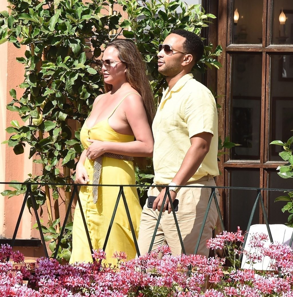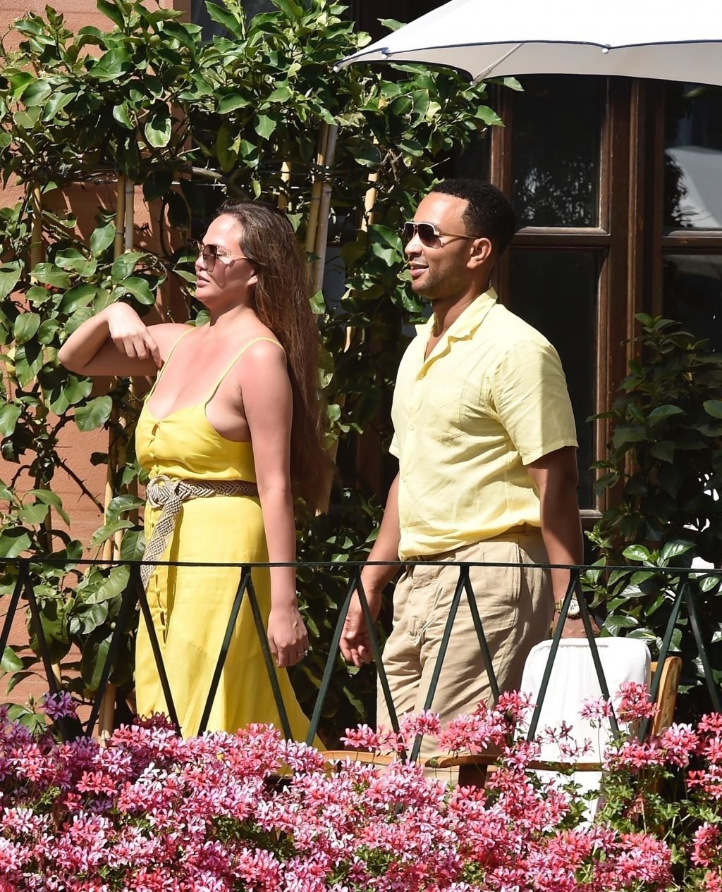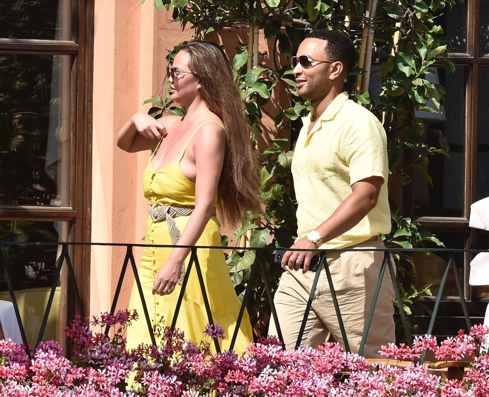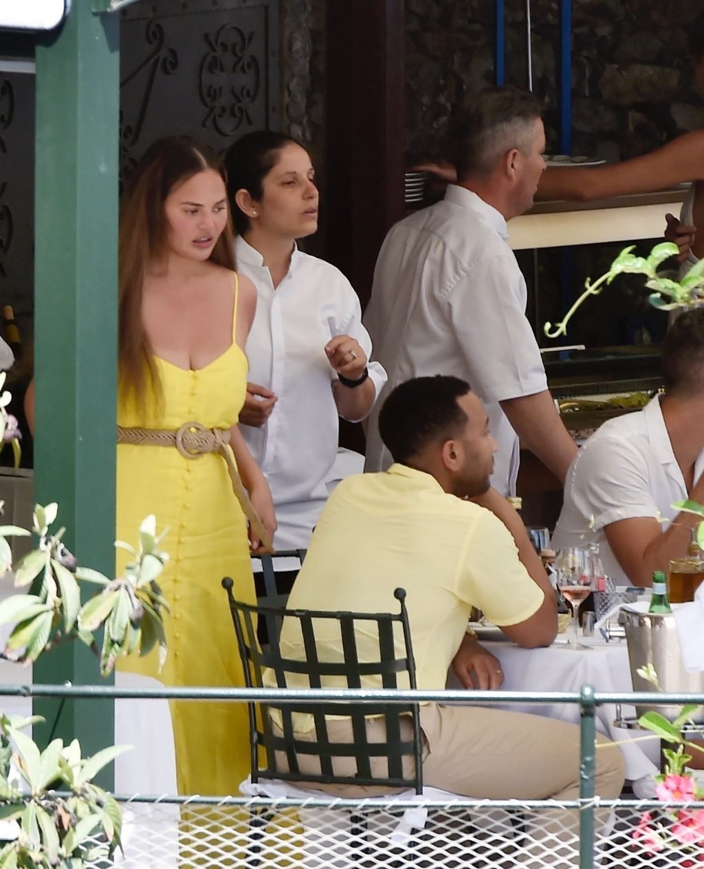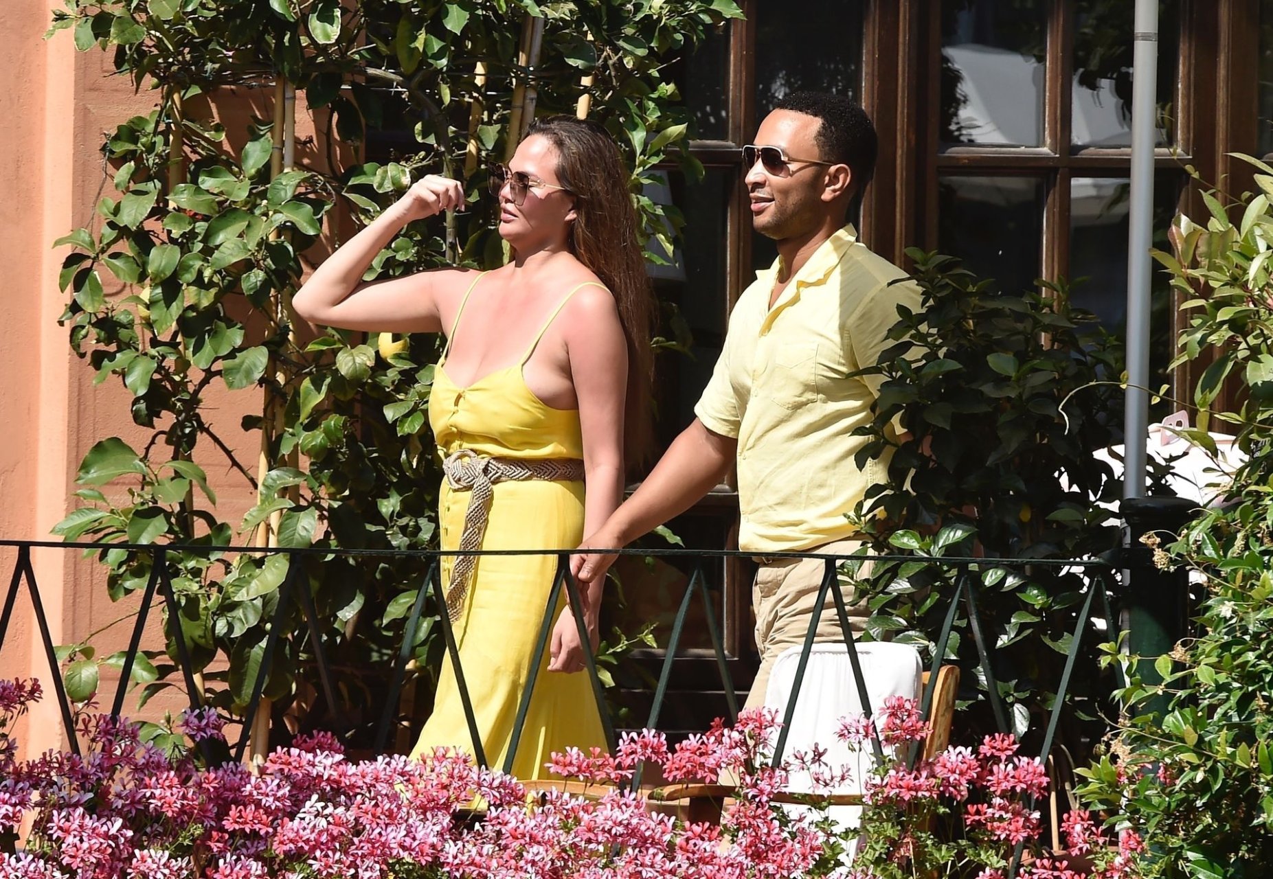 Джон Ледженд и его жена Крисси Тейген в режиме отпуска, обедают в итальянском городке Портофино, 07/02/2019.