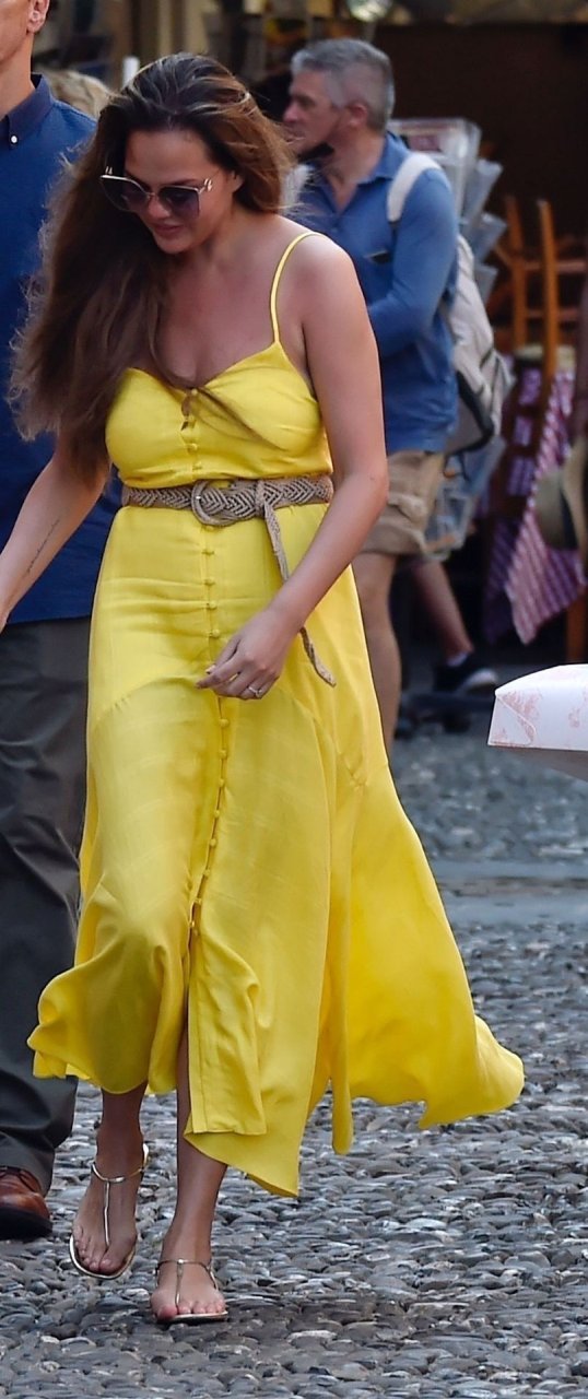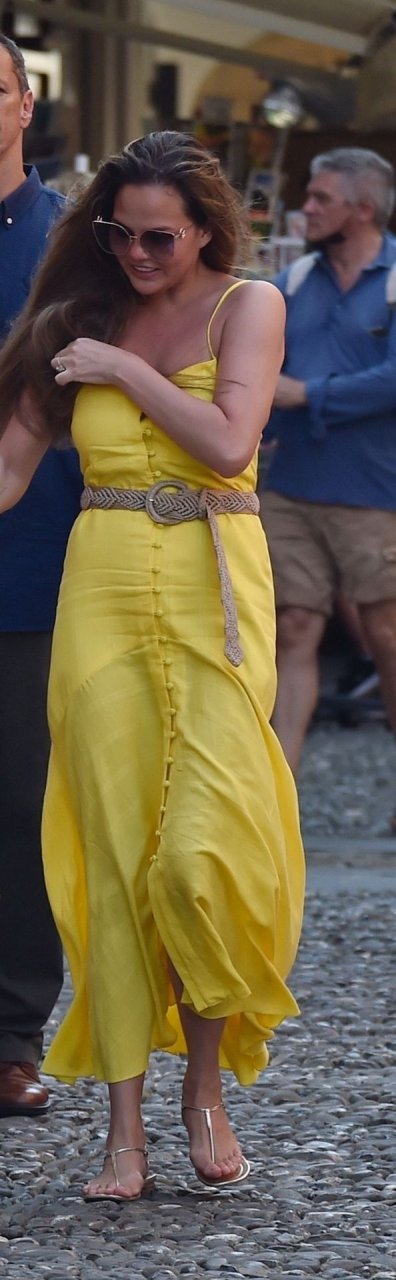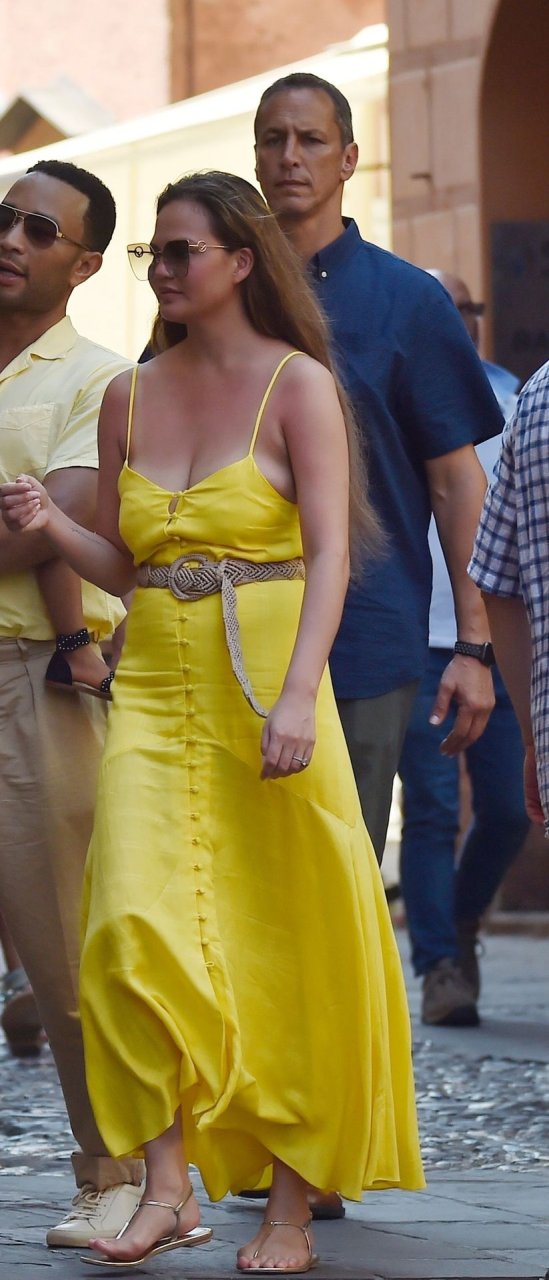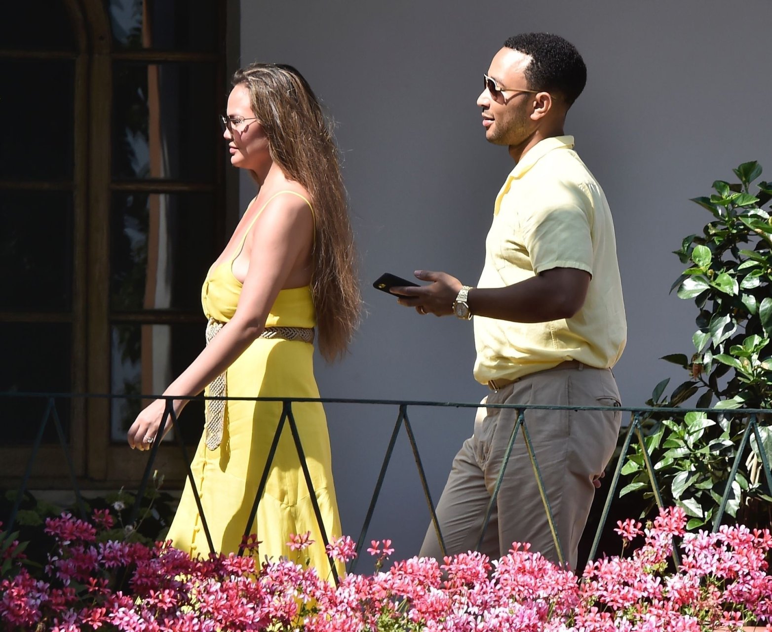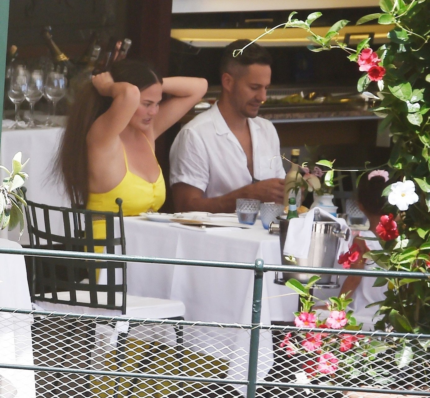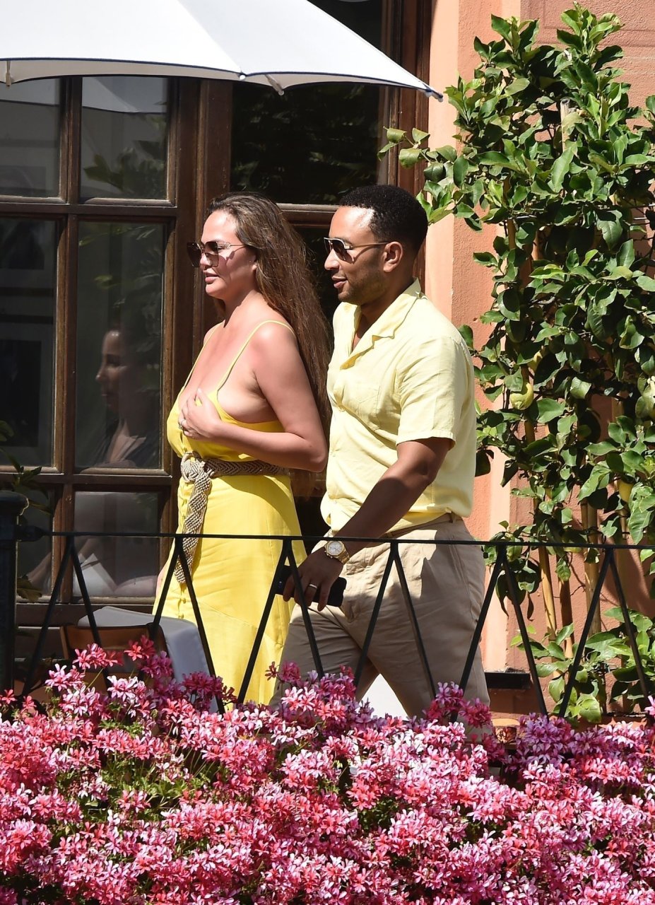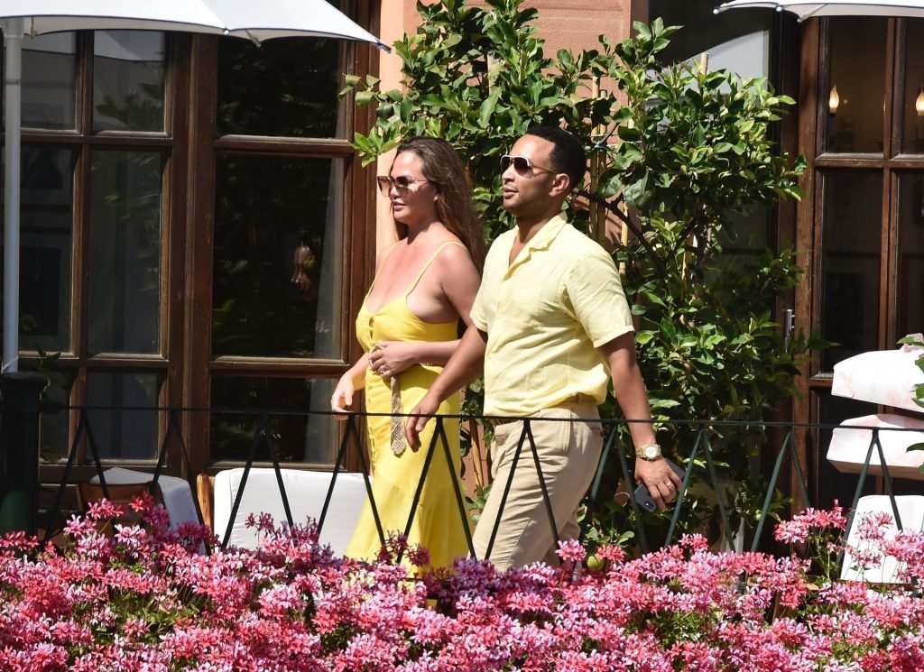 Джон Ледженд и его жена Крисси Тейген в режиме отпуска, обедают в итальянском городке Портофино, 07/02/2019.