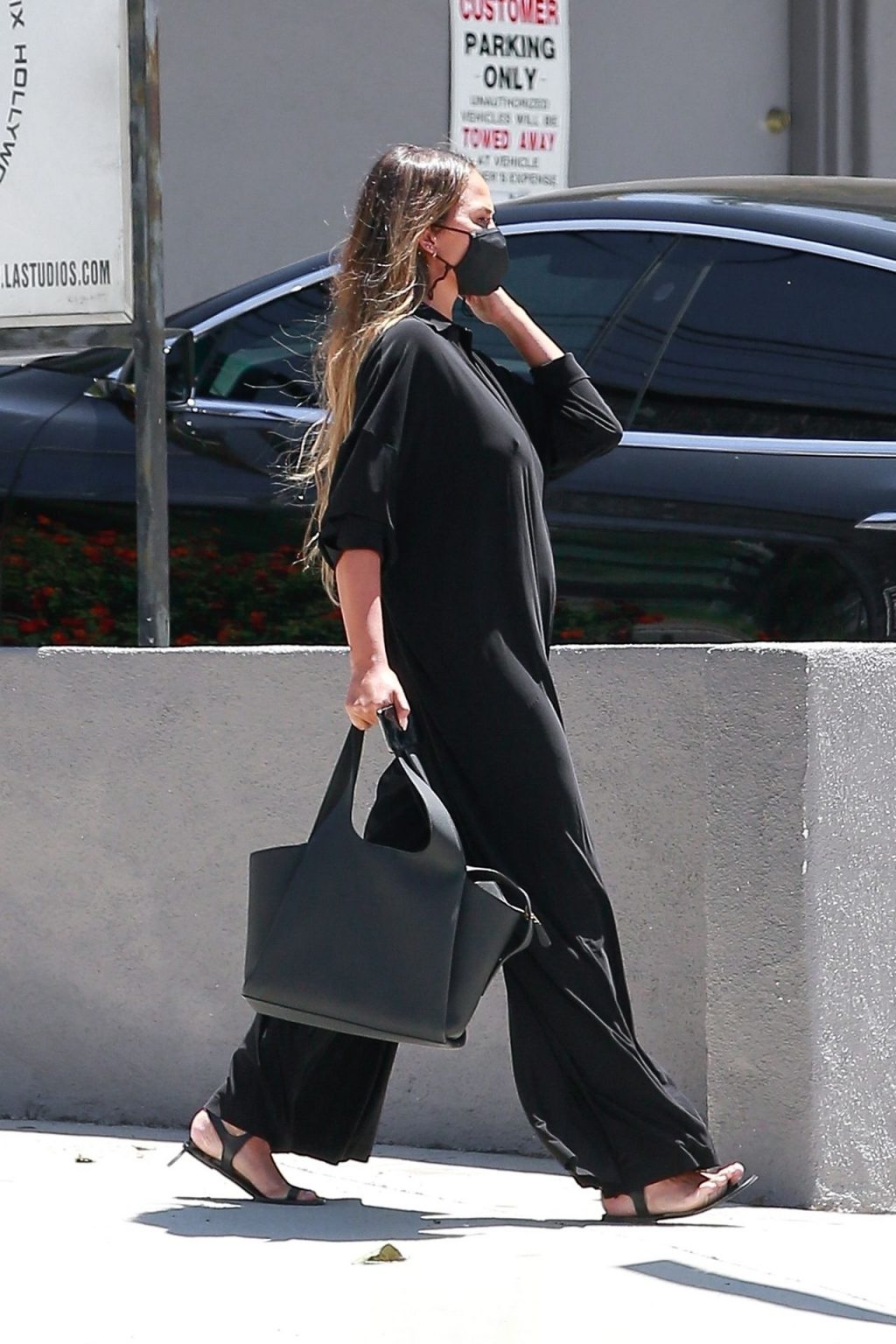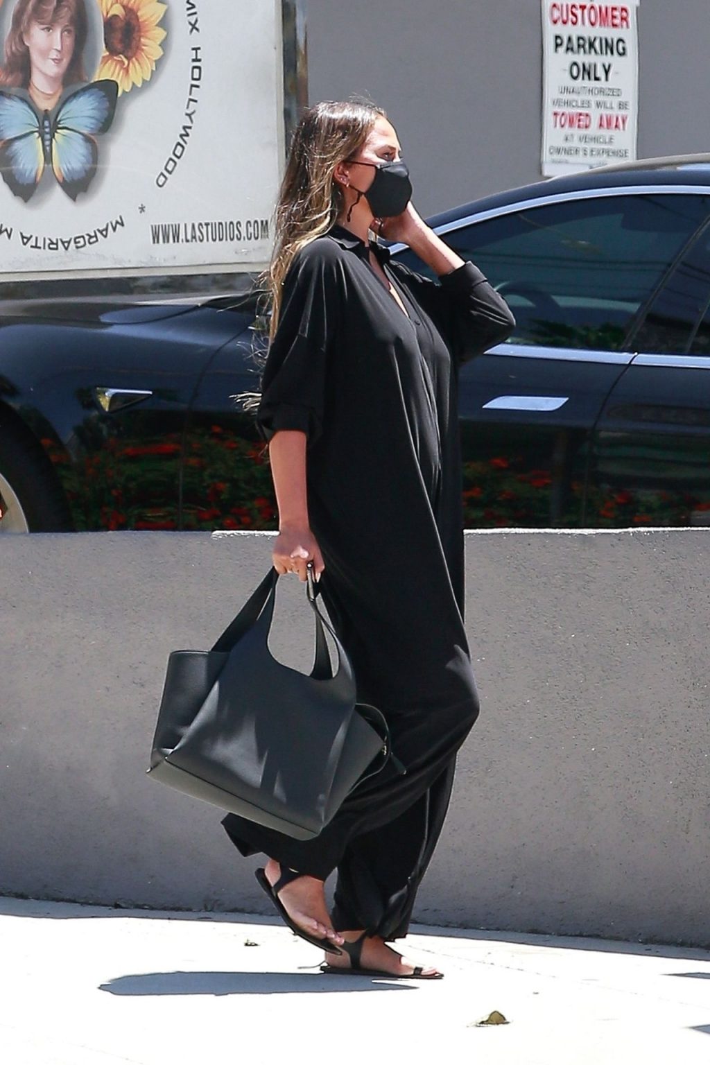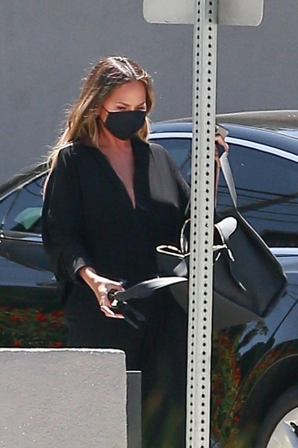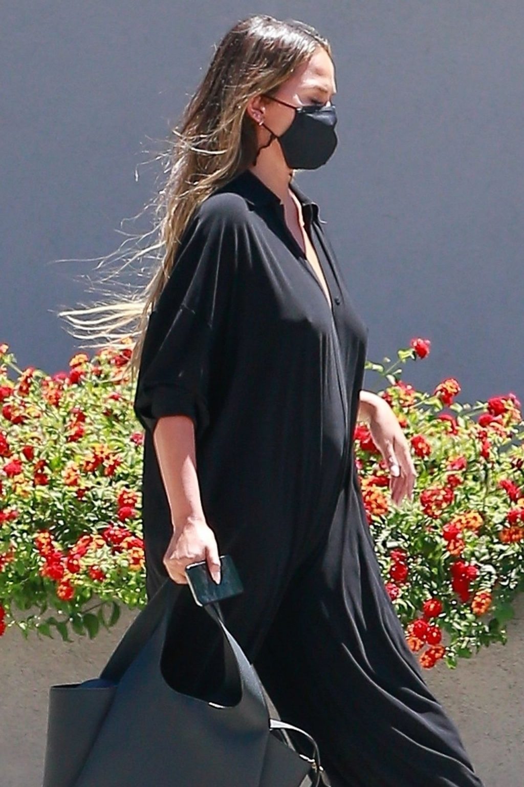 Крисси Тейген выглядит непринужденно в черном комбинезоне, выполняя несколько дел перед выходными в Лос-Анджелесе, 31.07.2020.