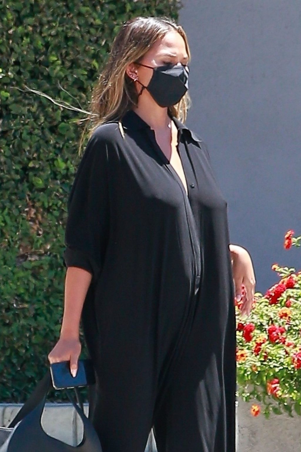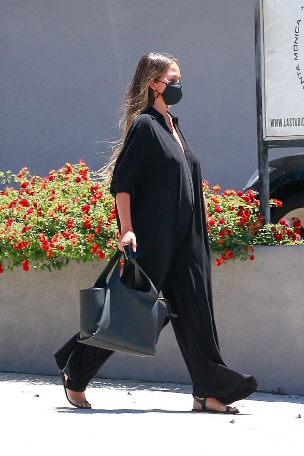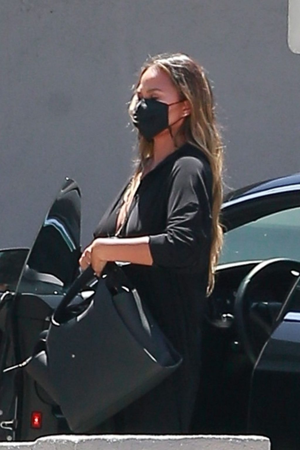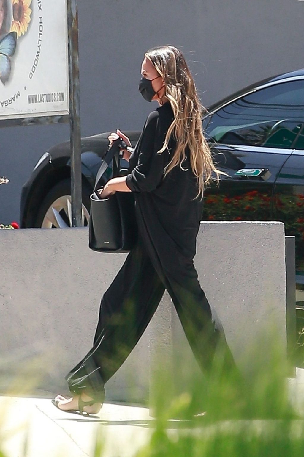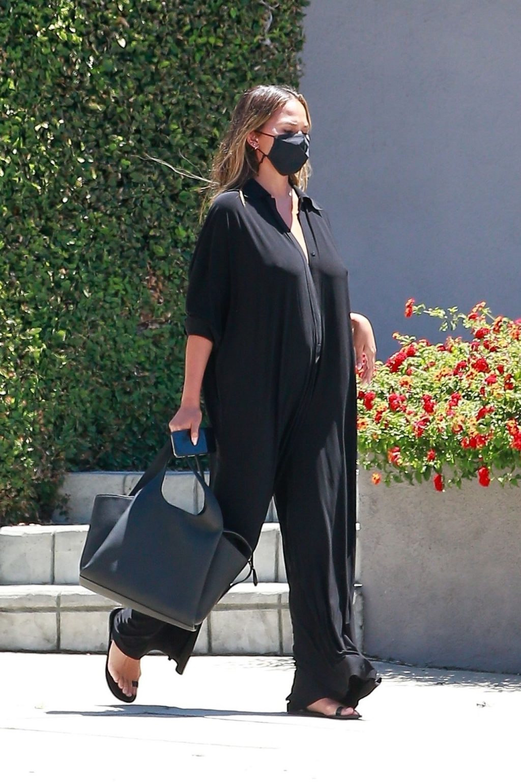 Крисси Тейген выглядит непринужденно в черном комбинезоне, выполняя несколько дел перед выходными в Лос-Анджелесе, 31.07.2020.