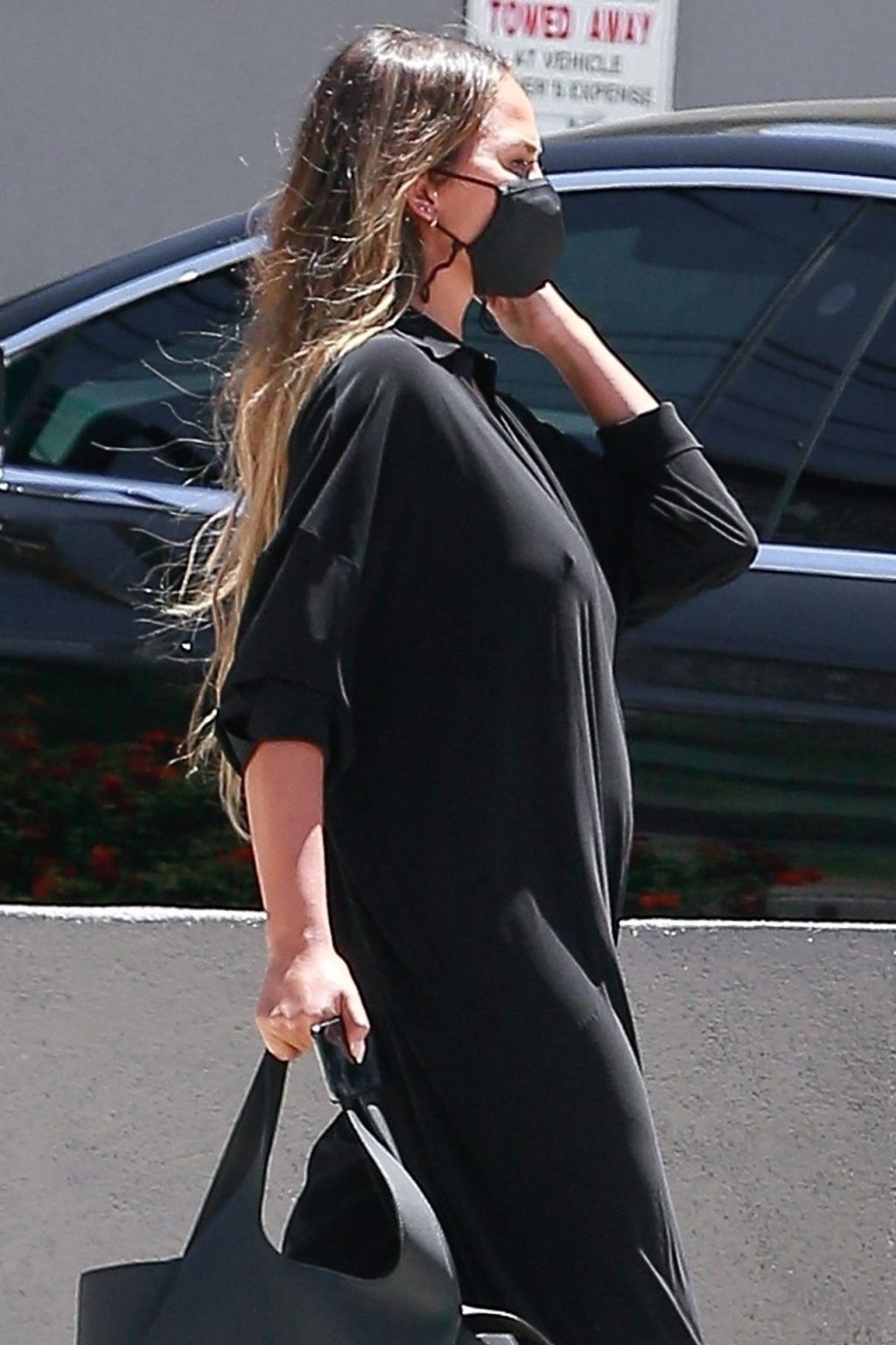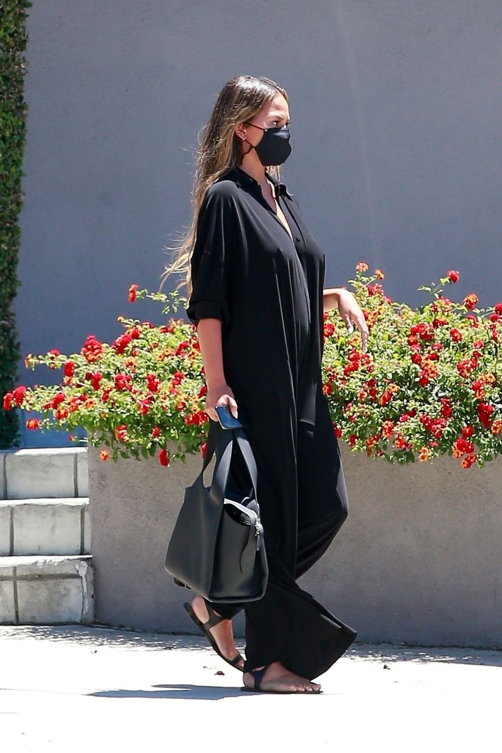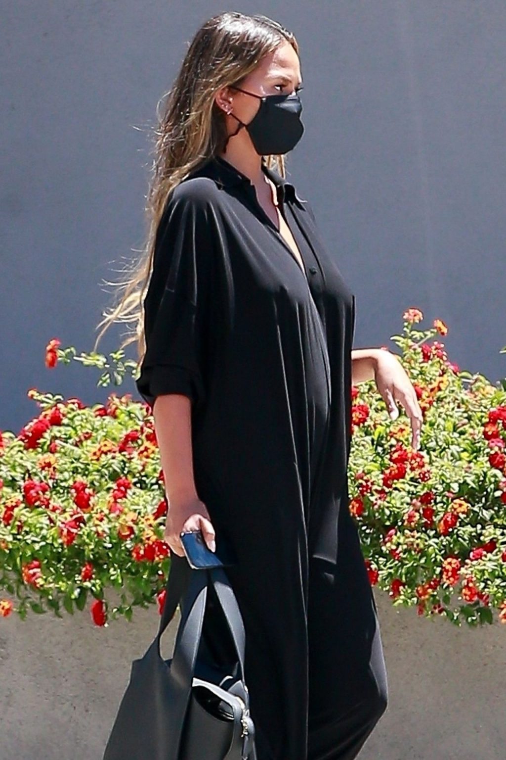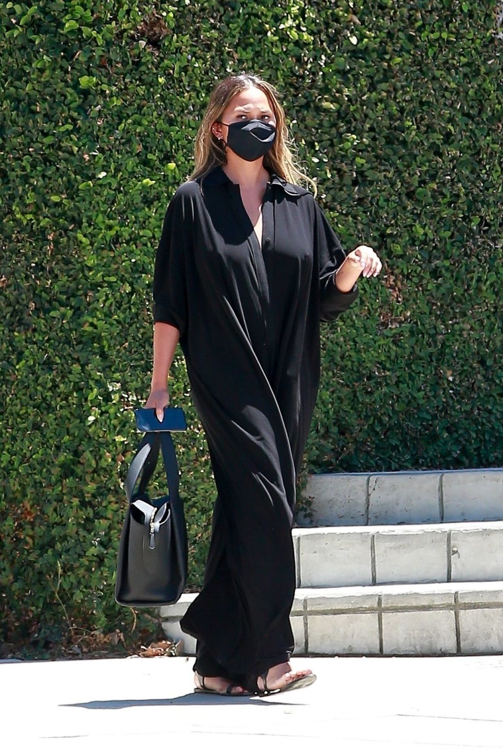 Крисси Тейген выглядит непринужденно в черном комбинезоне, выполняя несколько дел перед выходными в Лос-Анджелесе, 31.07.2020.