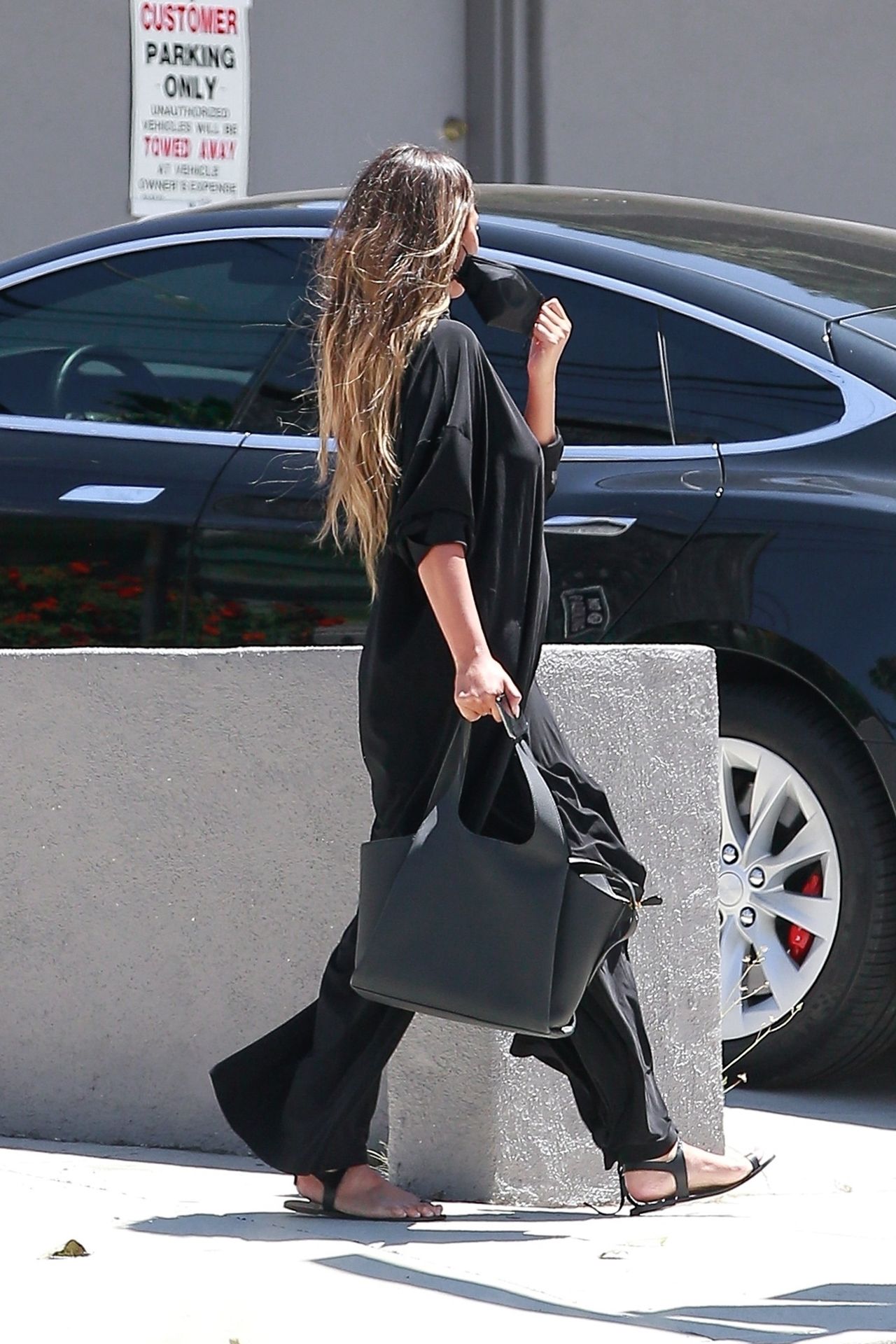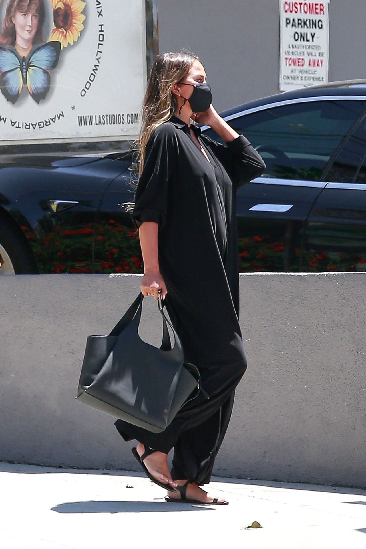 Крисси Тейген выглядит непринужденно в черном комбинезоне, выполняя несколько дел перед выходными в Лос-Анджелесе, 31.07.2020.