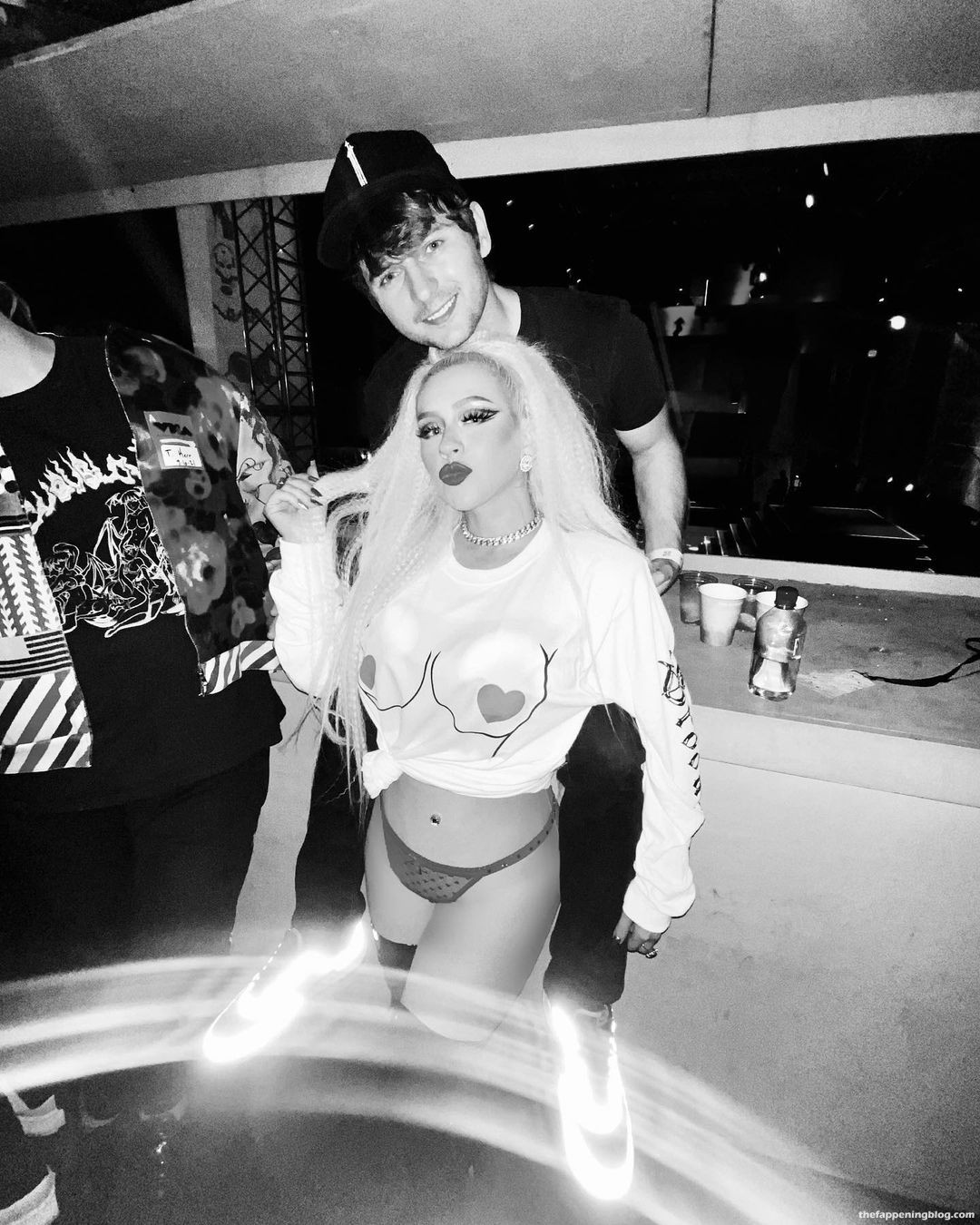 Певица Кристина Агилера демонстрирует свой костюм “груди” во время подготовки к концерту и выступления на сцене – Instagram, 17.09.2021.