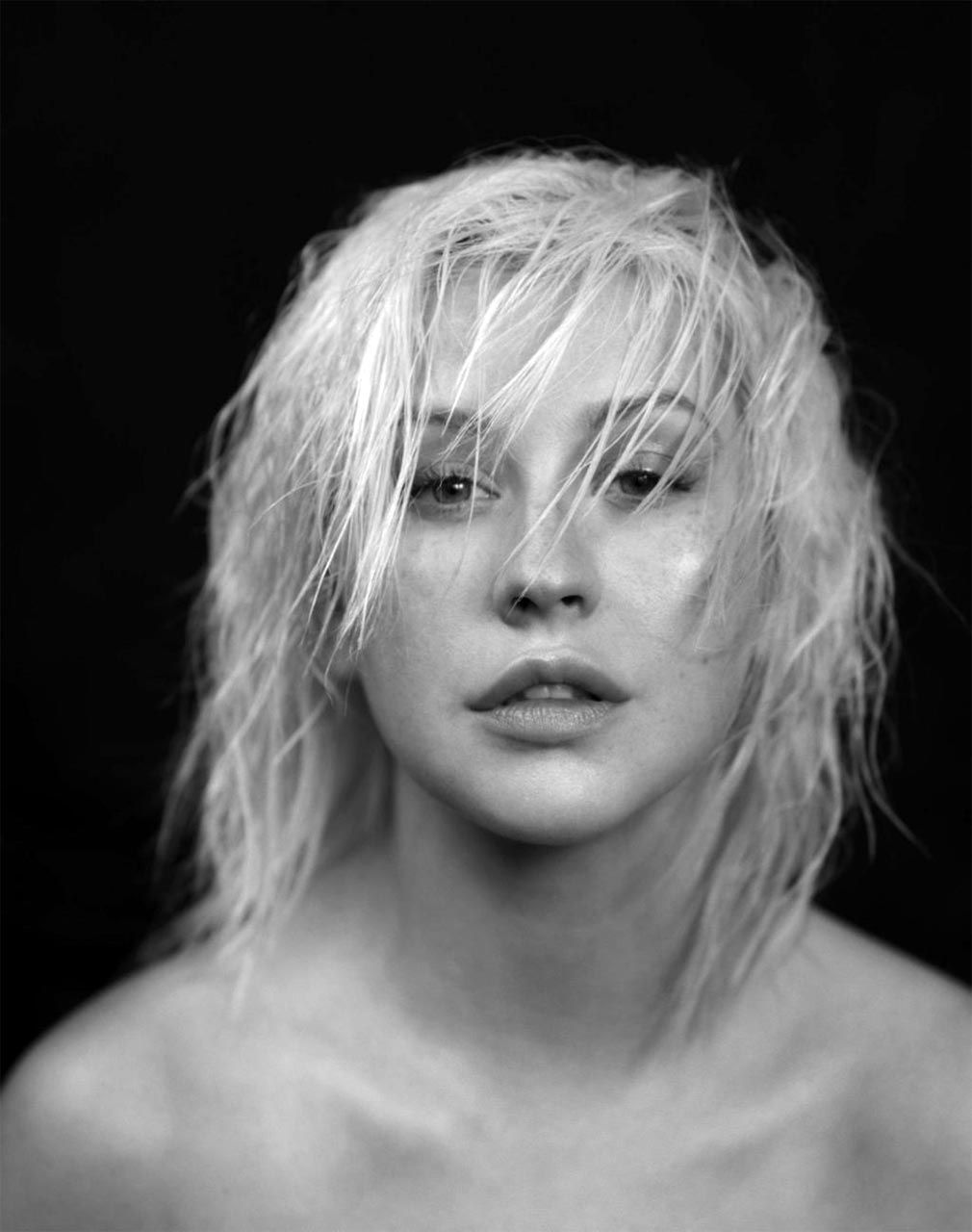 Here is Christina Aguilera nude again. In this photoshoot, she promotes an increasingly provocative image of herself. Showing her bare breasts, and in that way, she shows sexuality that reflected her personality. Watch Aguilera’s boobs and nipples with nipple rings in the MTV Diary TV show. This petite but dynamite beauty is a real sex bomb, with platinum blonde hair and bright red lipstick. For that reason, she has many sexy nicknames: X-Tina, Baby Jane, Candy, Madam X. In this video, Aguilera is doing a photoshoot and posing topless with slight blur marks covering her pointed piercing nipples. Enjoy watching Christina’s juicy boobs!
