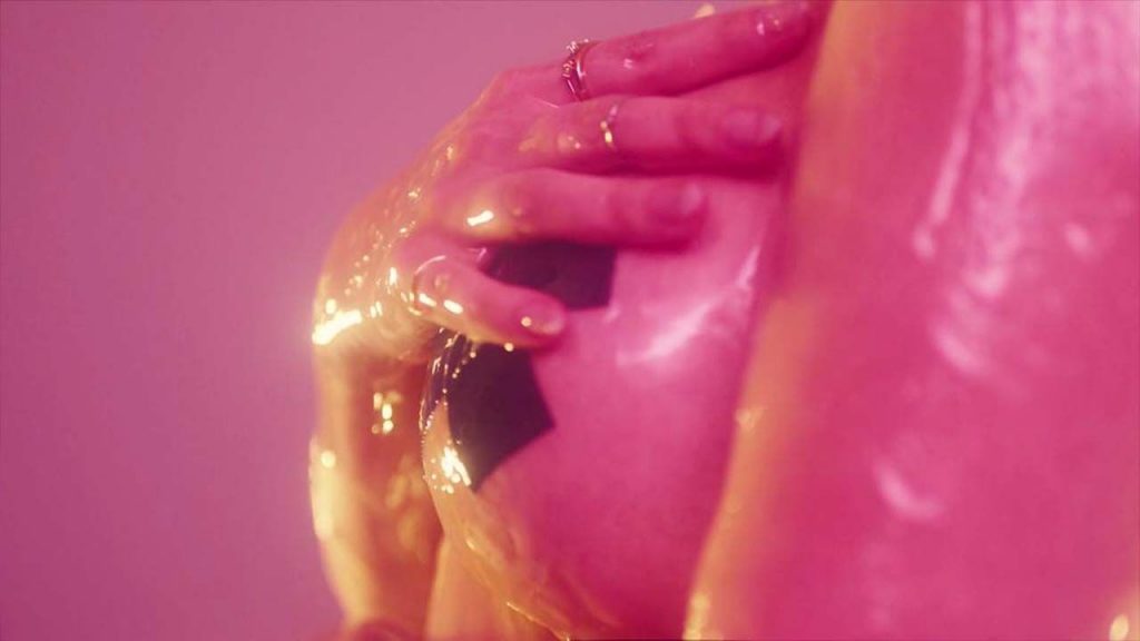 Check out the new official video for the song ‘Accelerate’. The famous blonde singer Christina Aguilera’s nude tits are the most important thing! Xtina showed she’s still sexy and wild by giving us her naked tits, nipples covered with black plastic self-adhesive. And something pink sticky, and sweet! There’s her tongue action while she’s licking some milk from the glass and much more.