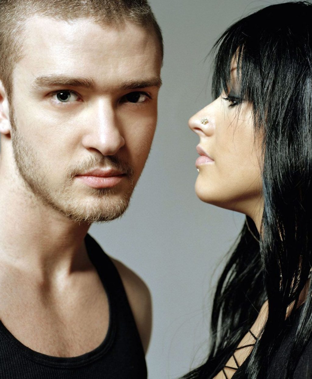 Check it these old pictures of sexy Christina Aguilera and Justin Timberlake! The photos are semi-nude since we can see what’s going on underneath Christina Aguilera’s see-through top! She showed off her pierced nipples for a shoot! Miss Aguilera and her then-boyfriend, Justin Timberlake, posed for a shoot by Max Vadukul for the “Rolling Stone Magazine”. This was back in 2003, so both of them were very young! Christina even had black hair back then! Justin is obviously into black-haired girls since his ex-girlfriend, Mila Kunis, dyed her hair black when the couple was dating! Check out all of Mila Kunis’s stuff! We’ve collected them all for your eyes to see!