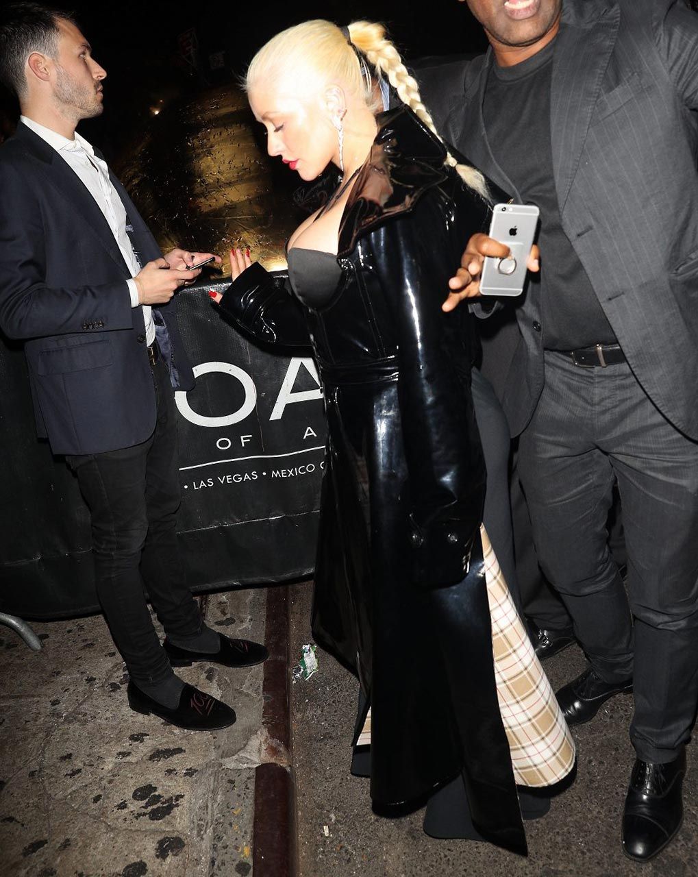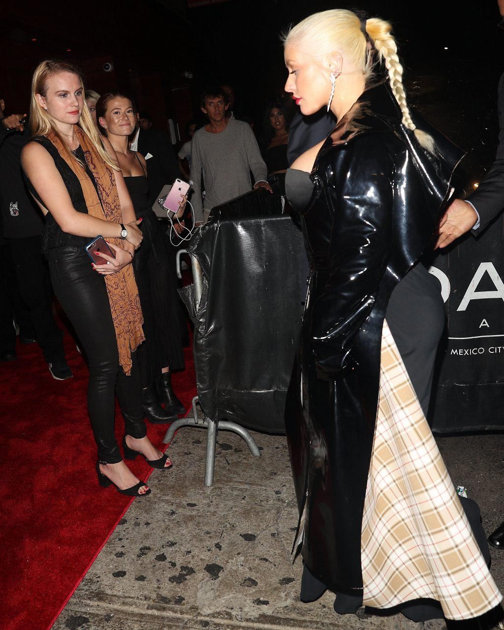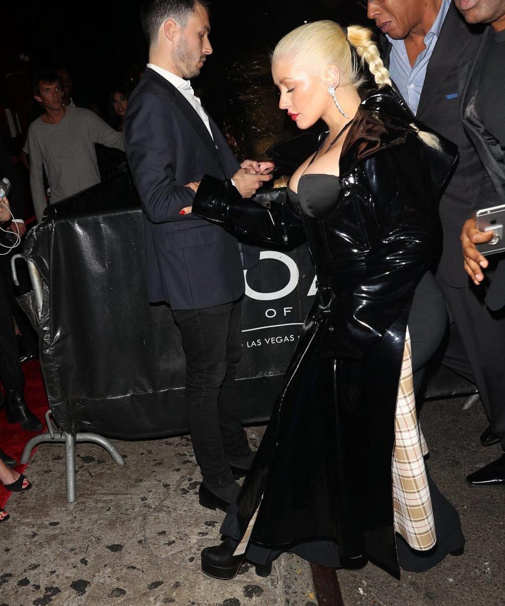 Christina Aguilera’s cleavage is too ample! We know Xtina has big tits, but lately, she has put them in the center of her appearances! This time she was seen arriving at 1 Oak Harper’s after-party in New York, wearing all black and giving her hot deep cleavage on the silver plate! So let’s enjoy and be hard for Christina Aguilera; I would love to bang her MILF ass!