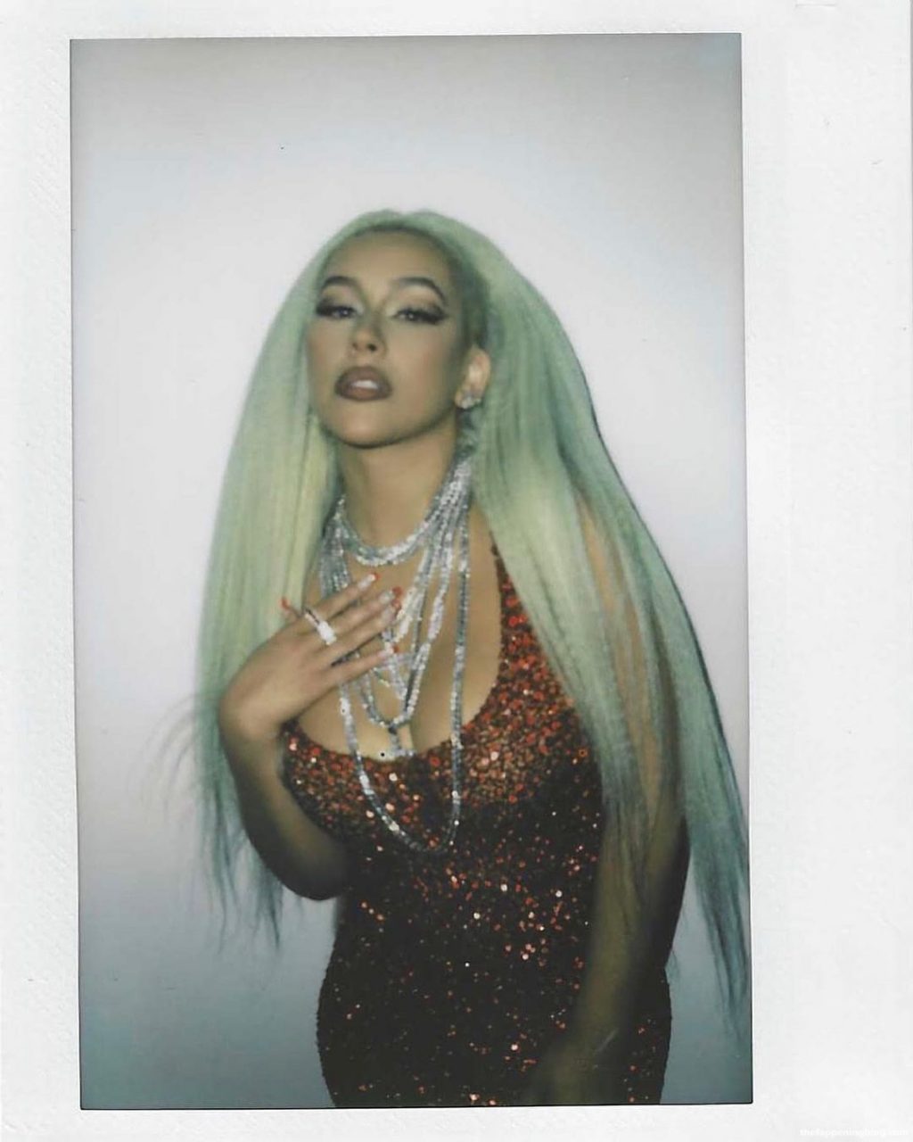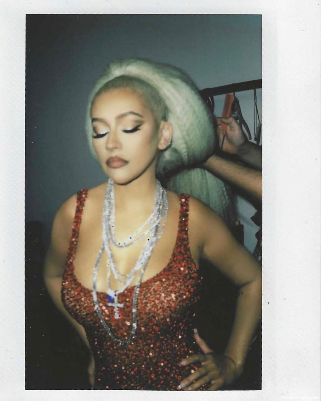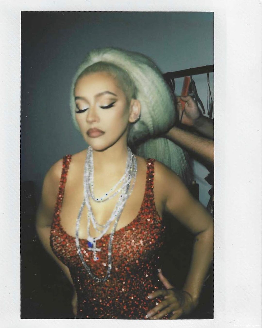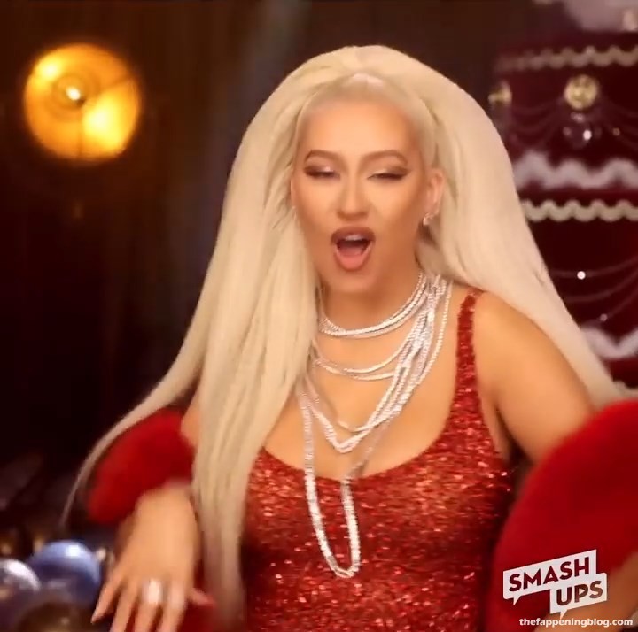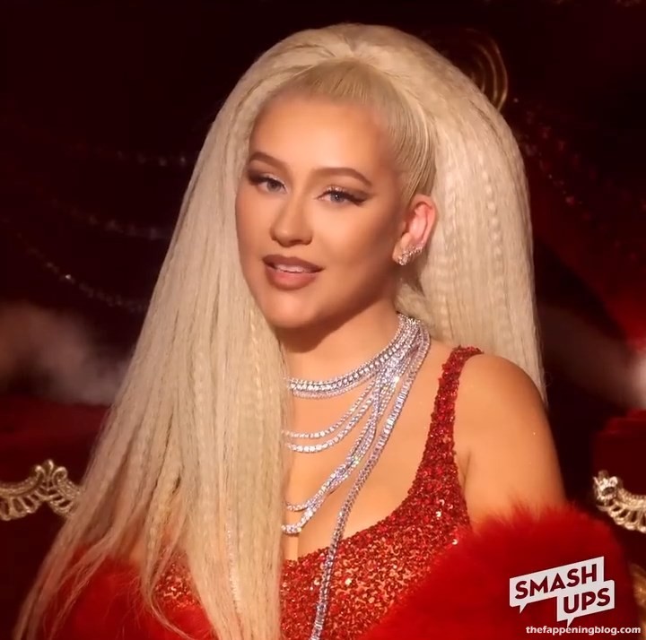 Певица Кристина Агилера рекламирует сервис SmashUps, демонстрируя своё красивое декольте в красном платье – Instagram, 10/05/2021. Хороший подарок — её обнажённая грудь!