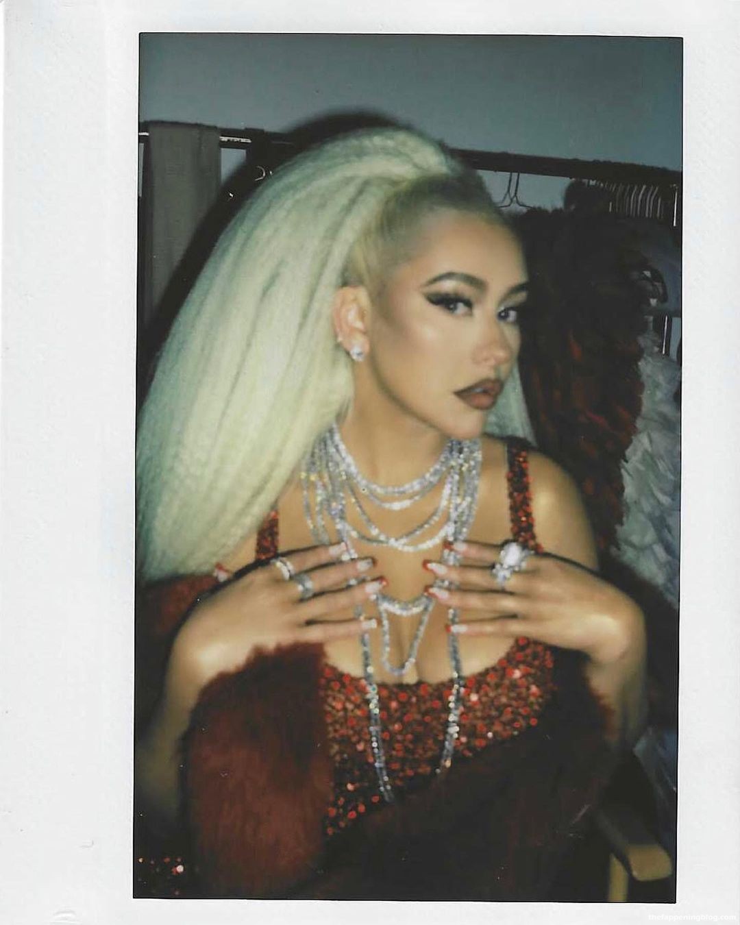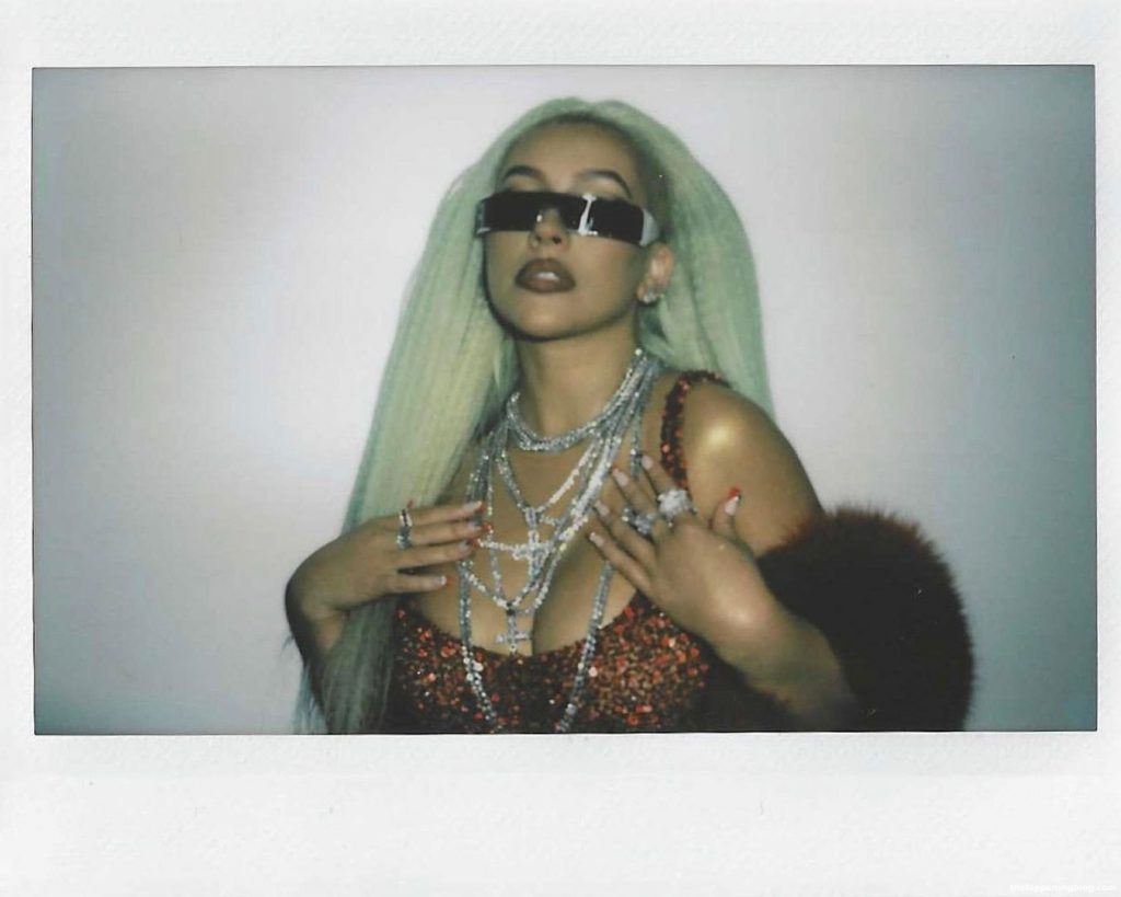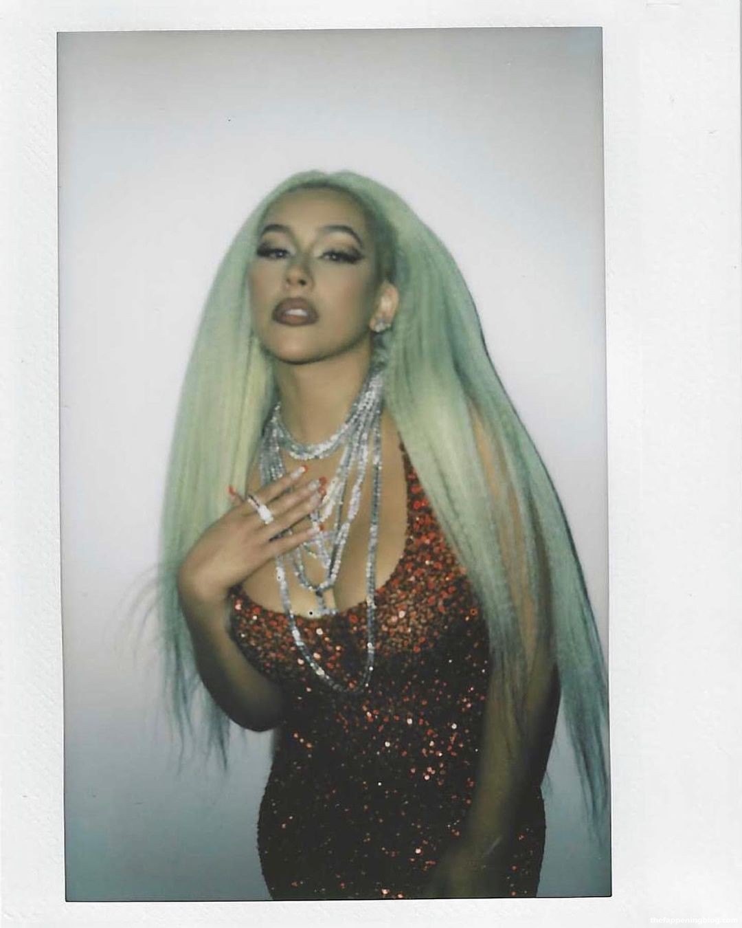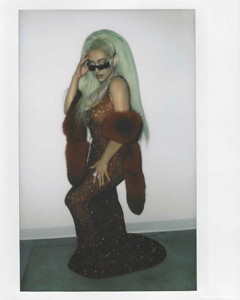 Певица Кристина Агилера рекламирует сервис SmashUps, демонстрируя своё красивое декольте в красном платье – Instagram, 10/05/2021. Хороший подарок — её обнажённая грудь!