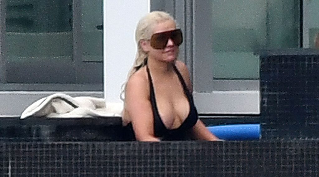 Ветеран певица Кристина Агилера демонстрирует свои MILF груди, наслаждаясь днем у бассейна в Майами.